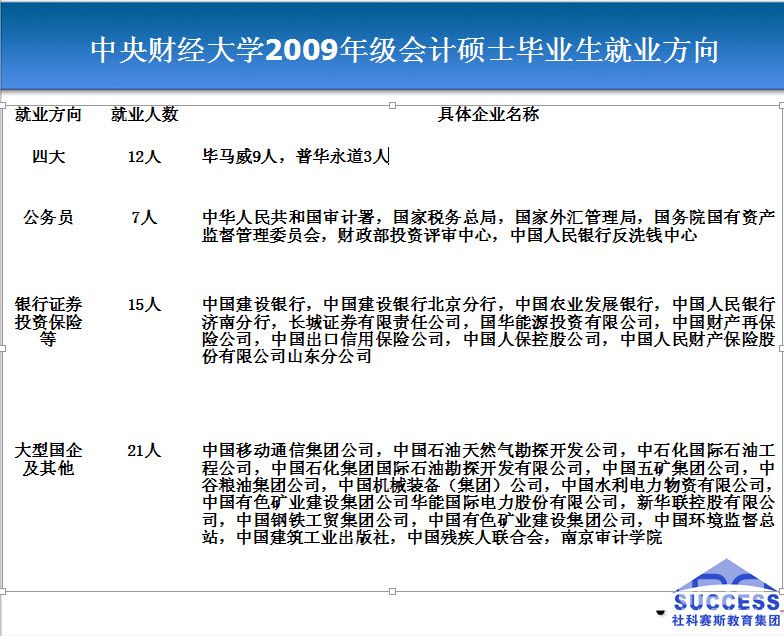 3、會計師事務所: 很多考會計學的研究生都選擇了會計師事務所,一般而言,事務所能讓考生學到在企業10年甚至20年也學不到的東西。如果你對專業知識掌握得已經很熟練,并且又感覺能適應經常出差加班的工作,可以選擇事務所。但是要有吃苦的心理準備,事務所的工作強度是很大的,不過有一份付出就有一份收獲,報酬也是很可觀的。