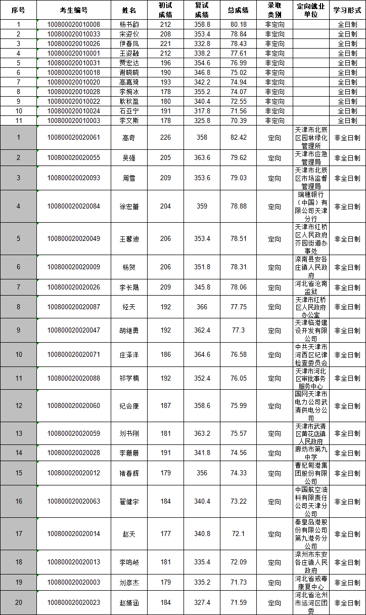 全日制擬錄取最低分178 非全日制擬錄取最低分177