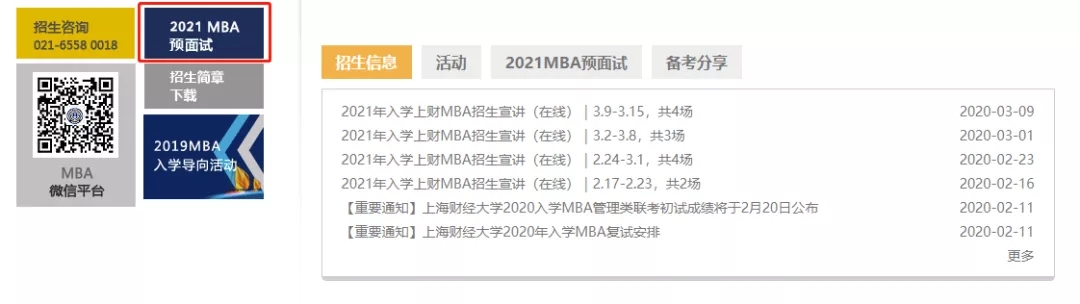 在上海財經大學MBA項目官網(https://cob.sufe.edu.cn/MBA)鏈接(如紅框所示)進入。
