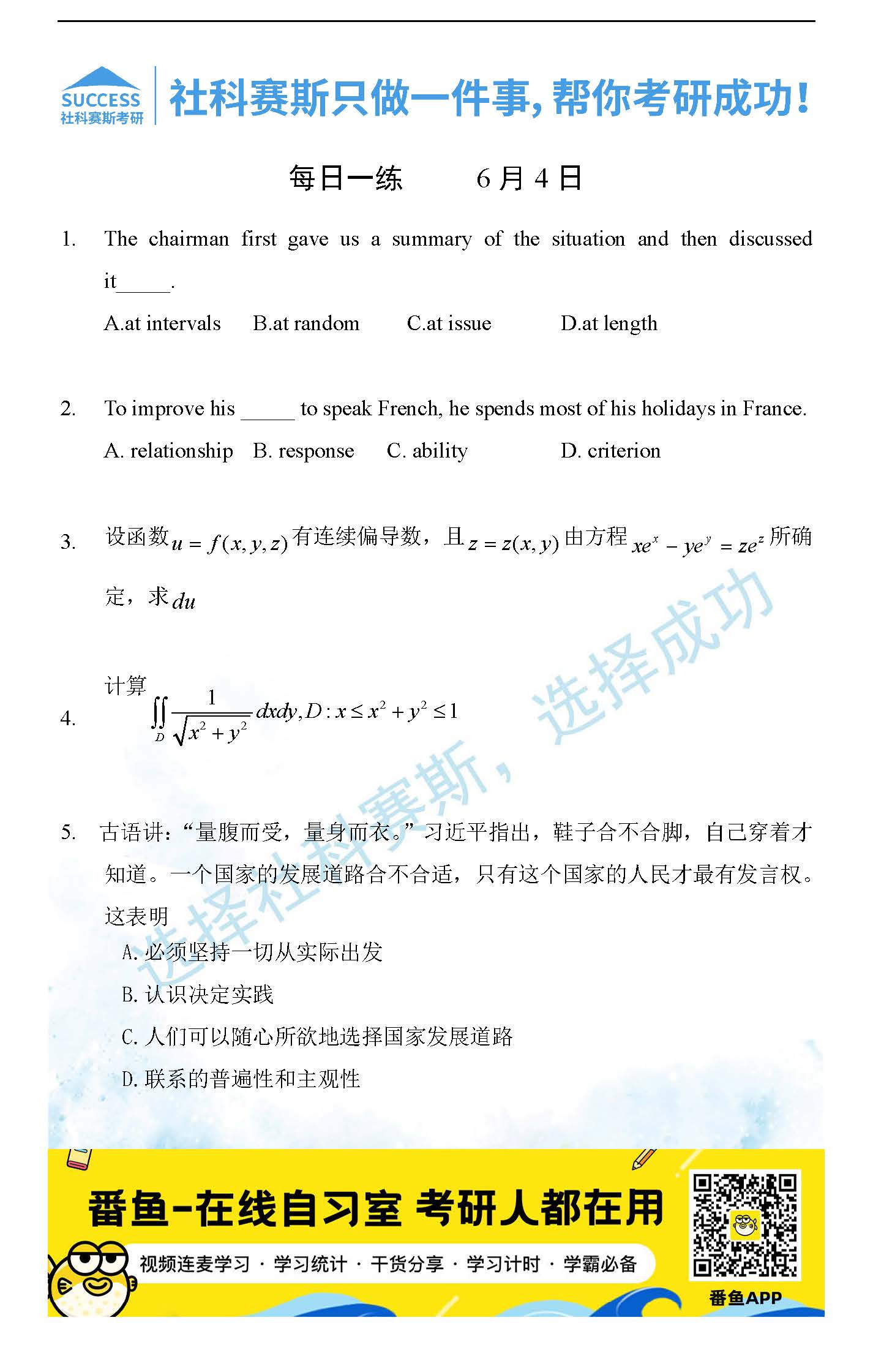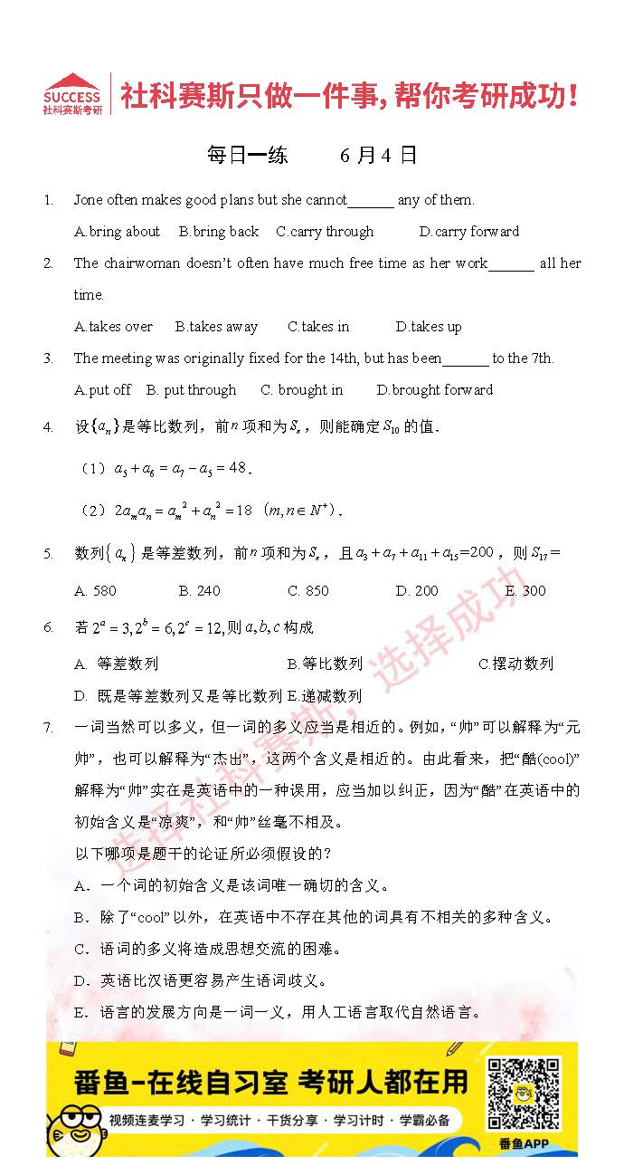 導讀:考研是一場持久戰,保持良好的學習習慣,是能確保復習高效的關鍵。今天社科賽斯MBA備考網小編整理了“2022管理類聯考6月4日每日一練及答案”的內容,希望能對廣大考生有所幫助。