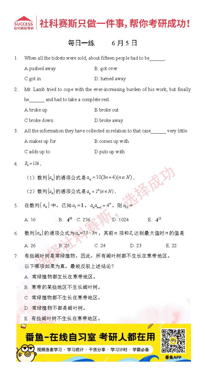 導讀:考研是一場持久戰,保持良好的學習習慣,是能確保復習高效的關鍵。今天社科賽斯MBA備考網小編整理了“2022管理類聯考6月5日每日一練及答案”的內容,希望能對廣大考生有所幫助。
