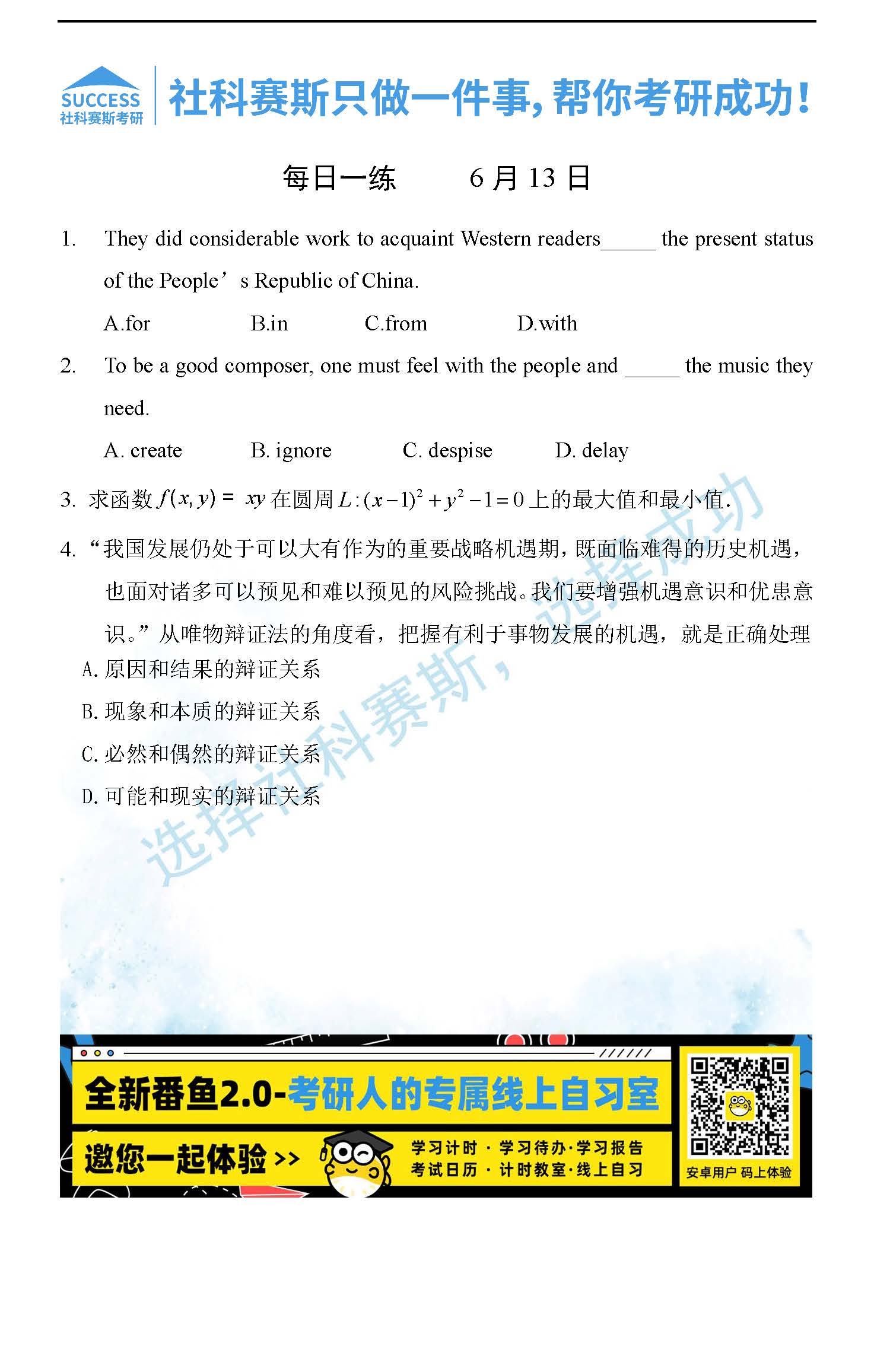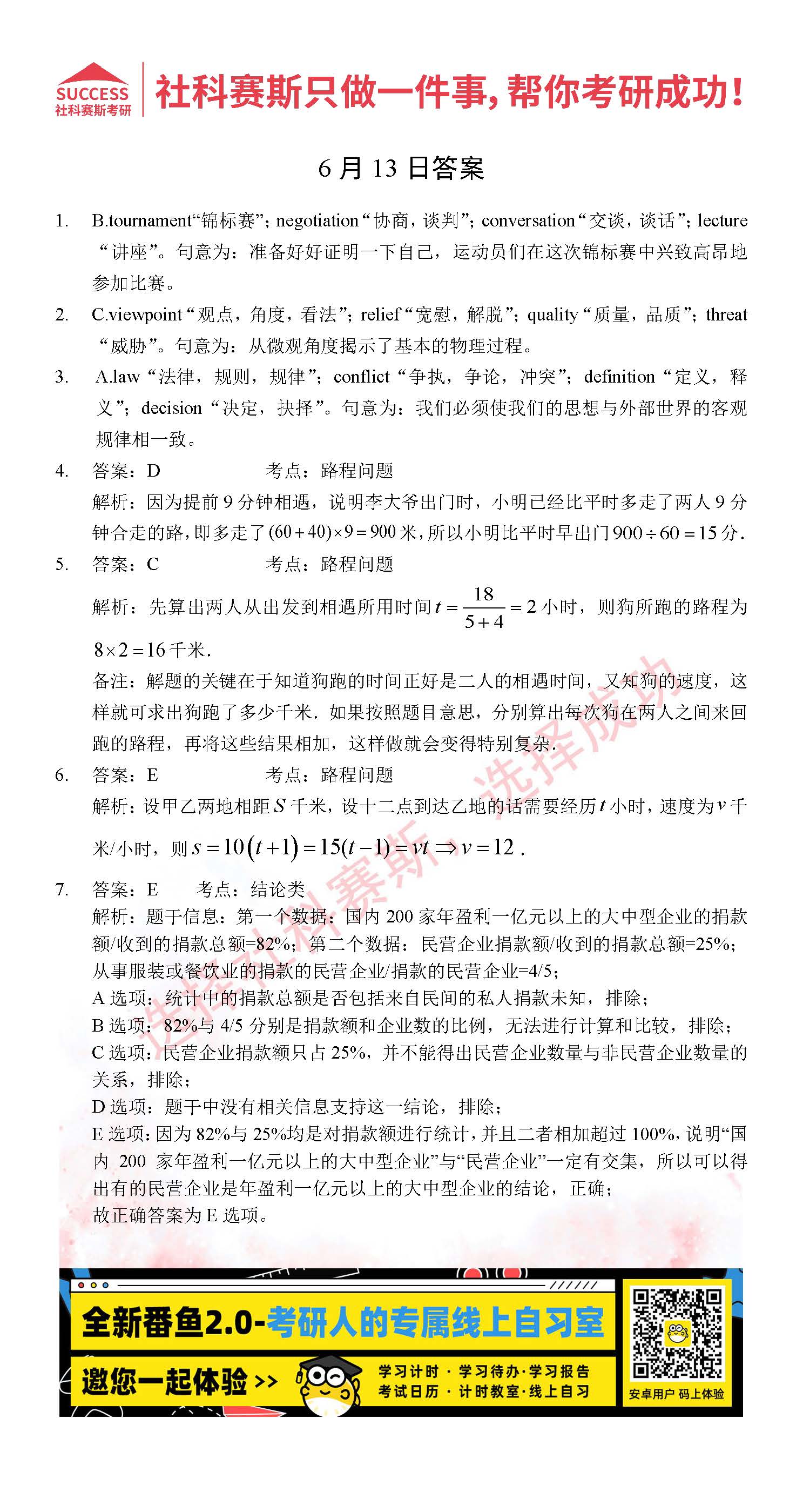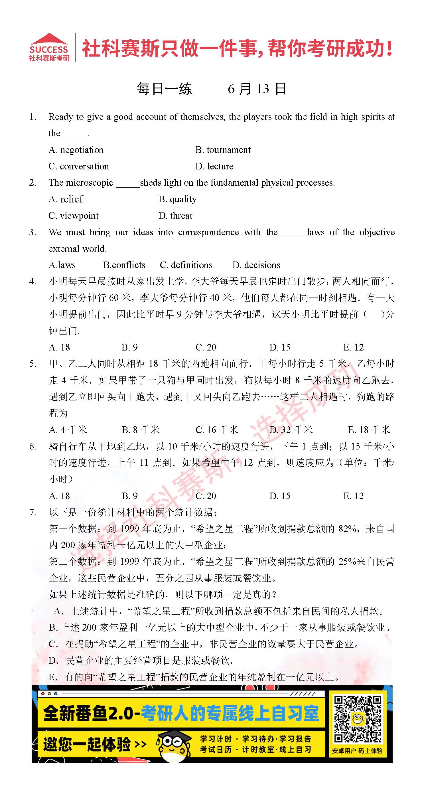 導讀:考研是一場持久戰,保持良好的學習習慣,是能確保復習高效的關鍵。今天社科賽斯MBA備考網小編整理了“2022管理類聯考6月13日每日一練及答案”的內容,希望能對廣大考生有所幫助。