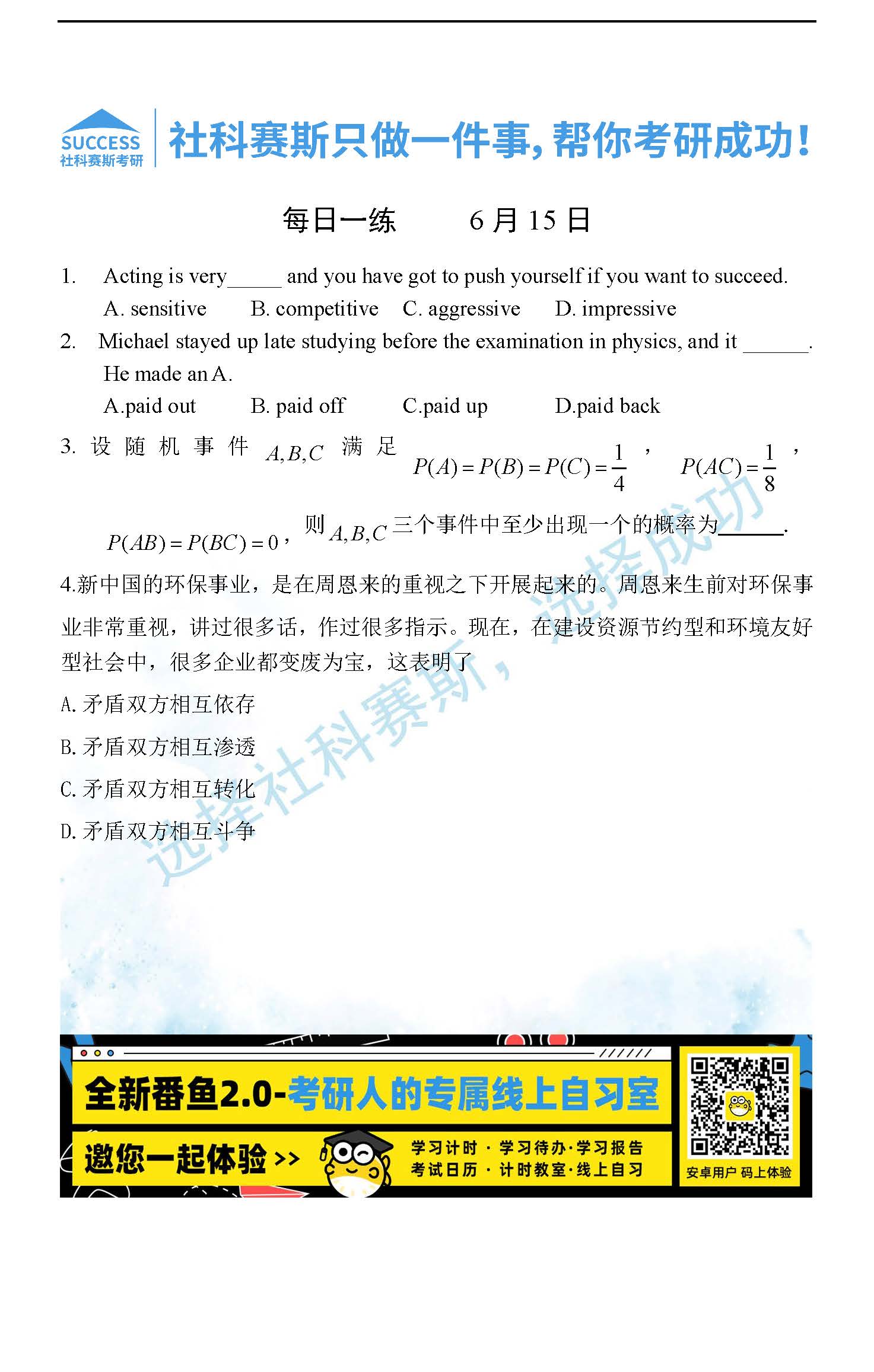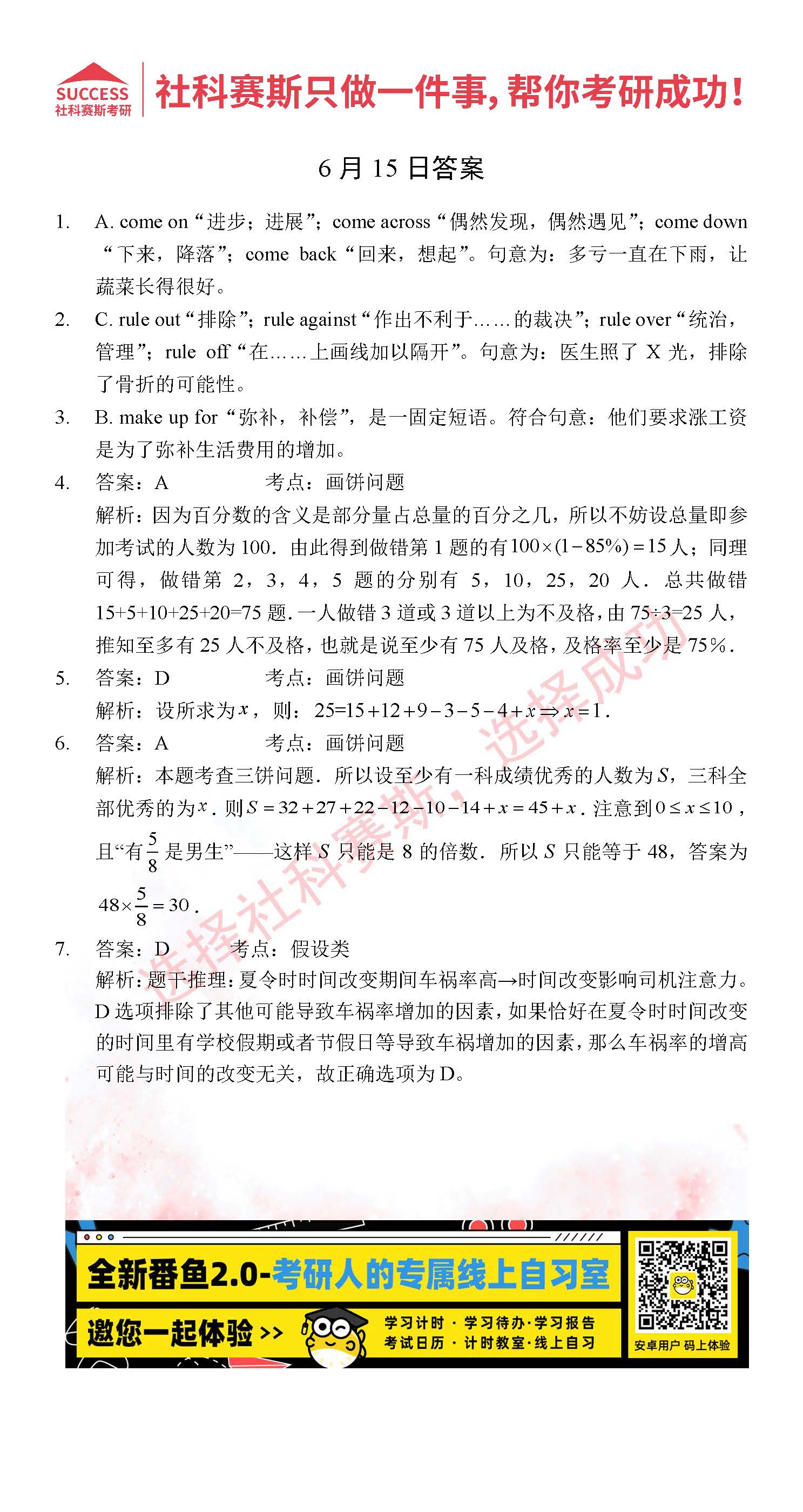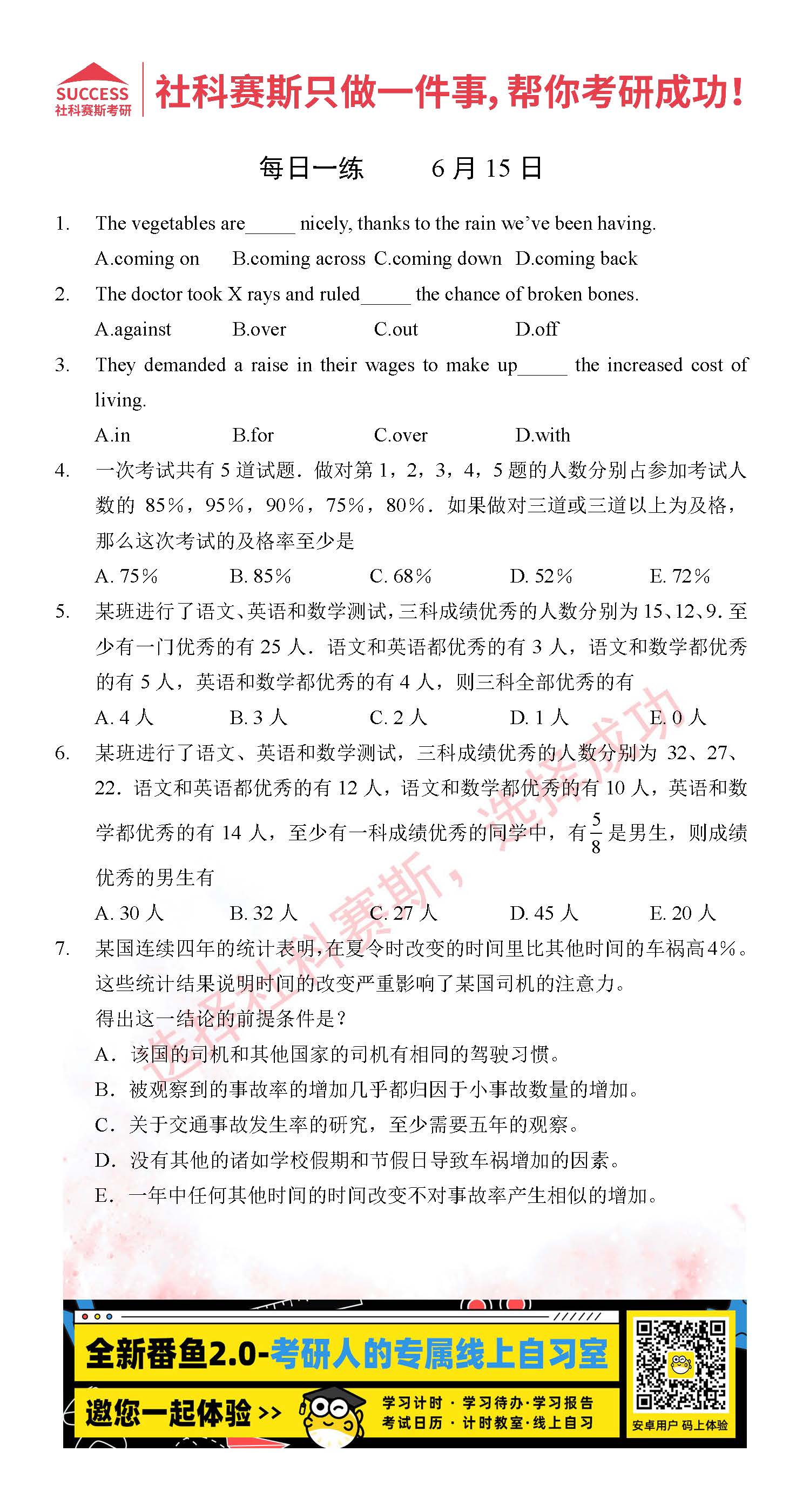 導讀:考研是一場持久戰,保持良好的學習習慣,是能確保復習高效的關鍵。今天社科賽斯MBA備考網小編整理了“2022管理類聯考6月15日每日一練及答案”的內容,希望能對廣大考生有所幫助。