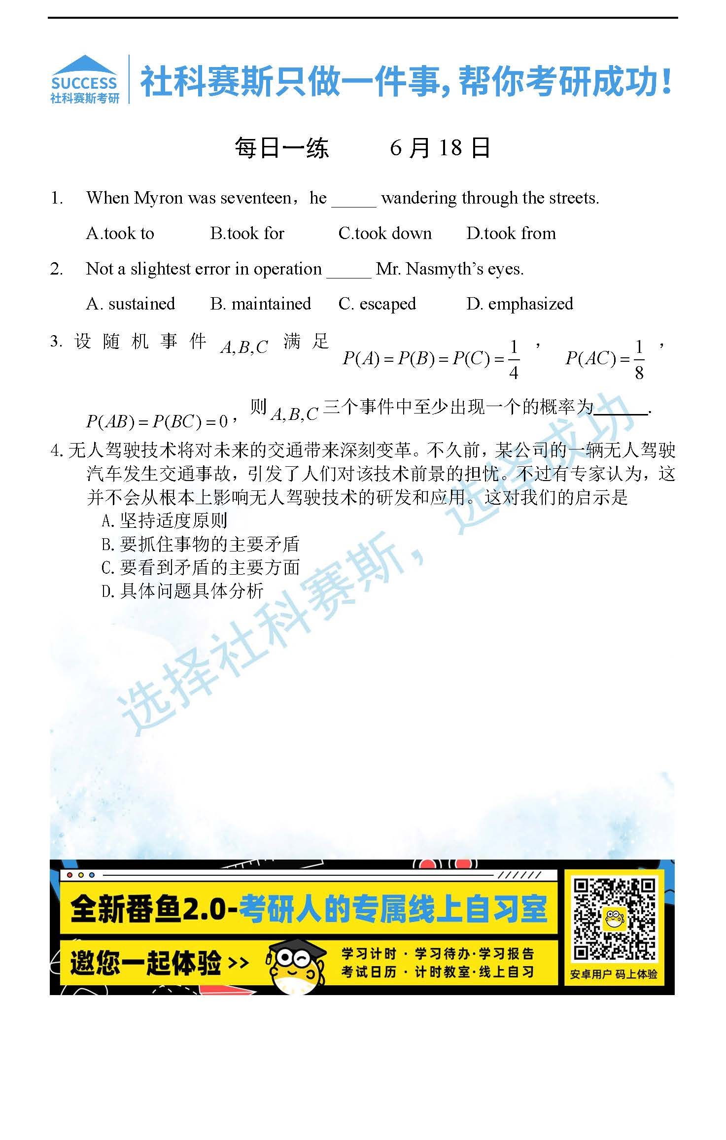導讀:考研是一場持久戰,保持良好的學習習慣,是能確保復習高效的關鍵。今天社科賽斯MBA備考網小編整理了“2022管理類聯考6月18日每日一練及答案”的內容,希望能對廣大考生有所幫助。
