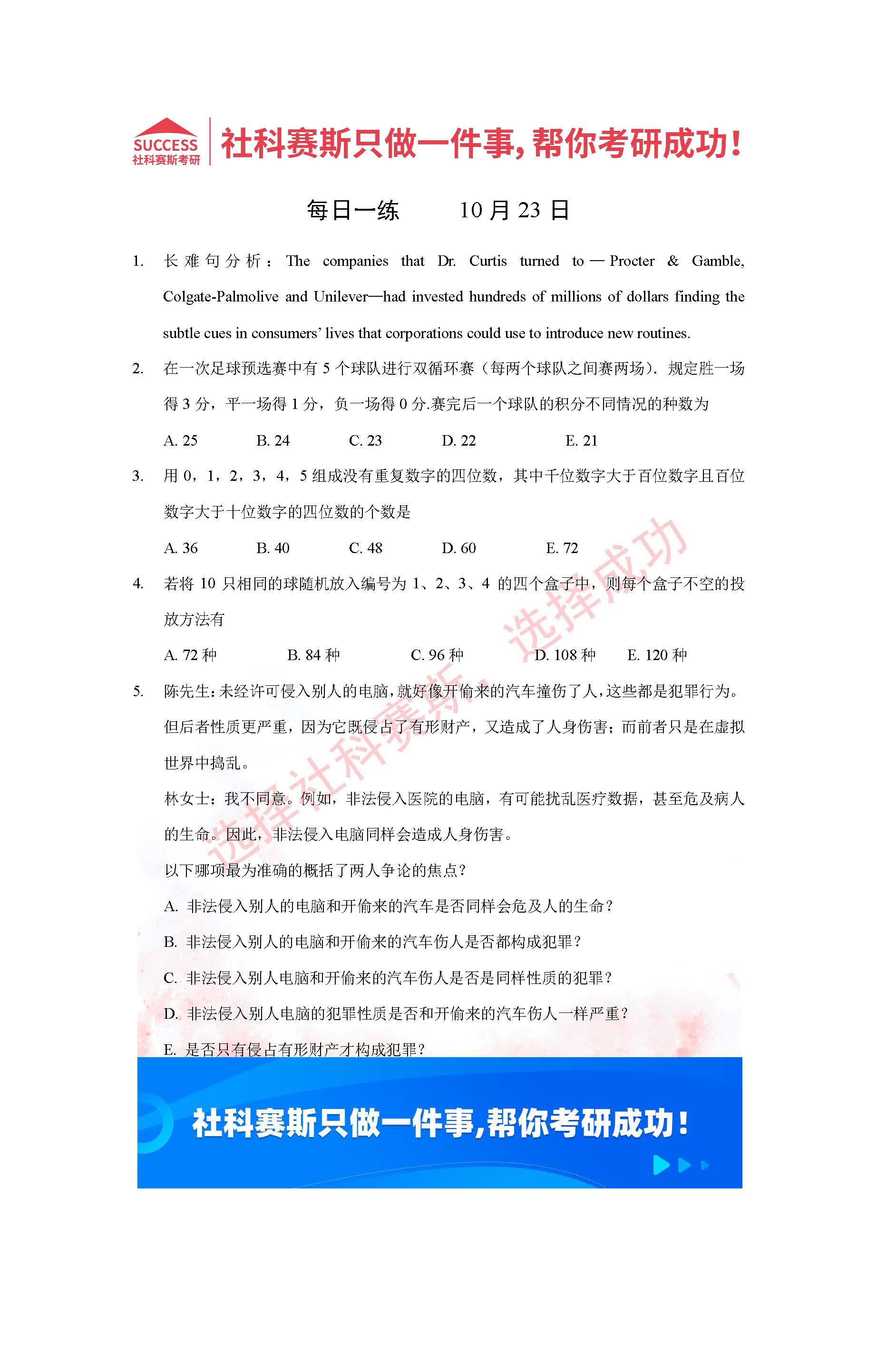 首頁> 管理類聯(lián)考每日一練 > 2022管理類聯(lián)考10月23日每日一練及答案