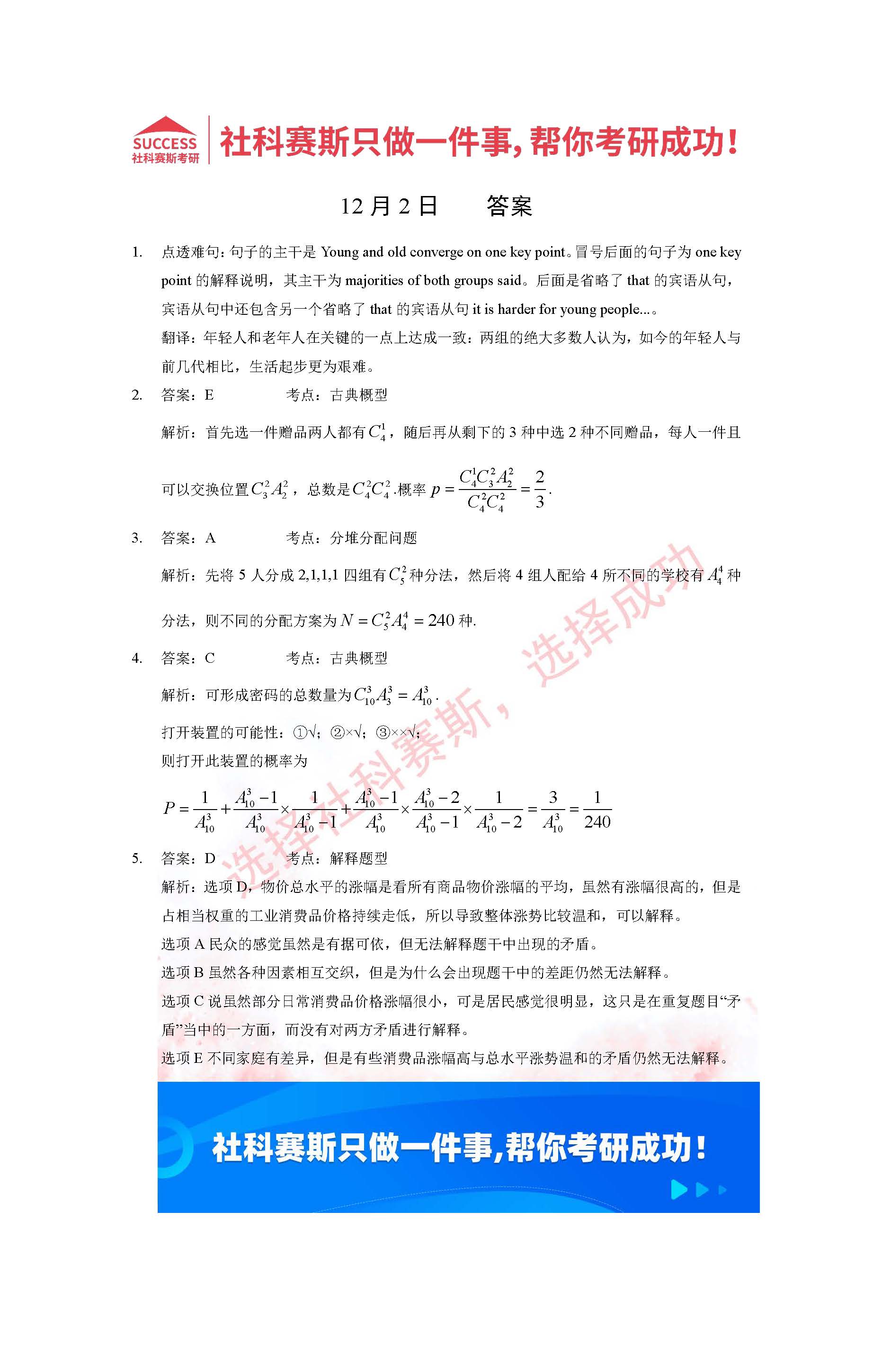 導讀:考研是一場持久戰,保持良好的學習習慣,是能確保復習高效的關鍵。今天社科賽斯MBA備考網小編整理了“2022管理類聯考12月2日每日一練及答案”的內容,希望能對廣大考生有所幫助。