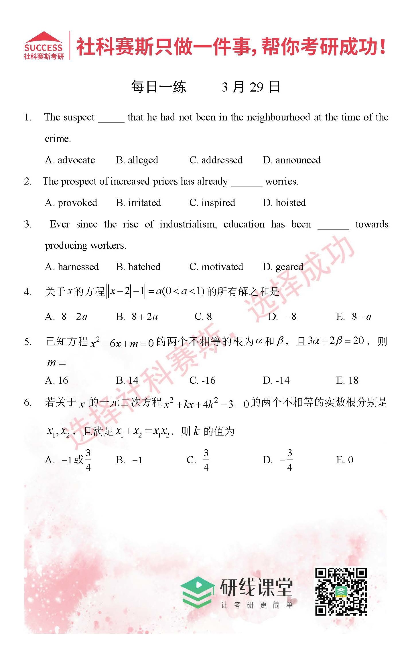 導(dǎo)讀:考研是一場(chǎng)持久戰(zhàn),保持良好的學(xué)習(xí)習(xí)慣,是能確保復(fù)習(xí)高效的關(guān)鍵。MBA備考網(wǎng)小編整理了每日一練,希望能對(duì)廣大考生有所幫助。