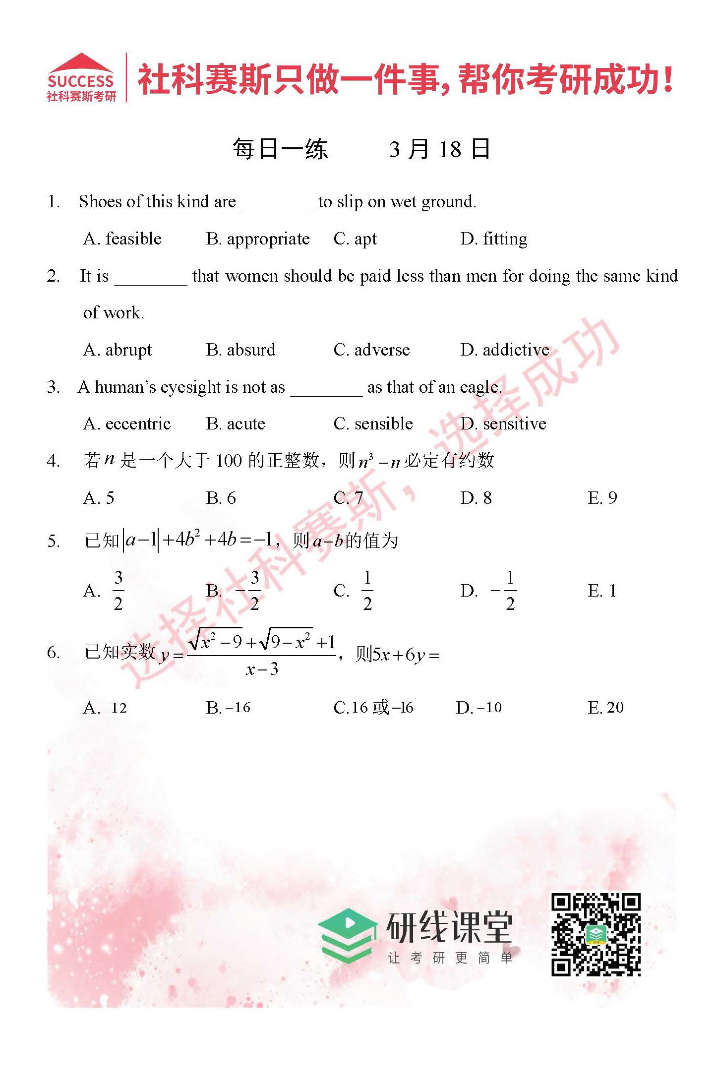 考研是一場(chǎng)持久戰(zhàn),保持良好的學(xué)習(xí)習(xí)慣,是能確保復(fù)習(xí)高效的關(guān)鍵。MBA備考網(wǎng)小編整理了每日一練,希望能對(duì)廣大考生有所幫助。