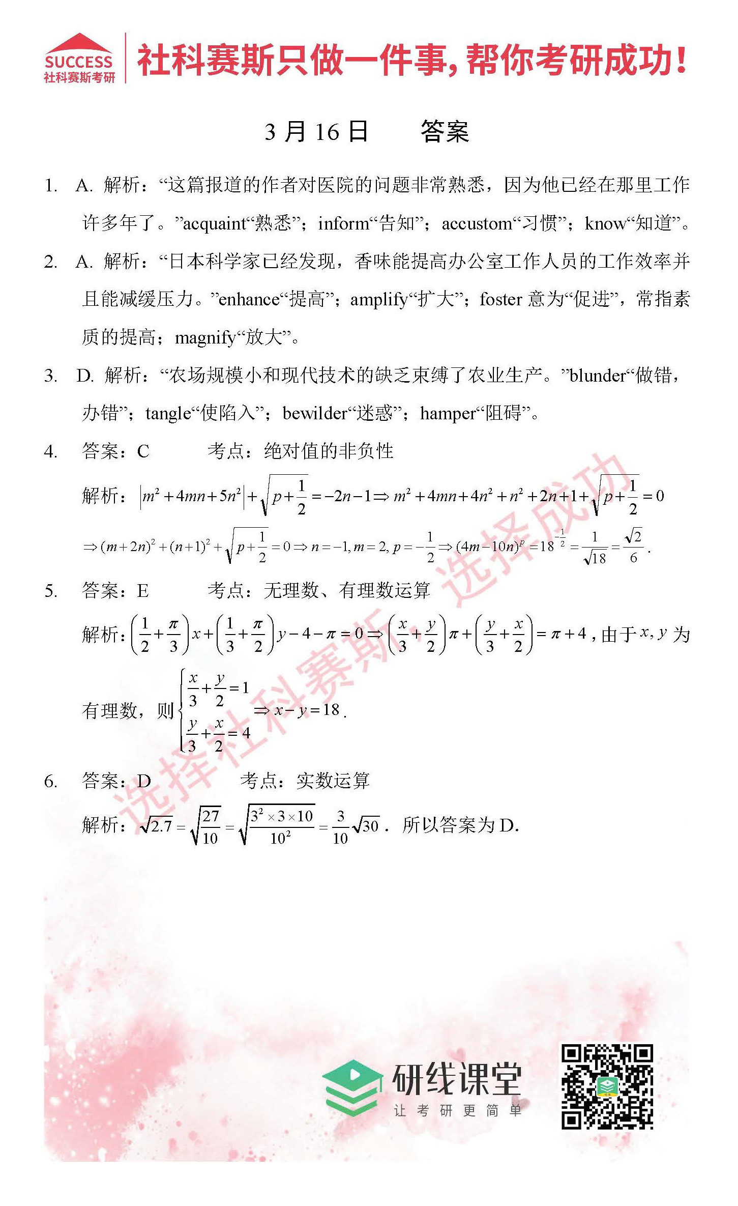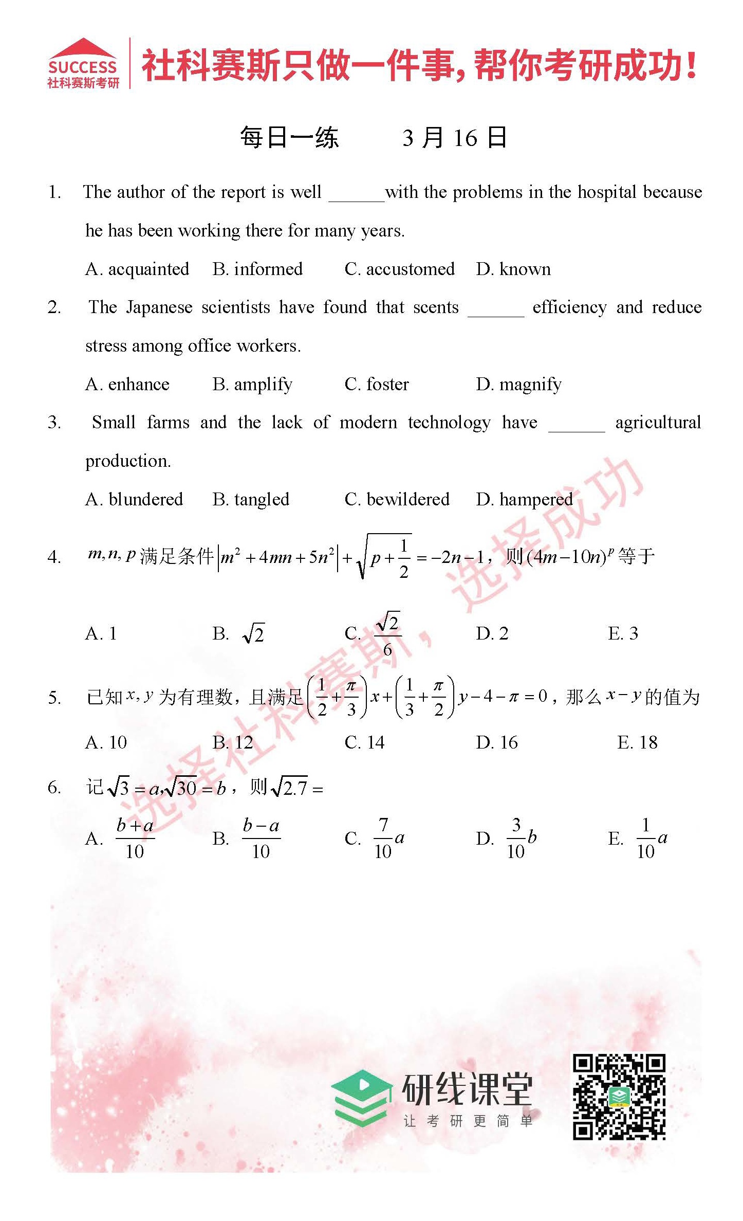 考研是一場(chǎng)持久戰(zhàn),保持良好的學(xué)習(xí)習(xí)慣,是能確保復(fù)習(xí)高效的關(guān)鍵。MBA備考網(wǎng)小編整理了每日一練,希望能對(duì)廣大考生有所幫助。