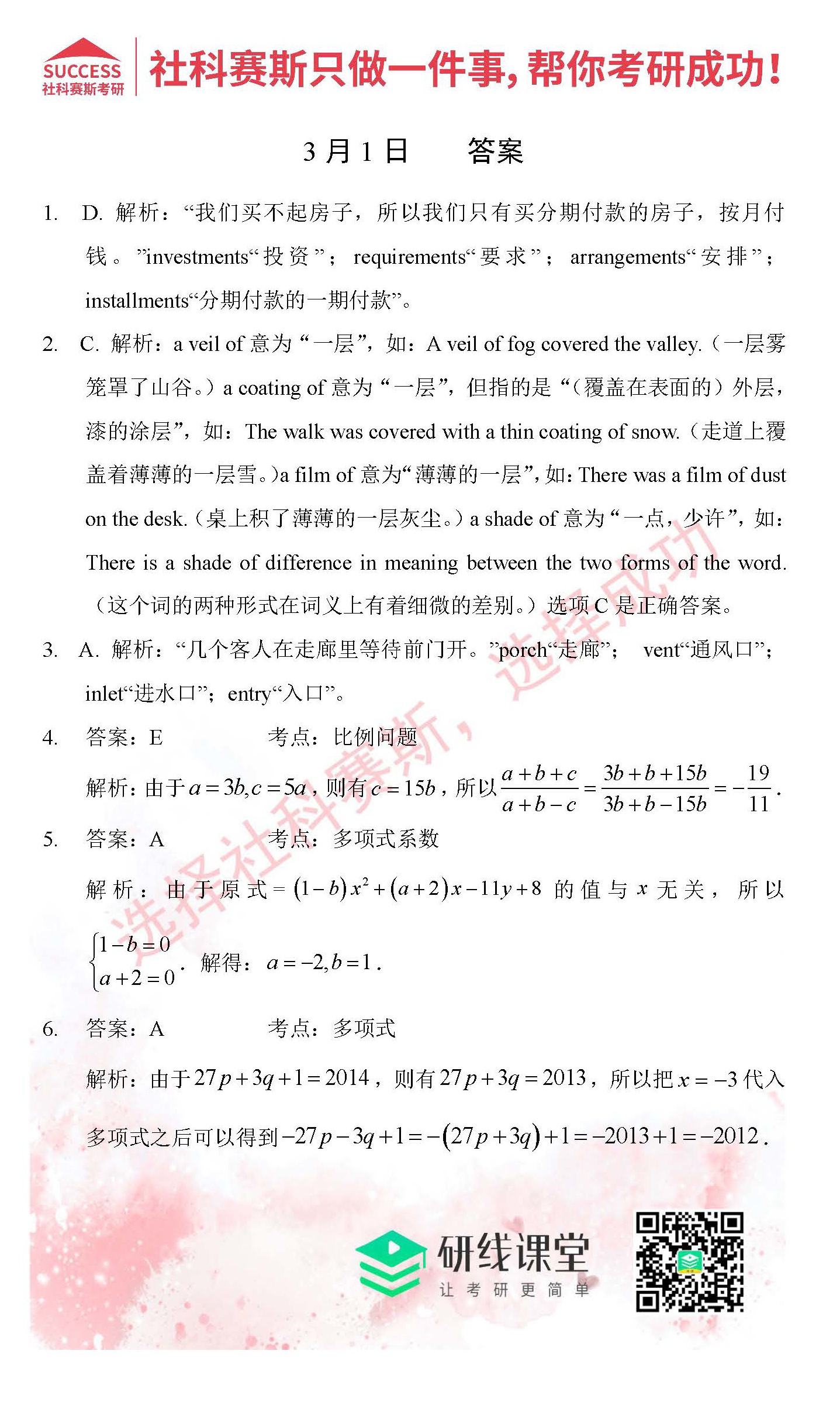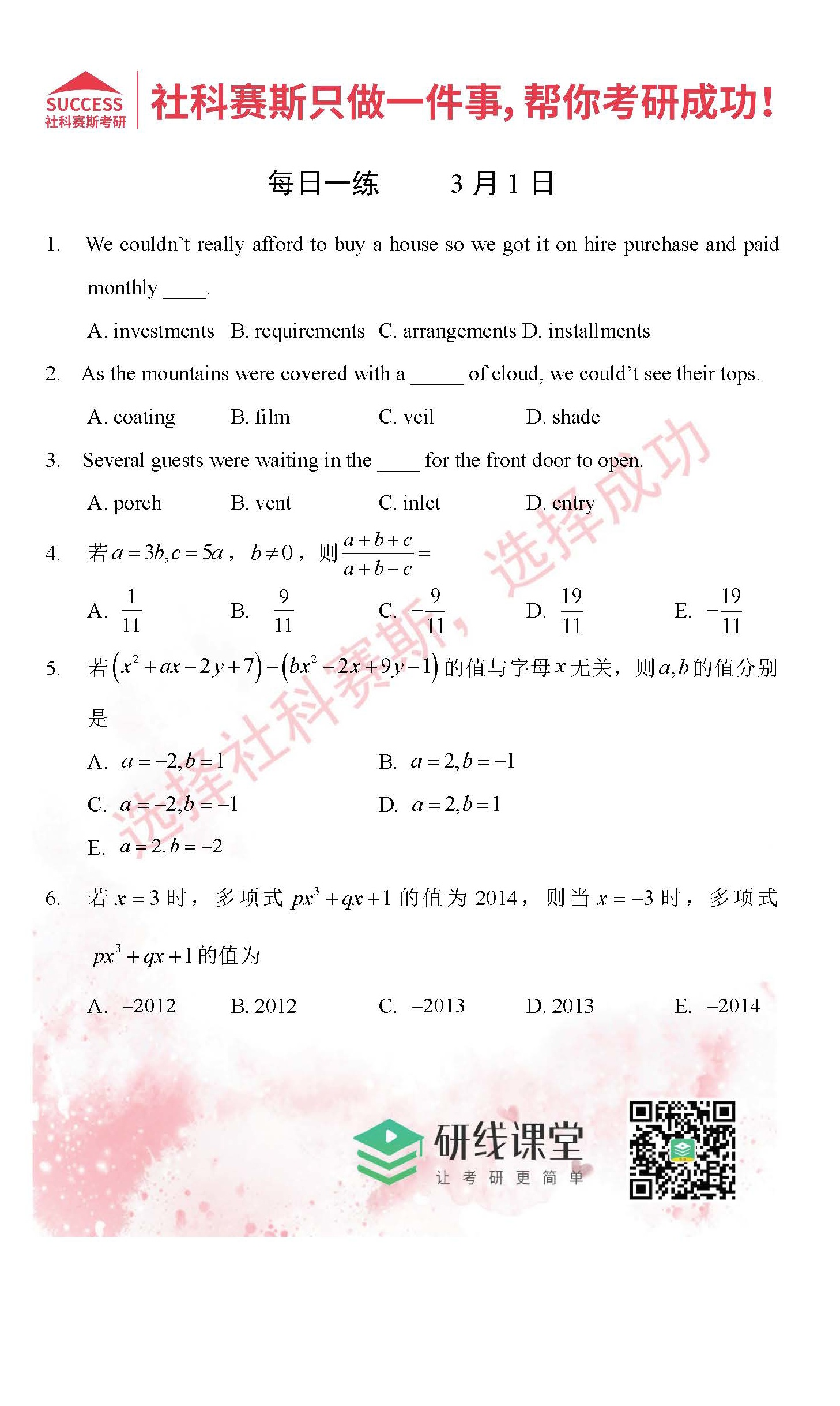考研是一場(chǎng)持久戰(zhàn),保持良好的學(xué)習(xí)習(xí)慣,是能確保復(fù)習(xí)高效的關(guān)鍵。MBA備考網(wǎng)小編整理了每日一練,希望能對(duì)廣大考生有所幫助。