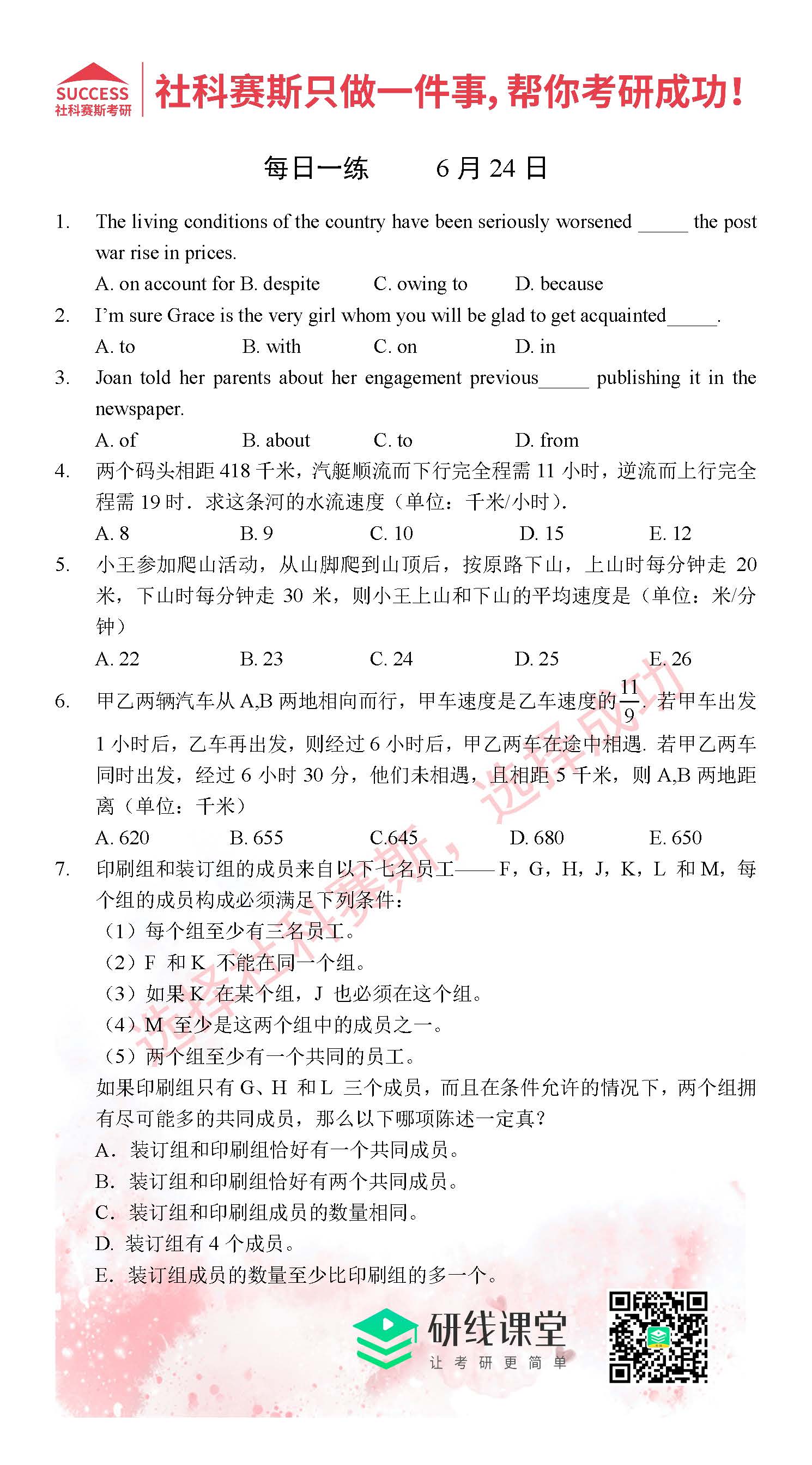 導讀:考研是一場持久戰,保持良好的學習習慣,是能確保復習高效的關鍵。MBA備考網小編整理了管綜的每日一練,希望能對廣大考生有所幫助。