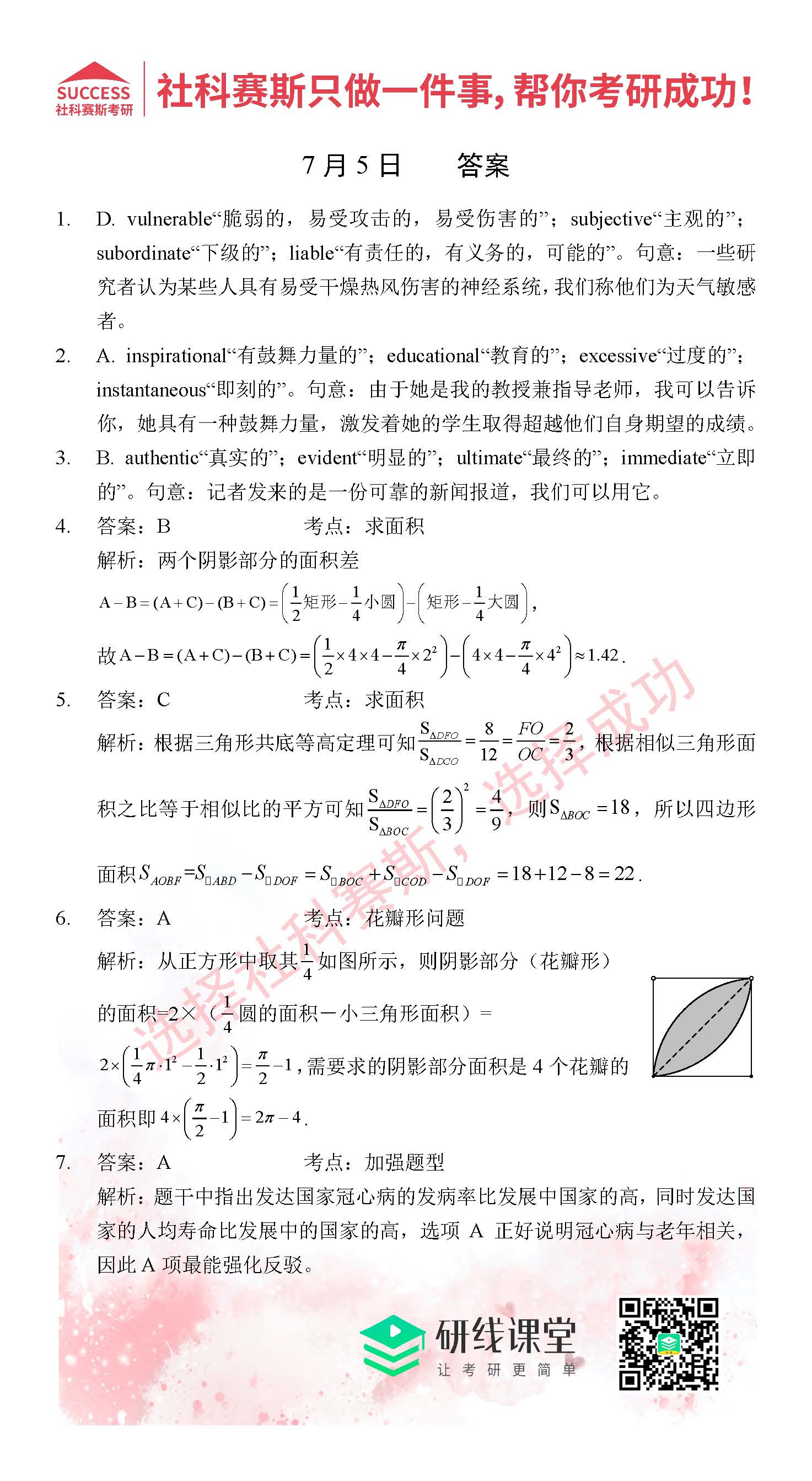以上就是MBA備考網小編為大家提供的今日的每日一練“2021管理類聯考7月5日每日一練及答案”的全部內容,希望各位考生堅持利用起來,更多每日一練內容請持續關注MBA備考網管理類聯考每日一練