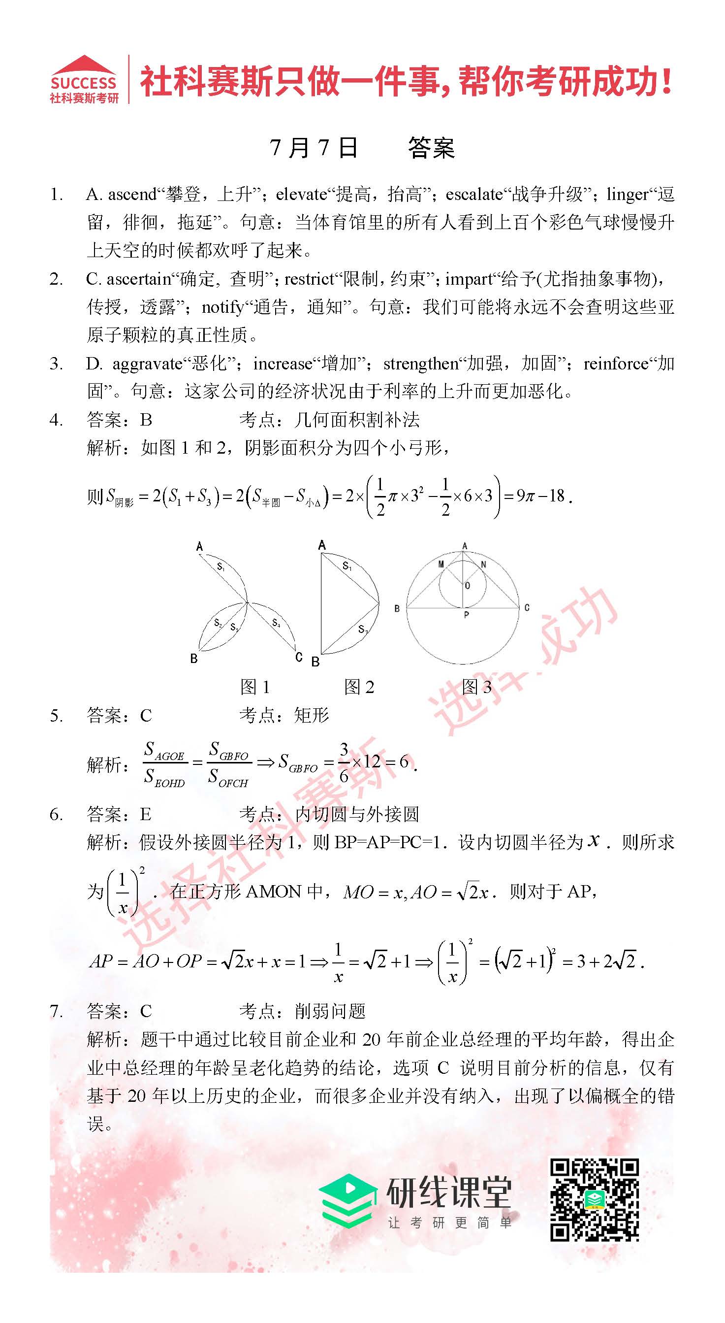 以上就是MBA備考網小編為大家提供的今日的每日一練“2021管理類聯考7月7日每日一練及答案”的全部內容,希望各位考生堅持利用起來,更多每日一練內容請持續關注MBA備考網管理類聯考每日一練