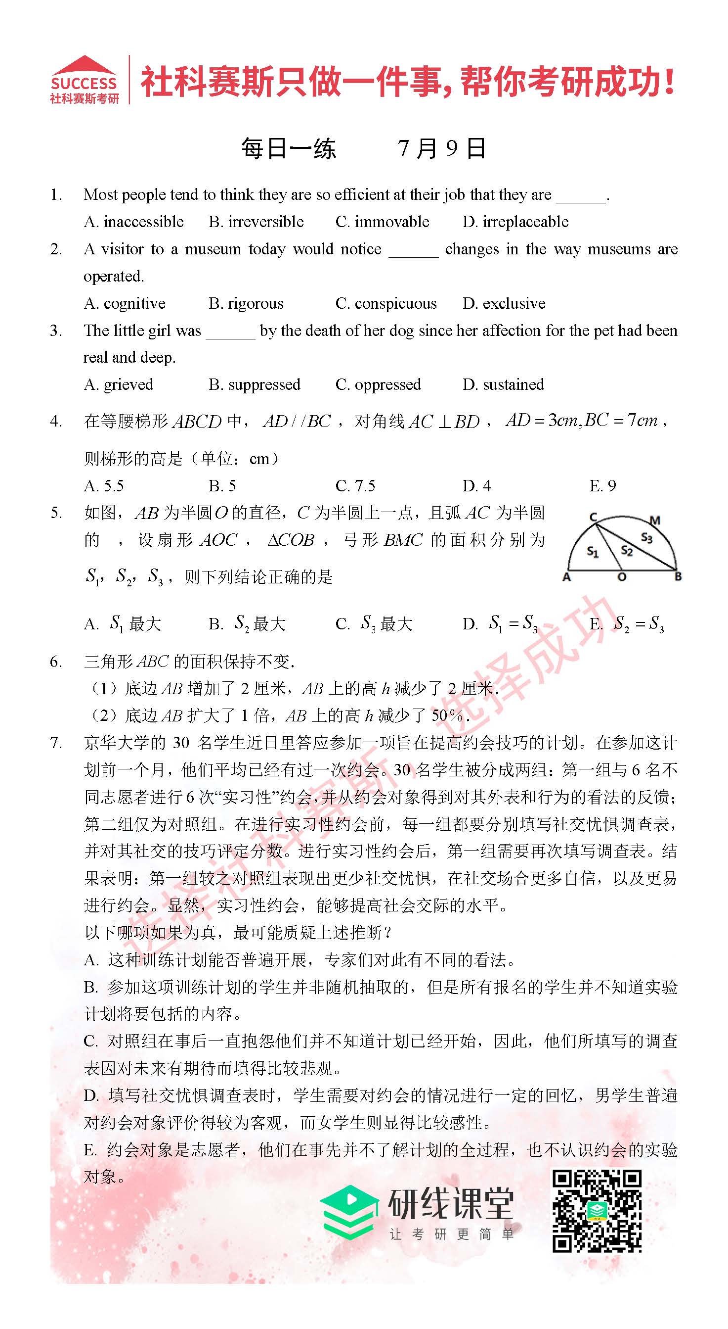 以上就是MBA備考網小編為大家提供的今日的每日一練“2021管理類聯考7月9日每日一練及答案”的全部內容,希望各位考生堅持利用起來,更多每日一練內容請持續關注MBA備考網管理類聯考每日一練