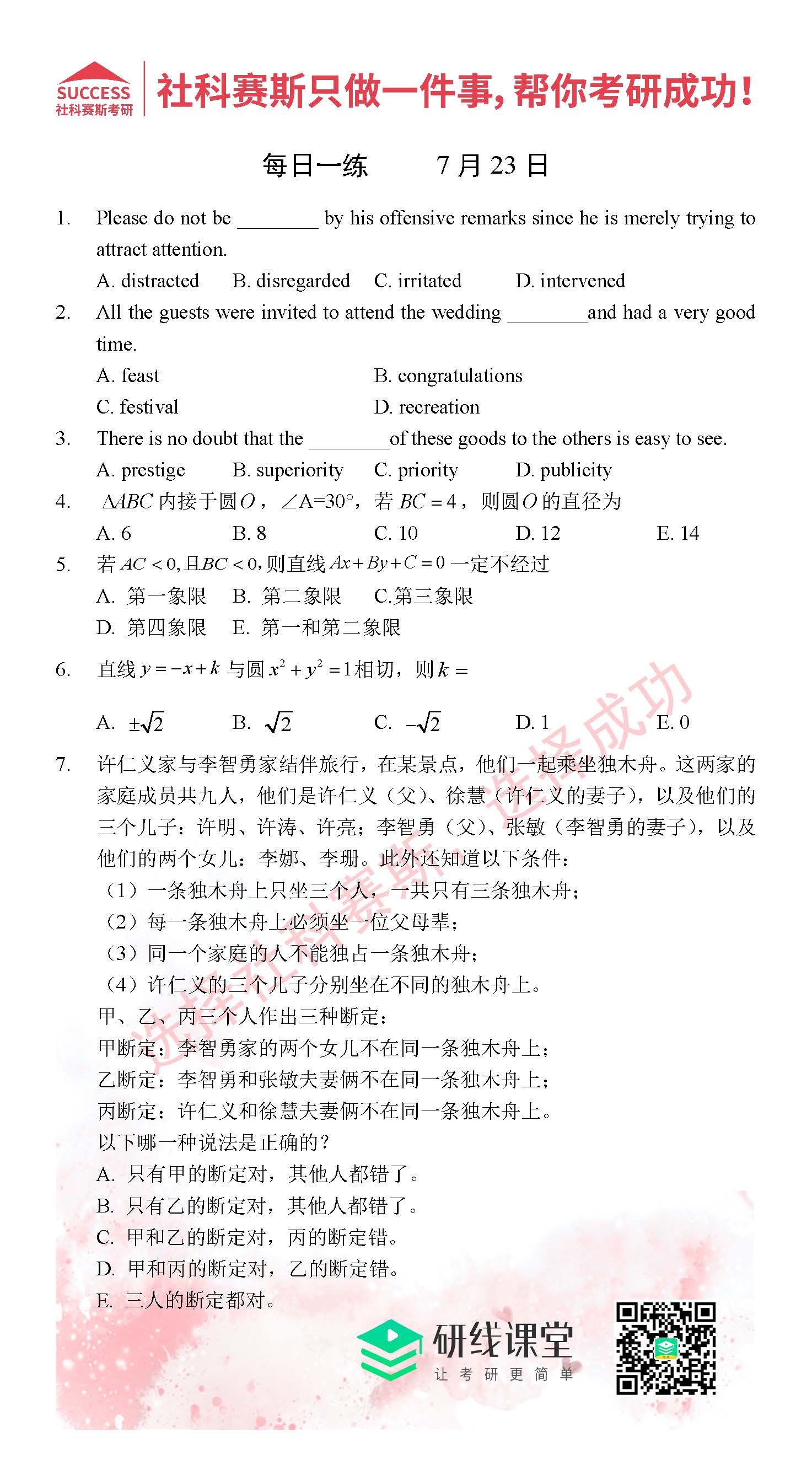導(dǎo)讀:考研是一場(chǎng)持久戰(zhàn),保持良好的學(xué)習(xí)習(xí)慣,是能確保復(fù)習(xí)高效的關(guān)鍵。MBA備考網(wǎng)小編整理了管綜的每日一練,希望能對(duì)廣大考生有所幫助。