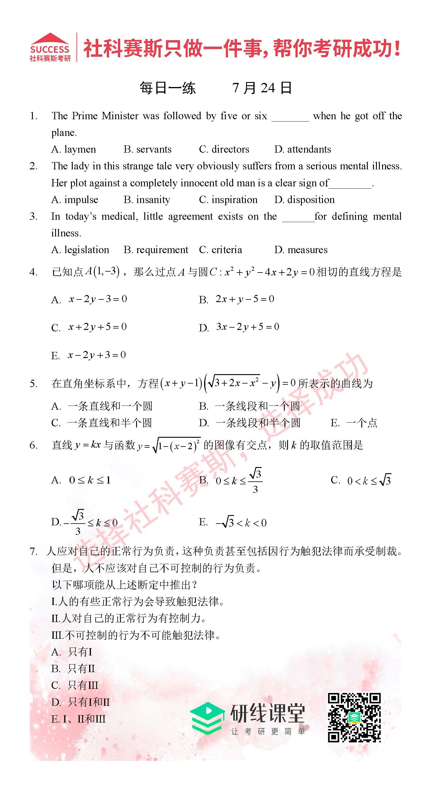 以上就是MBA備考網(wǎng)小編為大家提供的今日每日一練“2021管理類聯(lián)考7月24日每日一練及答案”的全部內(nèi)容,希望各位考生堅持利用起來,更多每日一練內(nèi)容請持續(xù)關(guān)注MBA備考網(wǎng)管理類聯(lián)考每日一練