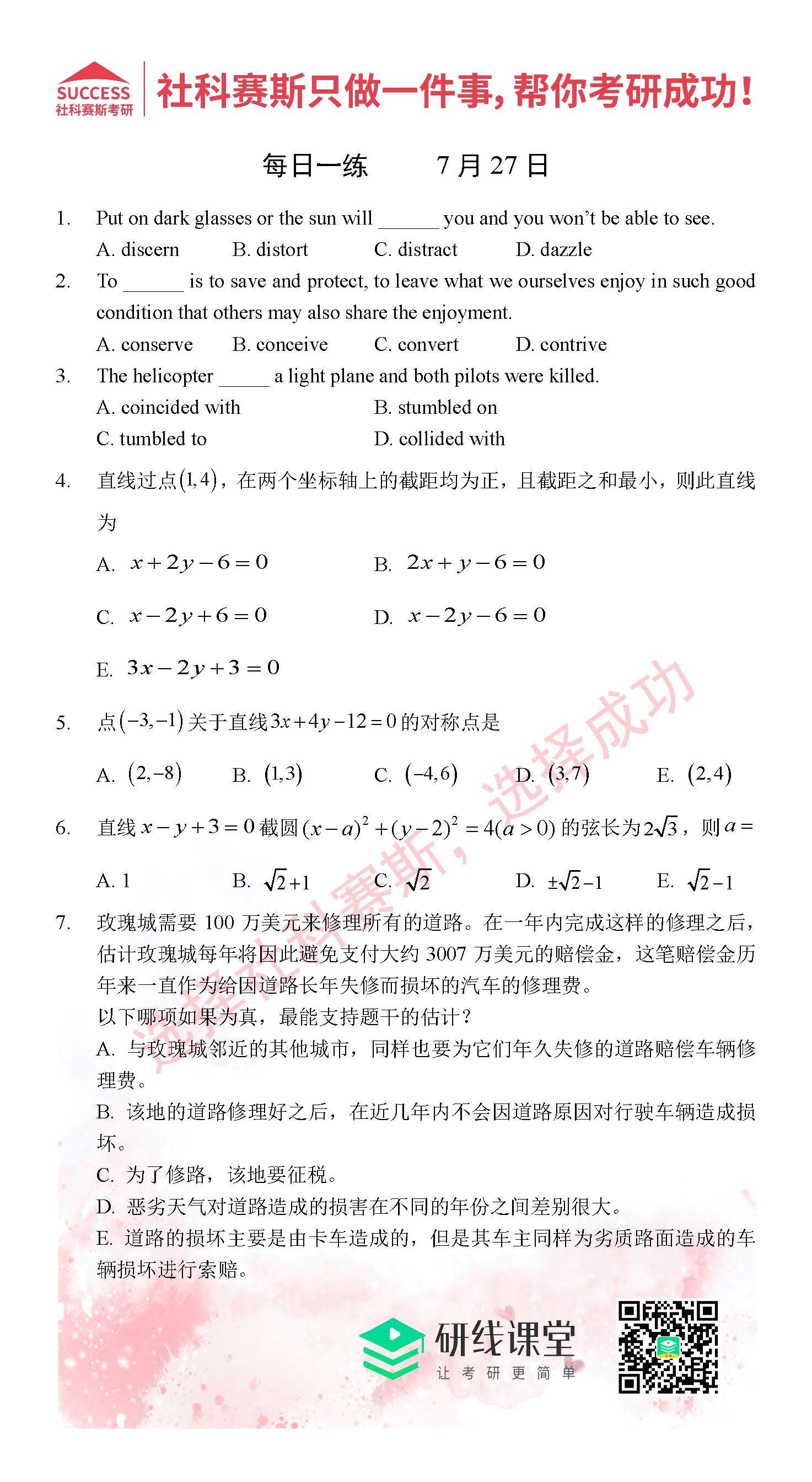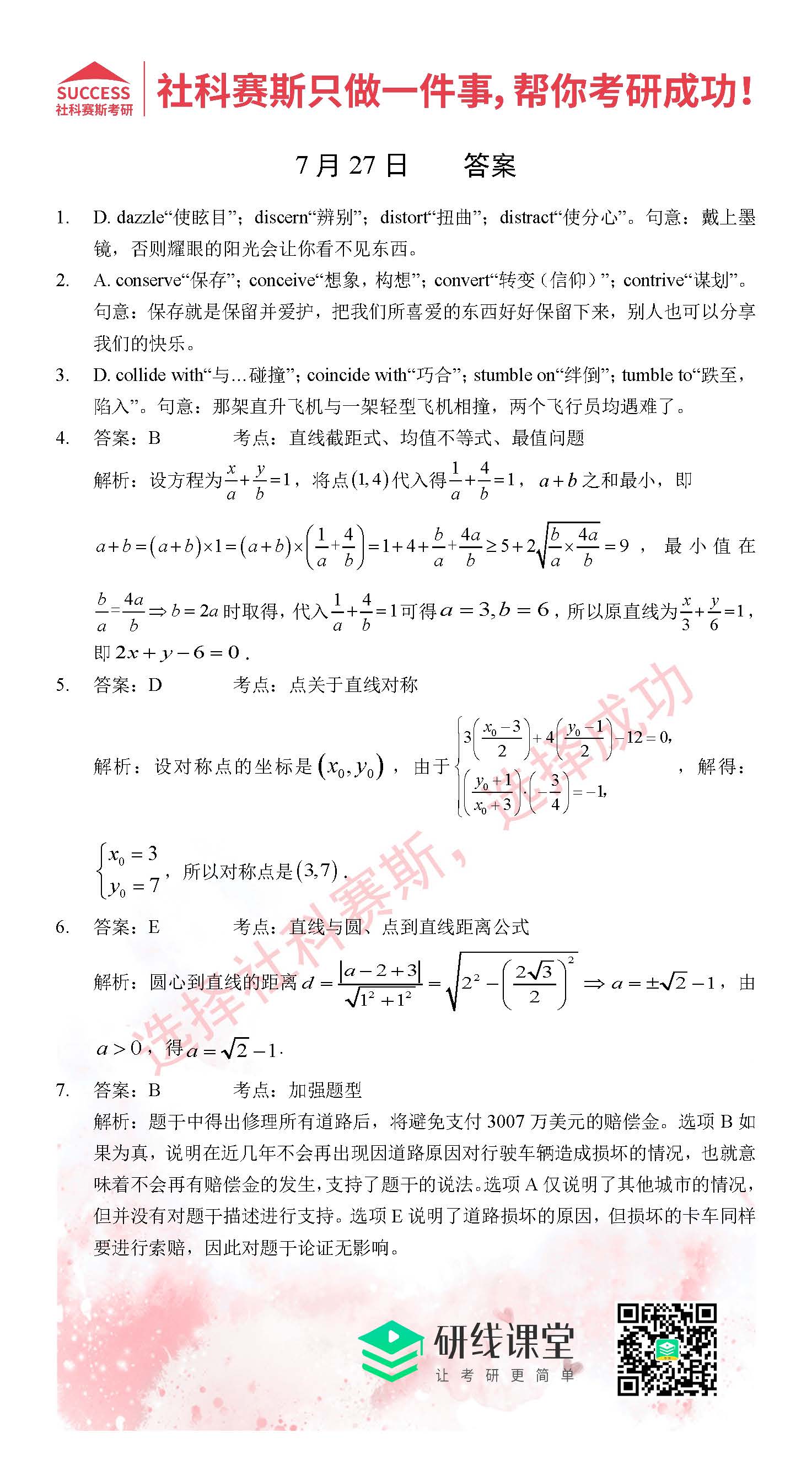 以上就是MBA備考網小編為大家提供的今日每日一練“2021管理類聯考7月27日每日一練及答案”的全部內容,希望各位考生堅持利用起來,更多每日一練內容請持續關注MBA備考網管理類聯考每日一練