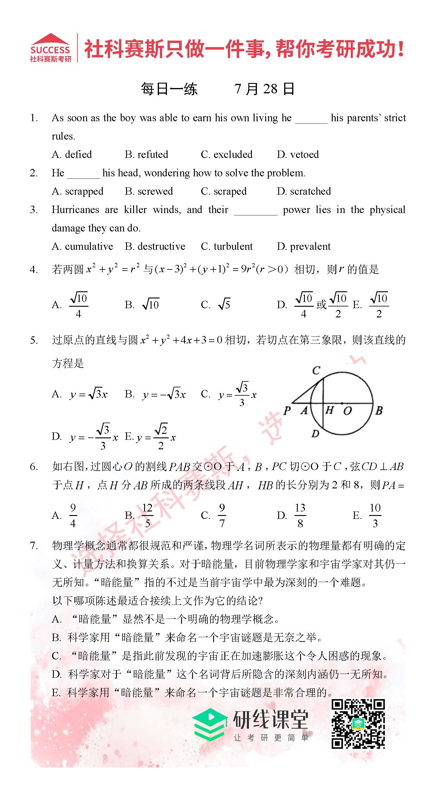 以上就是MBA備考網(wǎng)小編為大家提供的今日每日一練“2021管理類聯(lián)考7月28日每日一練及答案”的全部內(nèi)容,希望各位考生堅持利用起來,更多每日一練內(nèi)容請持續(xù)關(guān)注MBA備考網(wǎng)管理類聯(lián)考每日一練