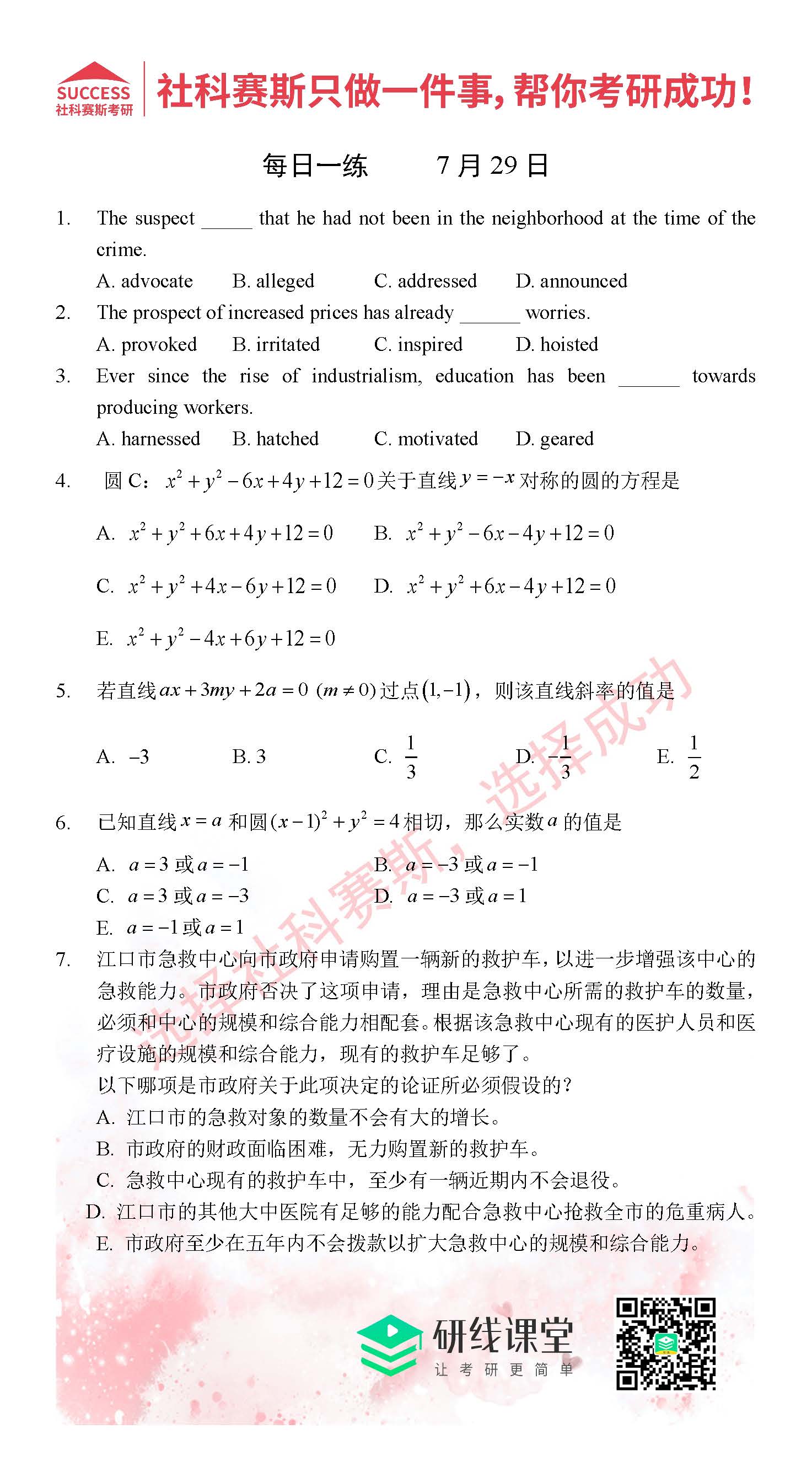 導(dǎo)讀:考研是一場持久戰(zhàn),保持良好的學(xué)習(xí)習(xí)慣,是能確保復(fù)習(xí)高效的關(guān)鍵。MBA備考網(wǎng)小編整理了管綜的每日一練,希望能對廣大考生有所幫助。