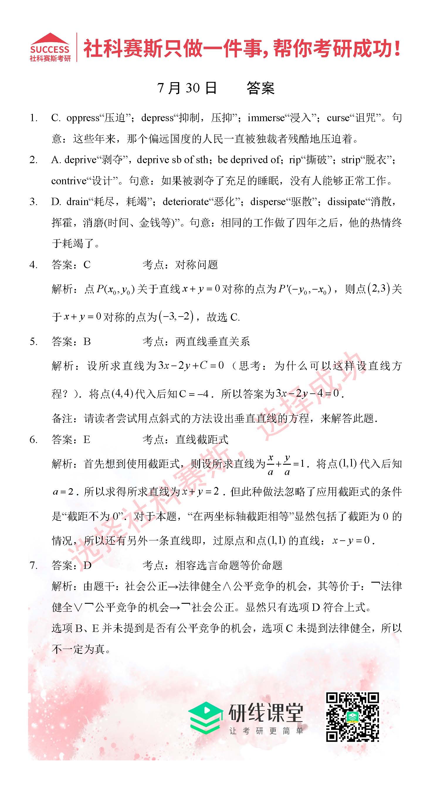 以上就是MBA備考網小編為大家提供的今日每日一練“2021管理類聯考7月30日每日一練及答案”的全部內容,希望各位考生堅持利用起來,更多每日一練內容請持續關注MBA備考網管理類聯考每日一練