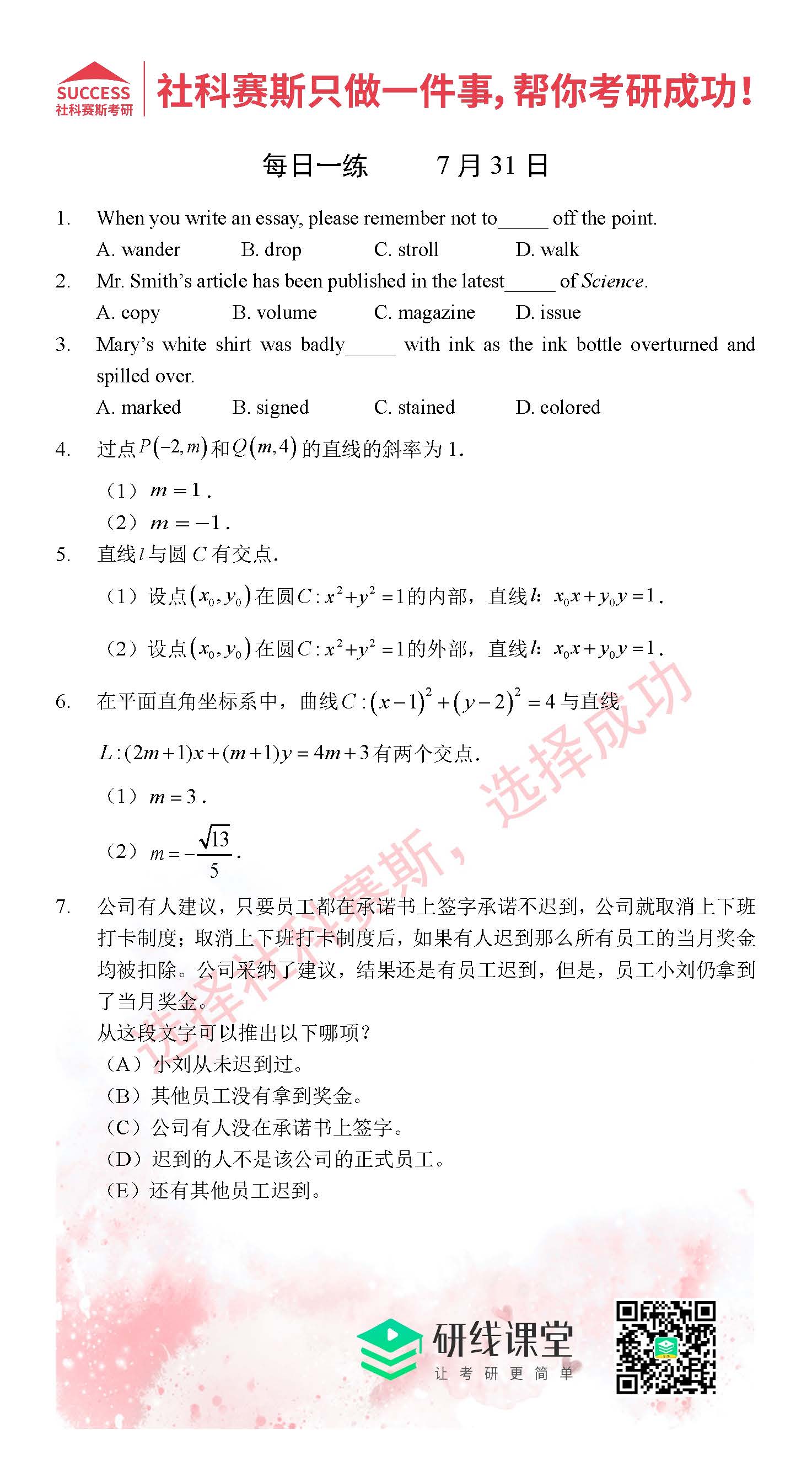 以上就是MBA備考網小編為大家提供的今日每日一練“2021管理類聯考7月31日每日一練及答案”的全部內容,希望各位考生堅持利用起來,更多每日一練內容請持續關注MBA備考網管理類聯考每日一練