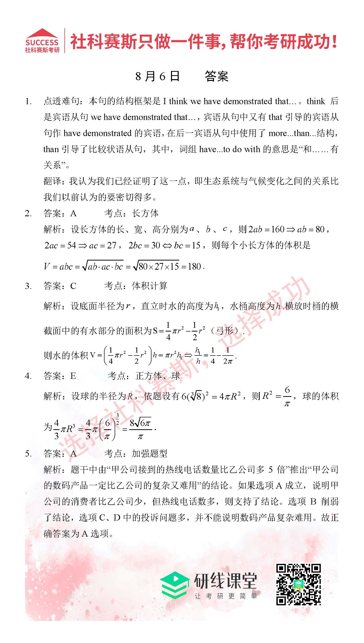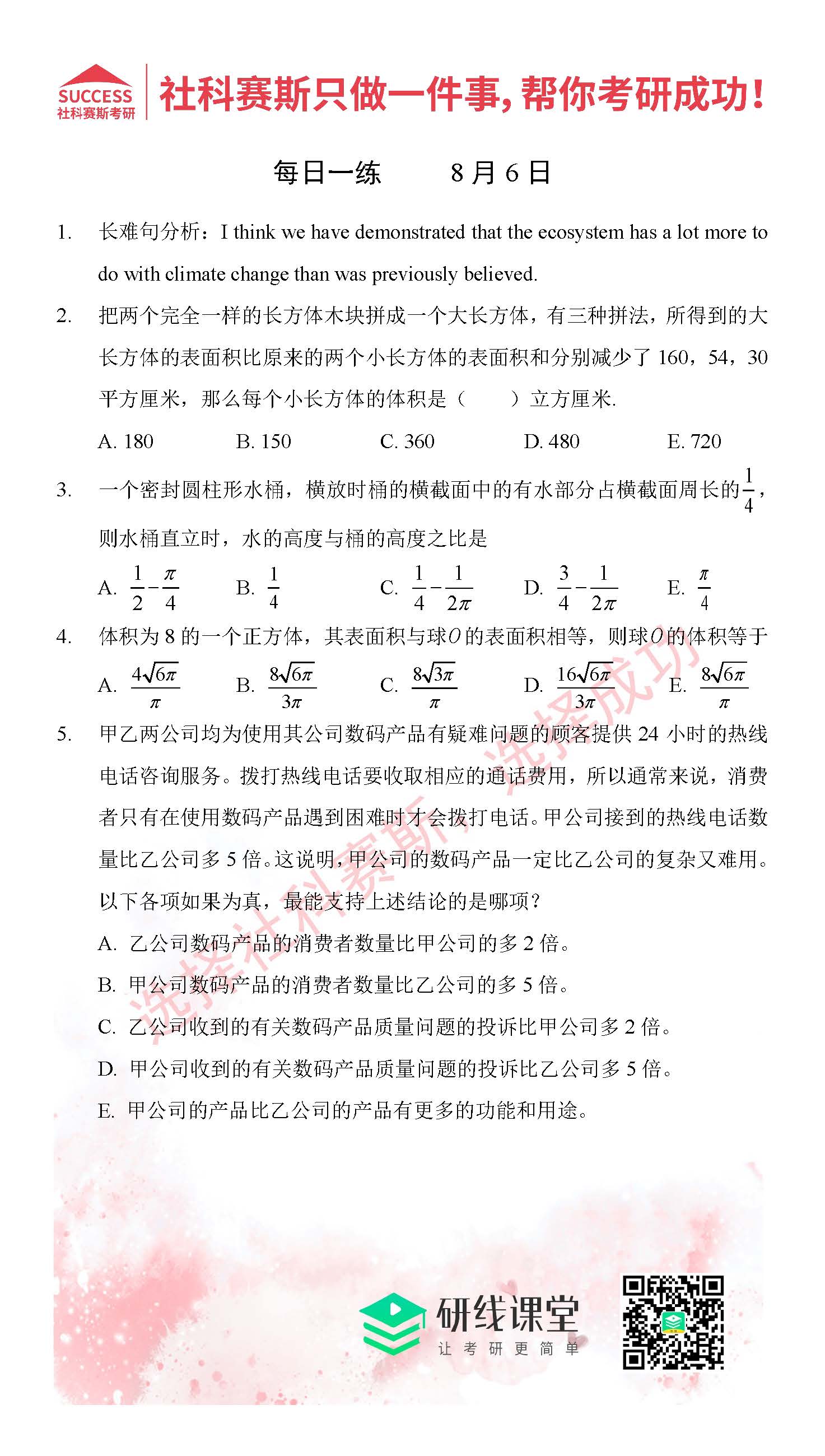 以上就是MBA備考網小編為大家提供的今日每日一練“2021管理類聯考8月6日每日一練及答案”的全部內容,希望各位考生堅持利用起來,更多每日一練內容請持續關注MBA備考網管理類聯考每日一練。