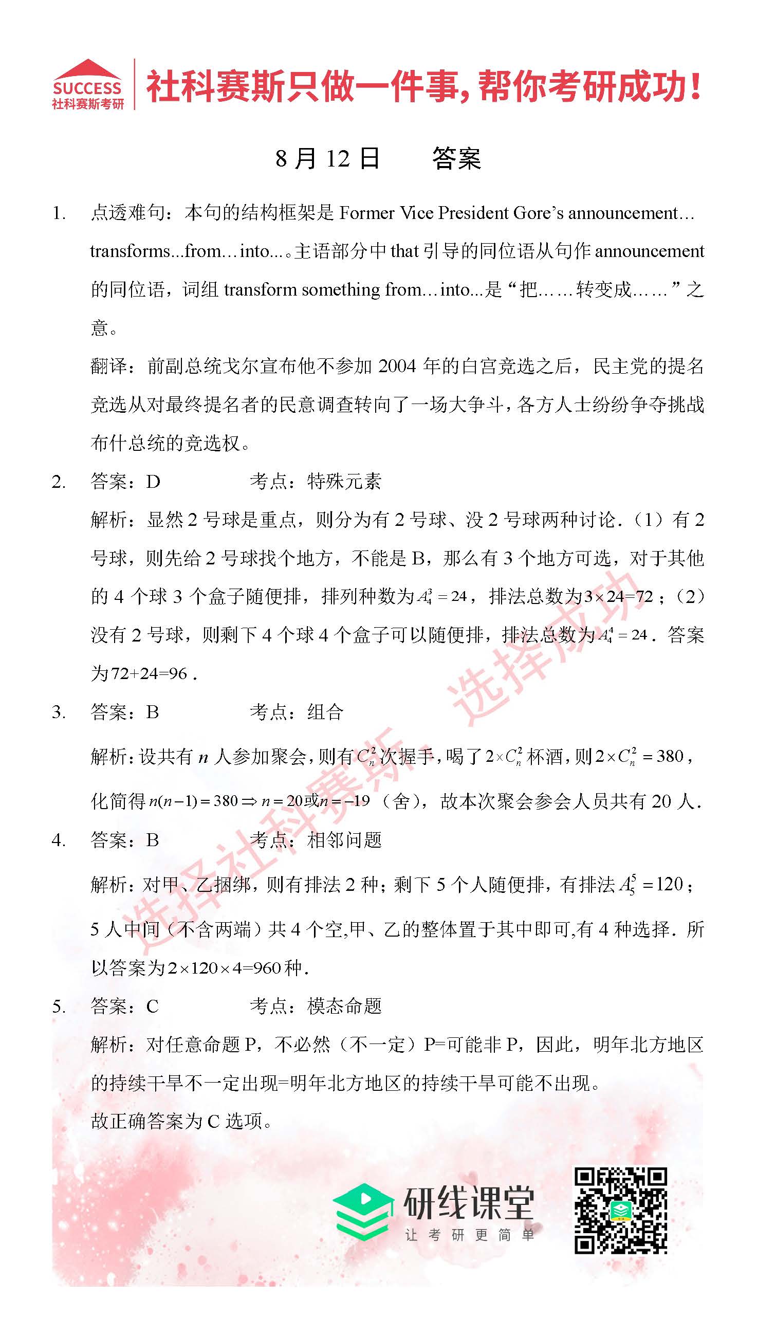 以上就是MBA備考網小編為大家提供的今日每日一練“2021管理類聯考8月12日每日一練及答案”的全部內容,希望各位考生堅持利用起來,更多每日一練內容請持續關注MBA備考網管理類聯考每日一練。