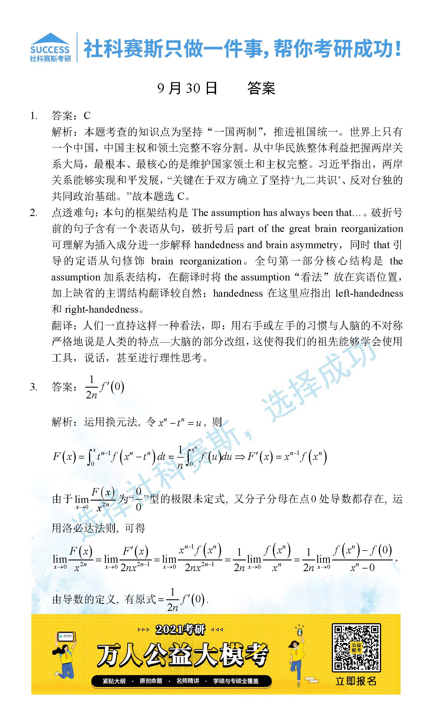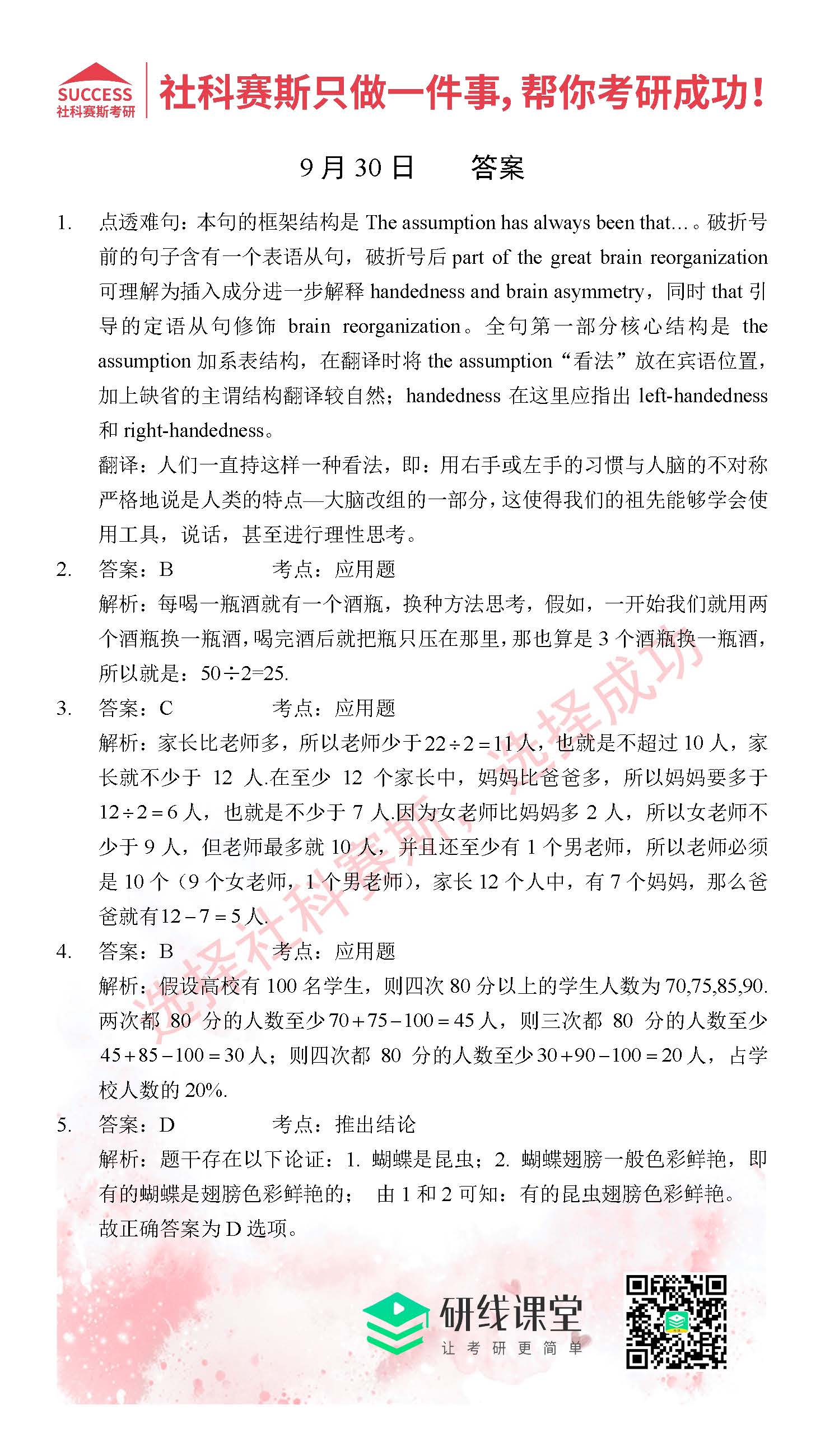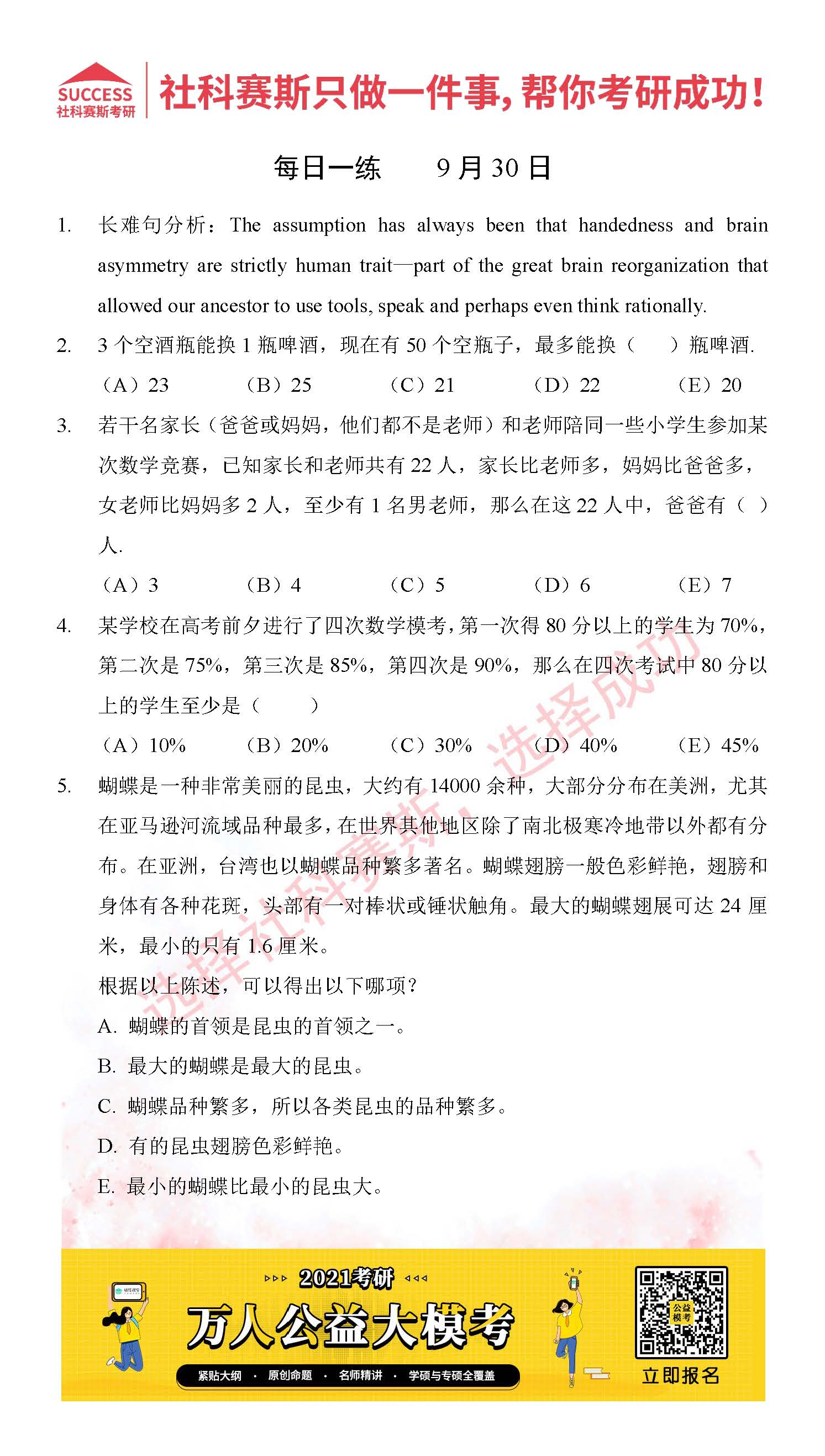 考研是一場持久戰,保持良好的學習習慣,是能確保復習高效的關鍵。今天社科賽斯MBA備考網小編整理了“2021管理類聯考9月30日每日一練及答案”的內容,希望能對廣大考生有所幫助。