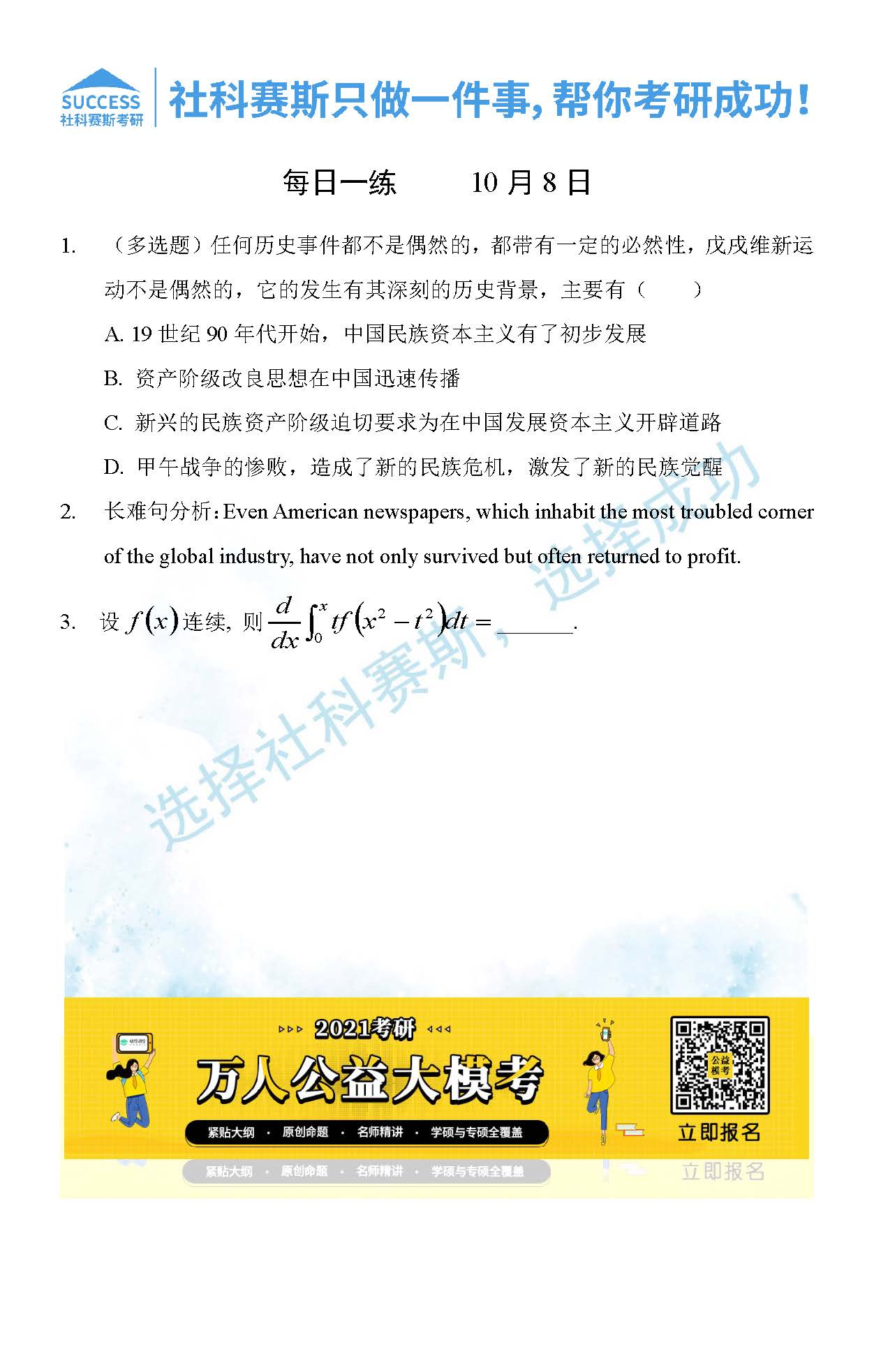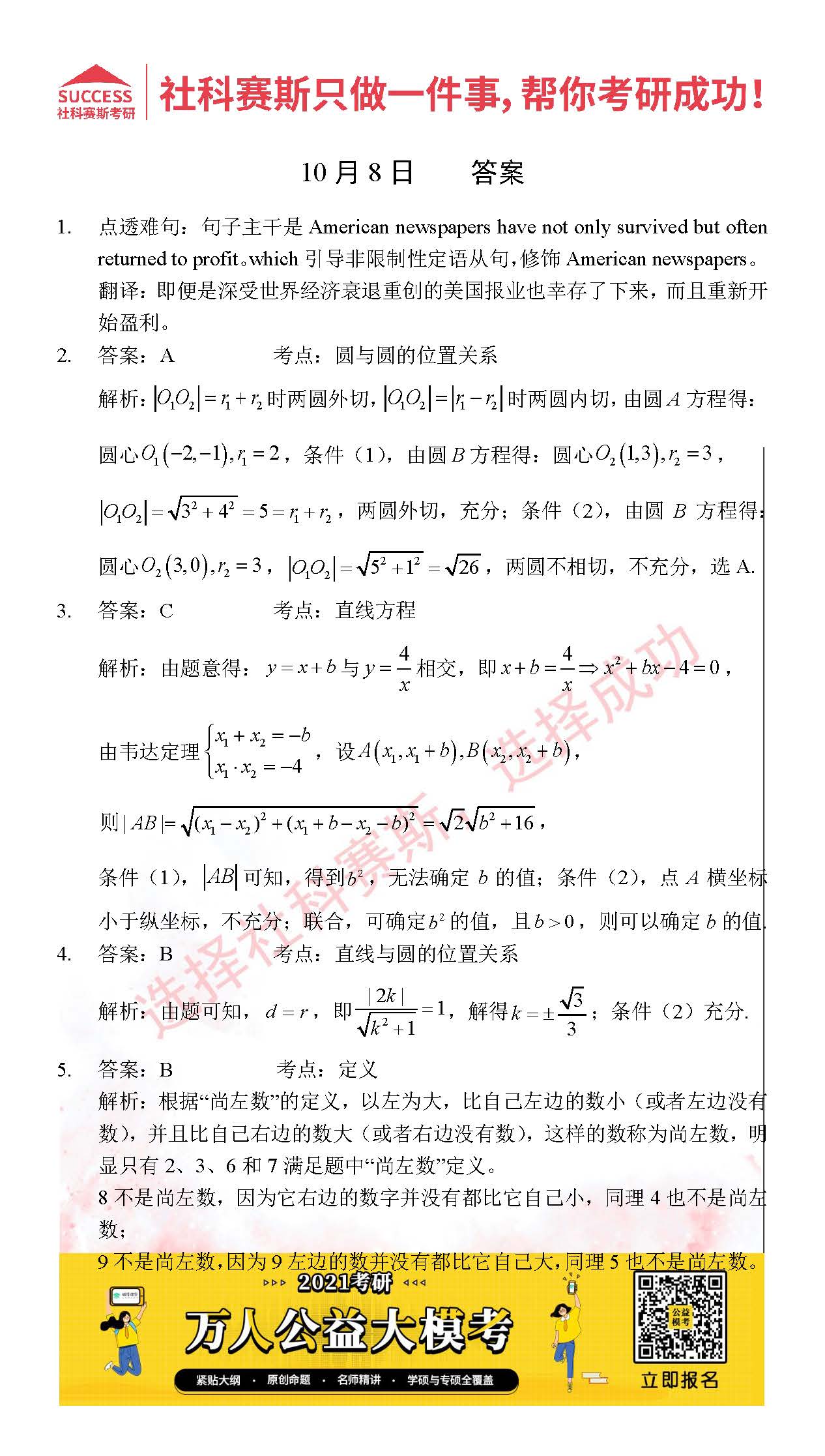 考研是一場持久戰,保持良好的學習習慣,是能確保復習高效的關鍵。今天社科賽斯MBA備考網小編整理了“2021管理類聯考10月8日每日一練及答案”的內容,希望能對廣大考生有所幫助。