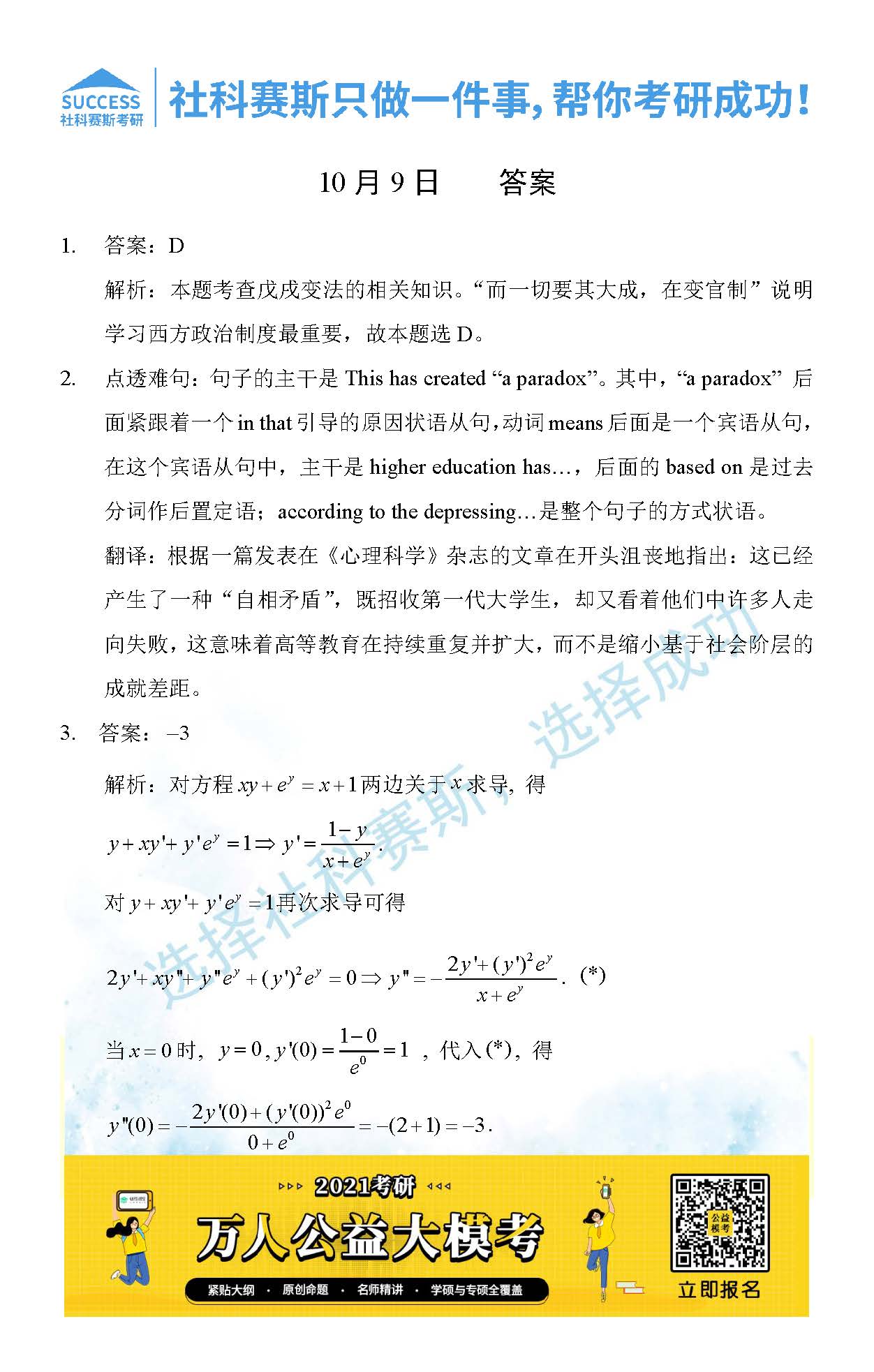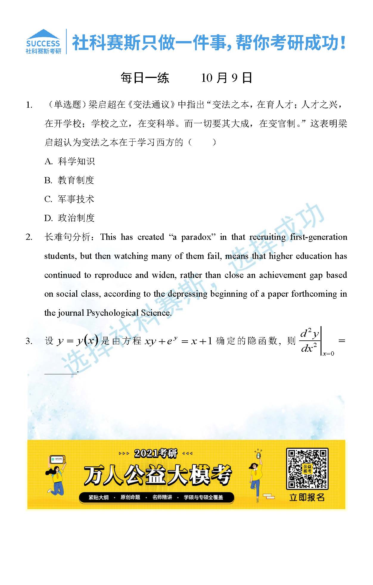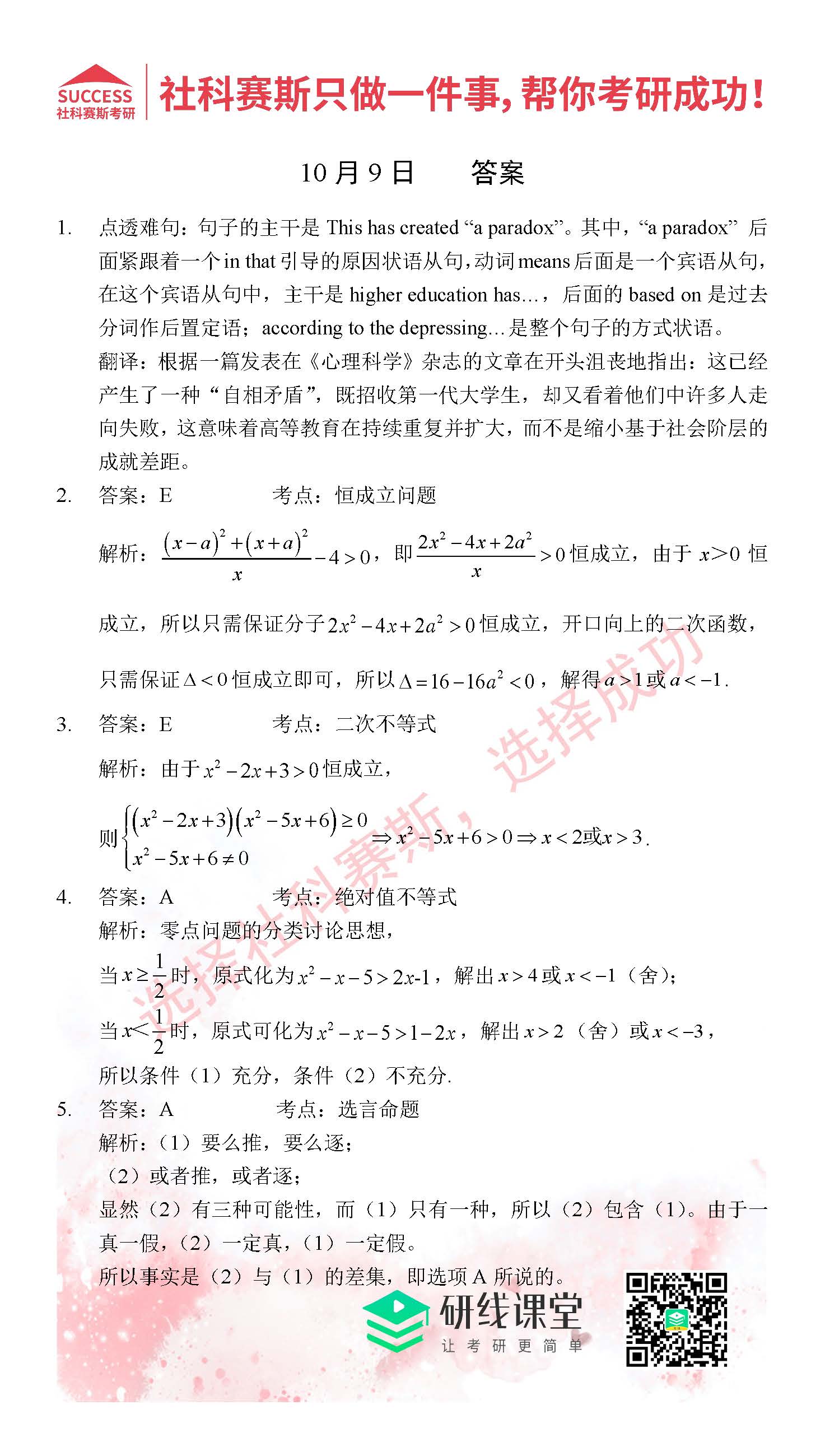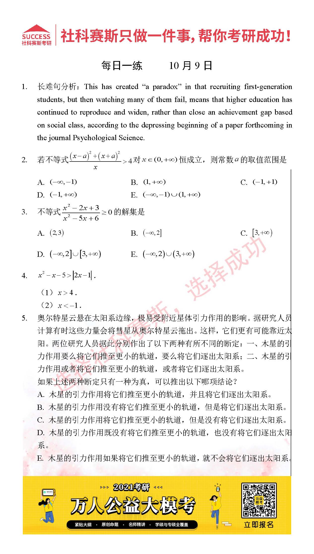 考研是一場(chǎng)持久戰(zhàn),保持良好的學(xué)習(xí)習(xí)慣,是能確保復(fù)習(xí)高效的關(guān)鍵。今天社科賽斯MBA備考網(wǎng)小編整理了“2021管理類(lèi)聯(lián)考10月9日每日一練及答案”的內(nèi)容,希望能對(duì)廣大考生有所幫助。