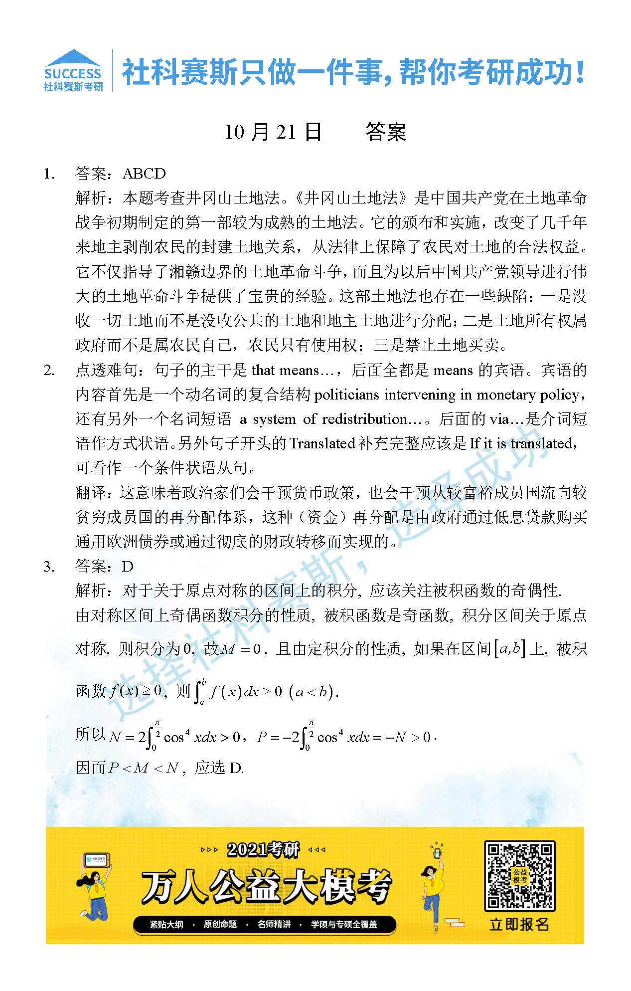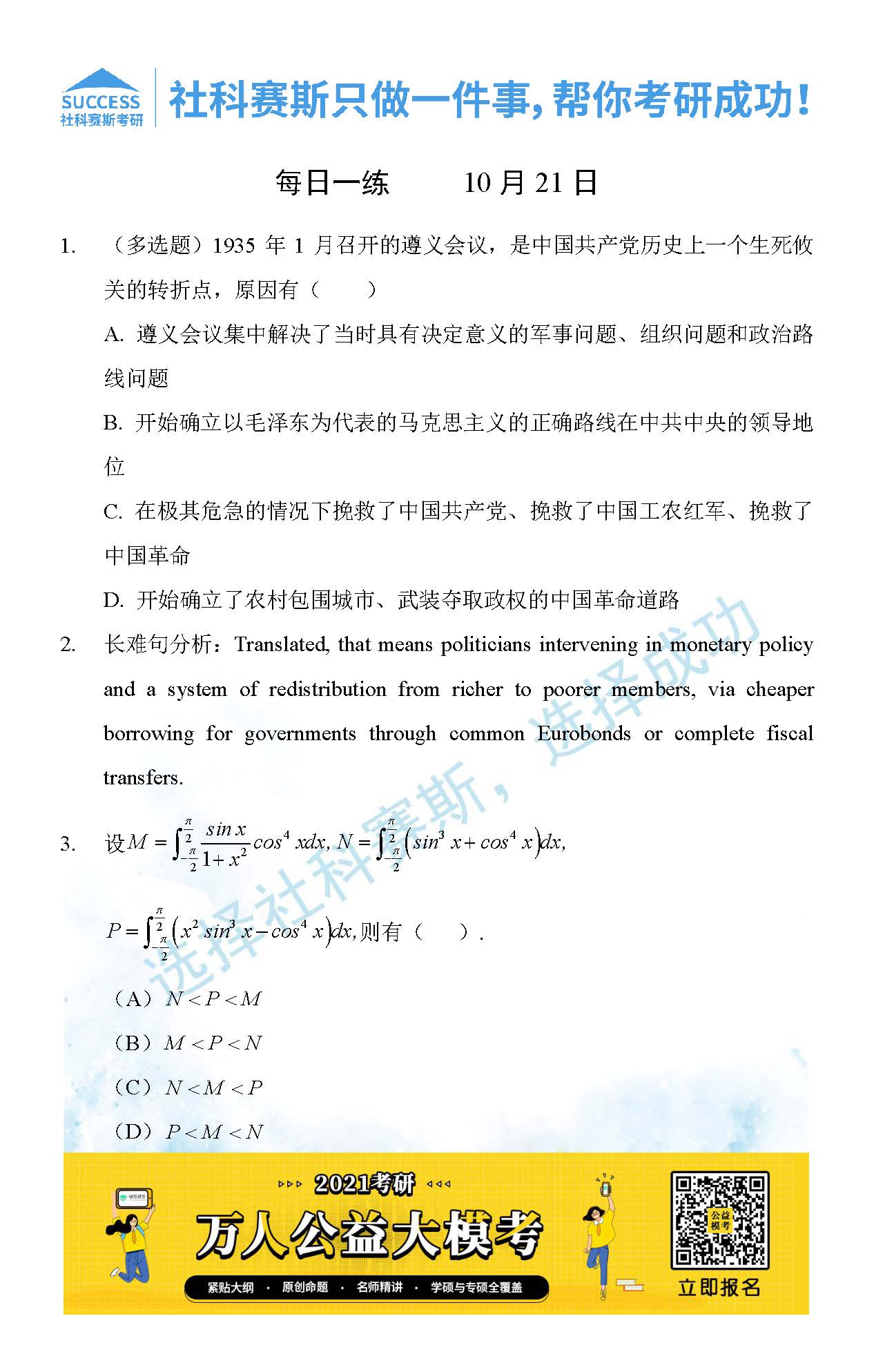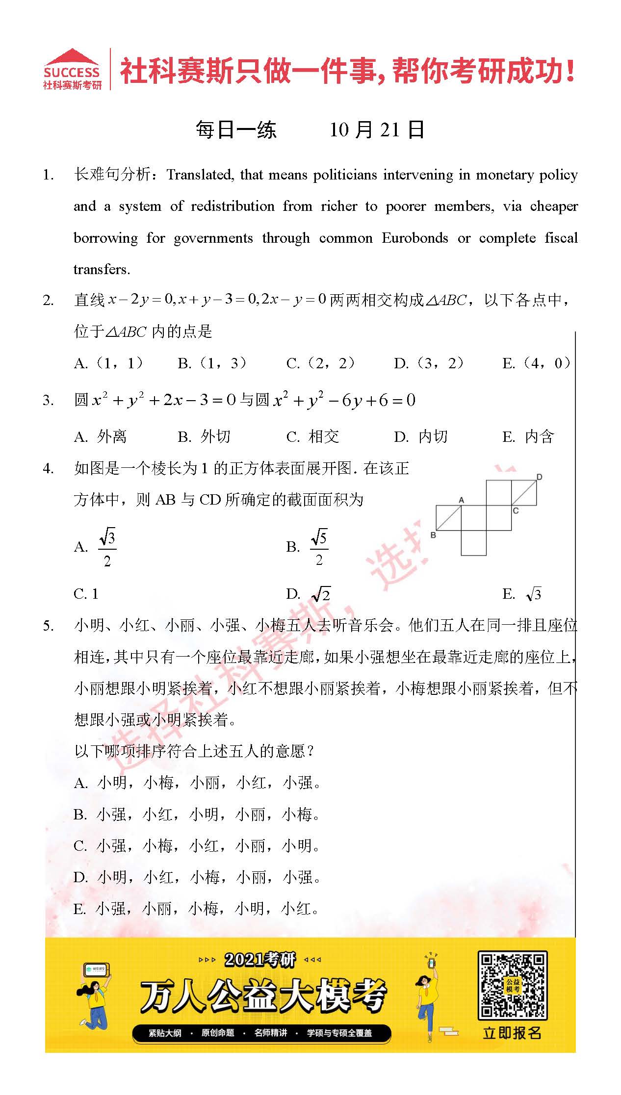 考研是一場持久戰(zhàn),保持良好的學習習慣,是能確保復習高效的關鍵。今天社科賽斯MBA備考網小編整理了“2021管理類聯(lián)10月21日每日一練及答案”的內容,希望能對廣大考生有所幫助。
