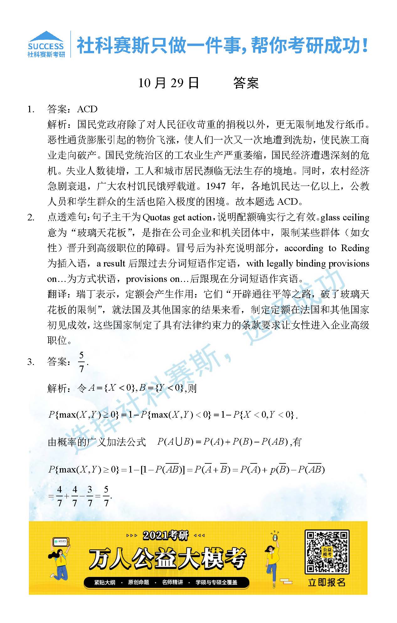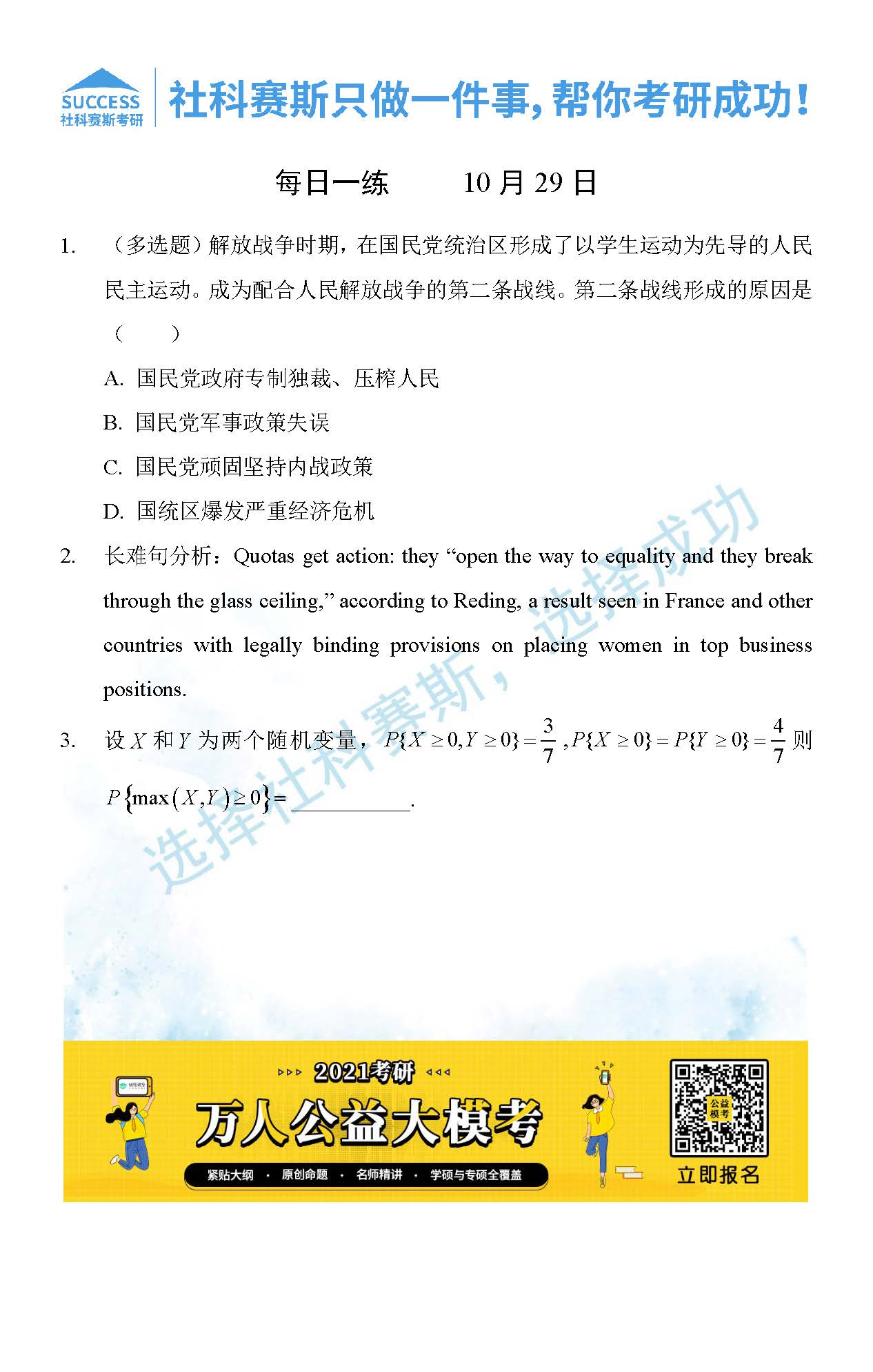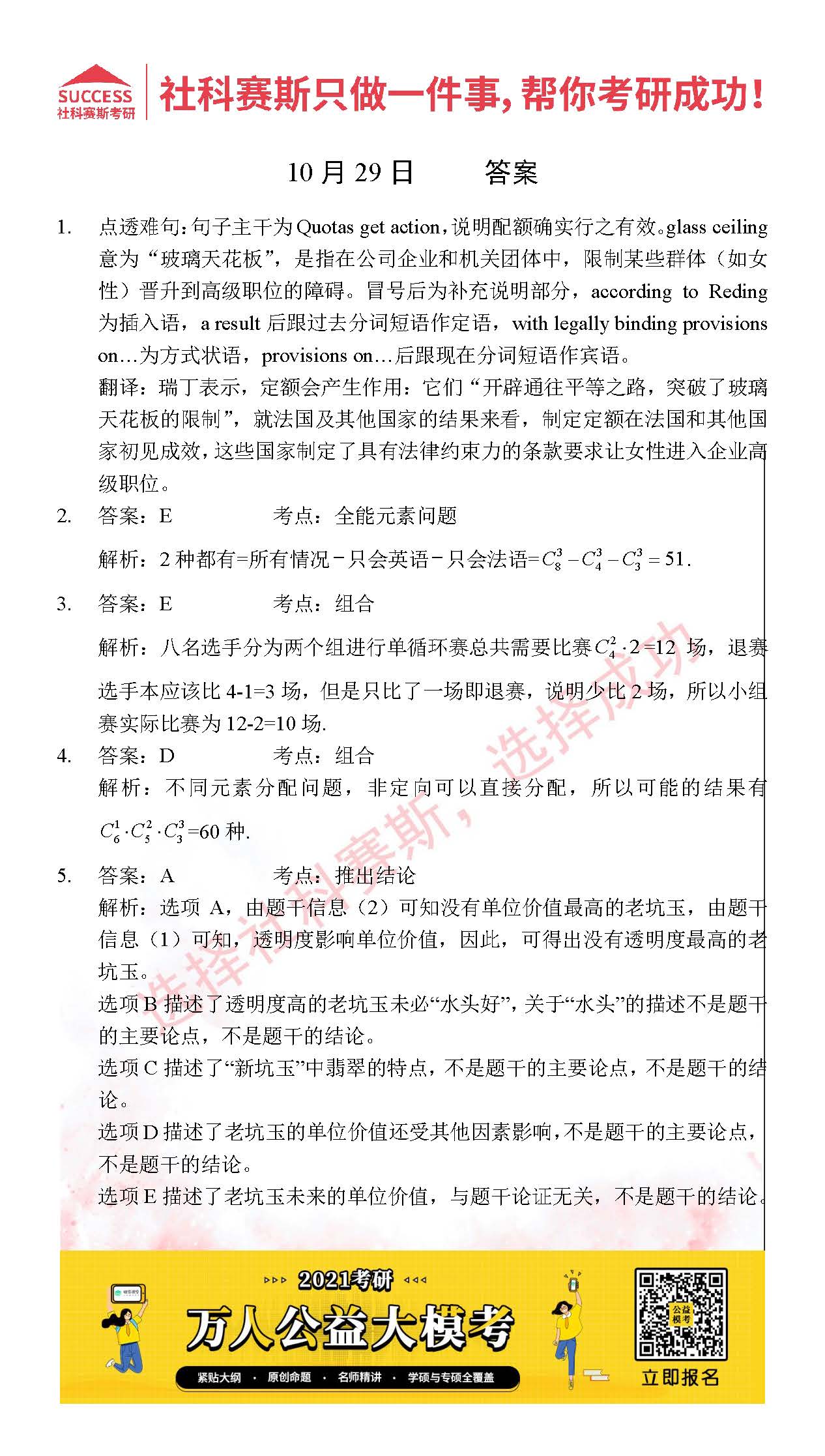 考研是一場持久戰,保持良好的學習習慣,是能確保復習高效的關鍵。今天社科賽斯MBA備考網小編整理了“2021管理類聯10月29日每日一練及答案”的內容,希望能對廣大考生有所幫助。