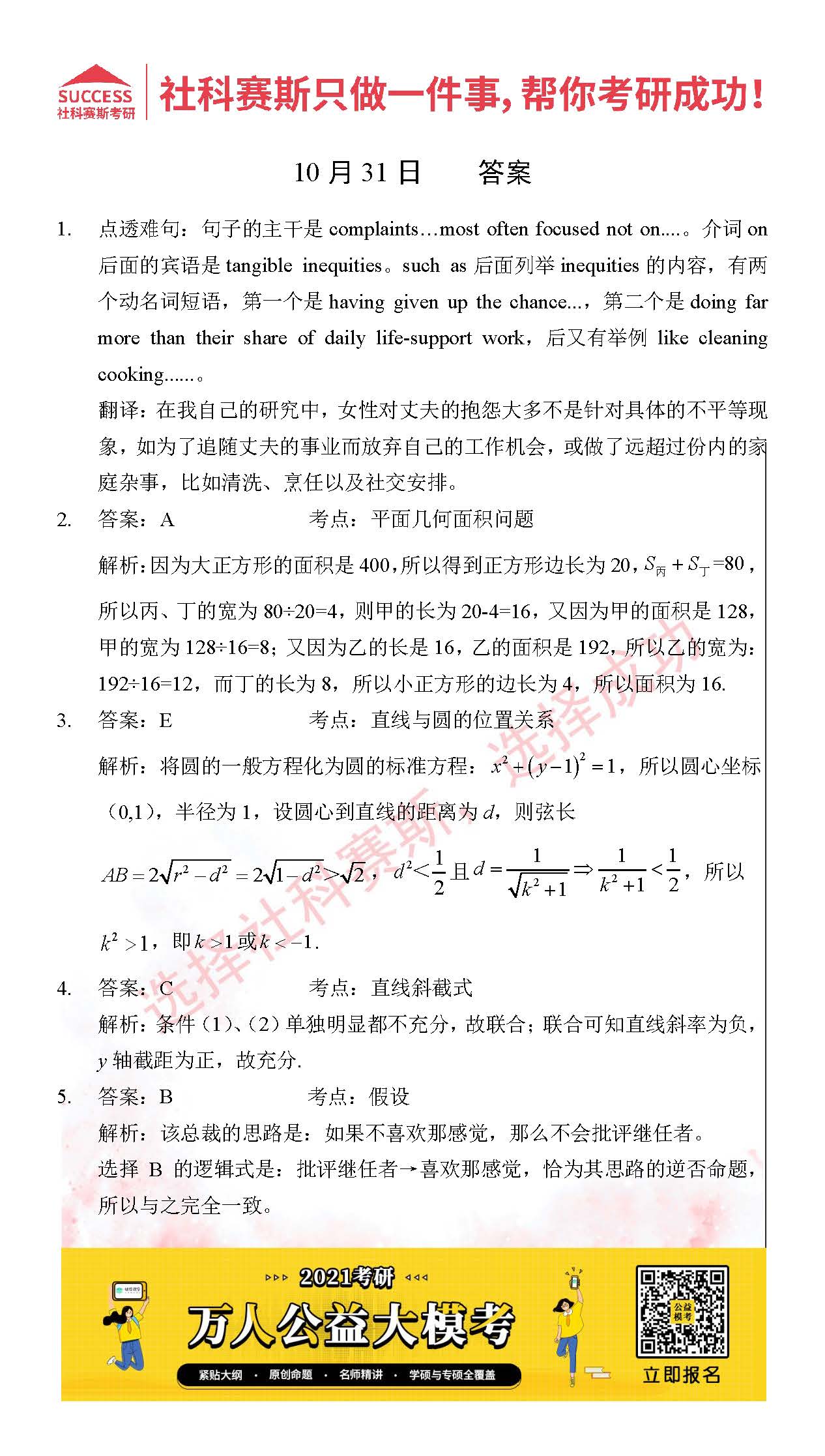 考研是一場持久戰(zhàn),保持良好的學(xué)習(xí)習(xí)慣,是能確保復(fù)習(xí)高效的關(guān)鍵。今天社科賽斯MBA備考網(wǎng)小編整理了“2021管理類聯(lián)10月31日每日一練及答案”的內(nèi)容,希望能對廣大考生有所幫助。