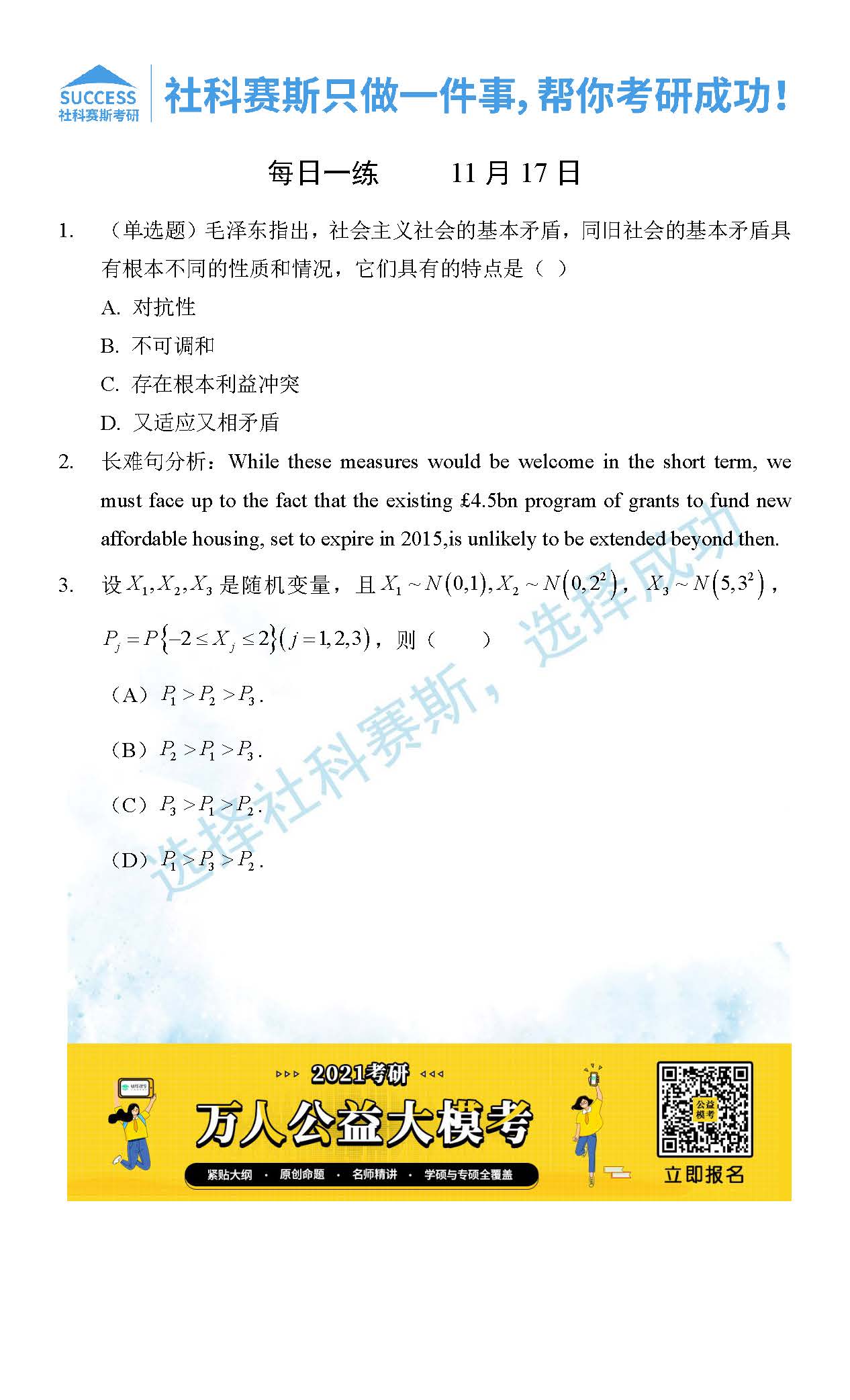 考研是一場持久戰,保持良好的學習習慣,是能確保復習高效的關鍵。今天社科賽斯MBA備考網小編整理了“2021管理類聯11月17日每日一練及答案”的內容,希望能對廣大考生有所幫助。