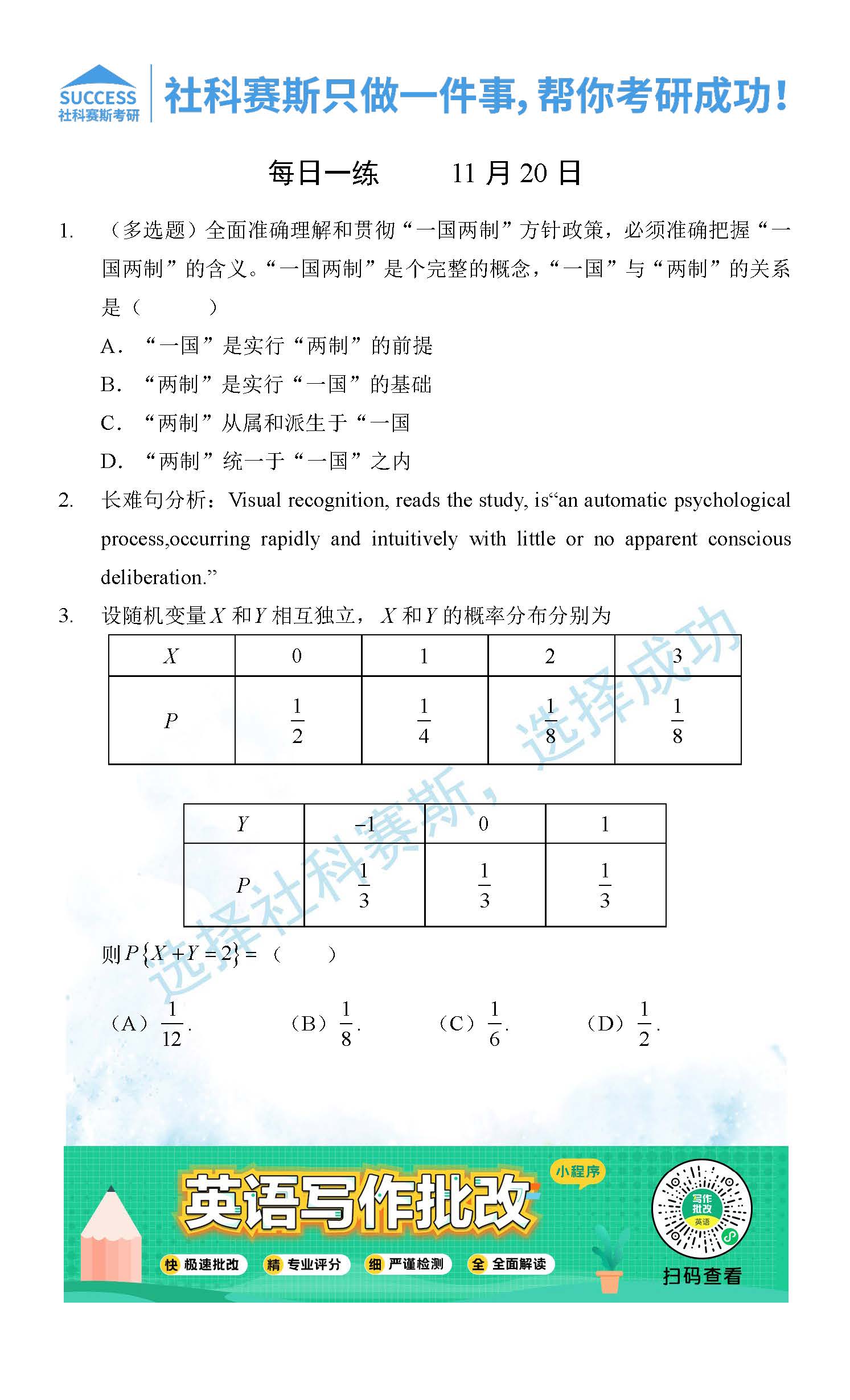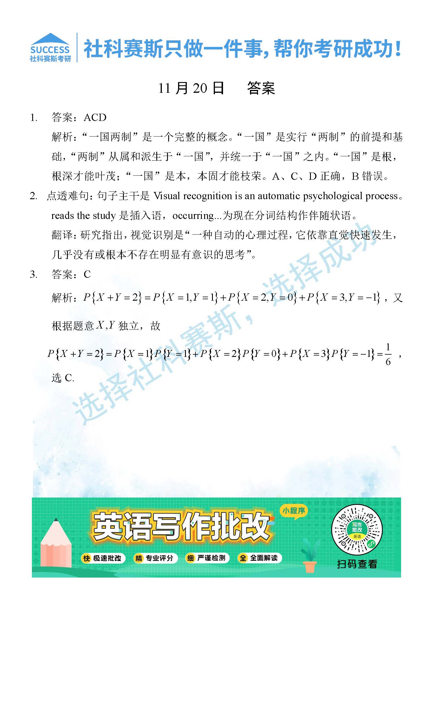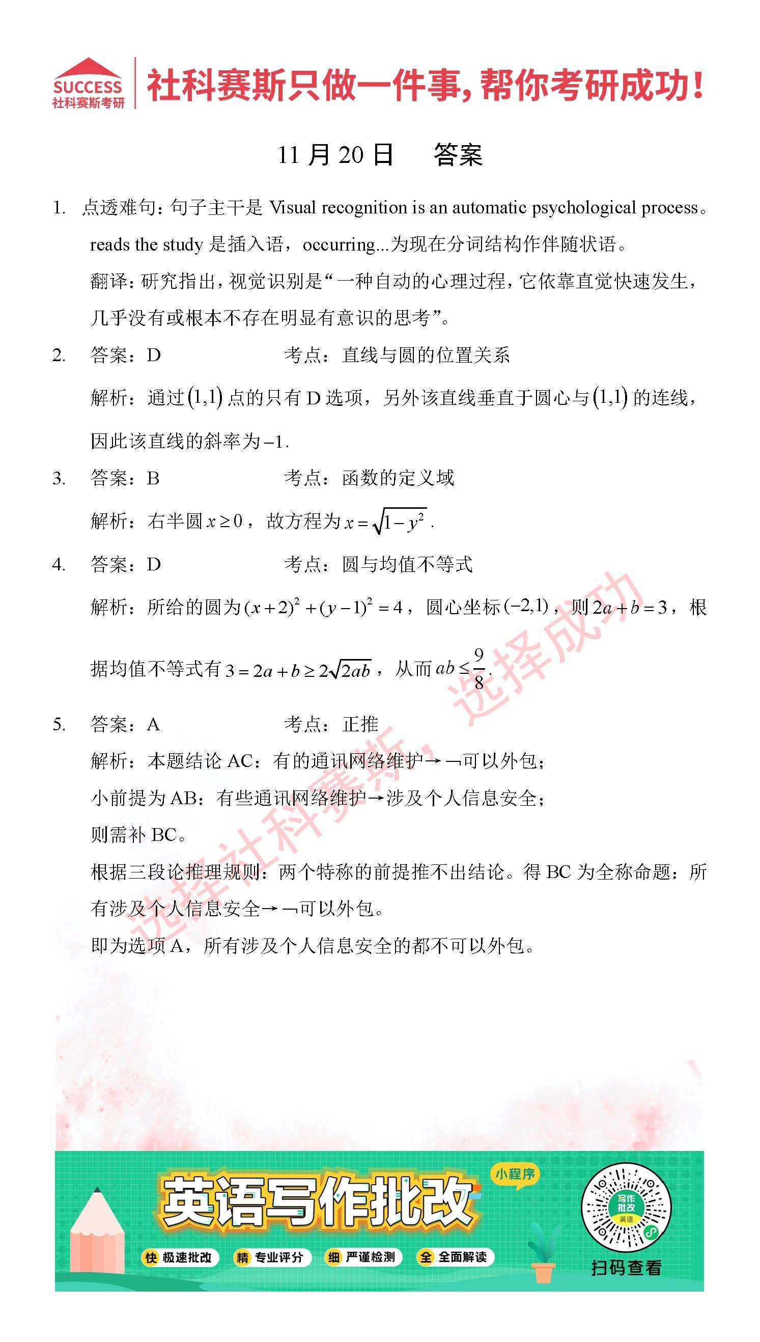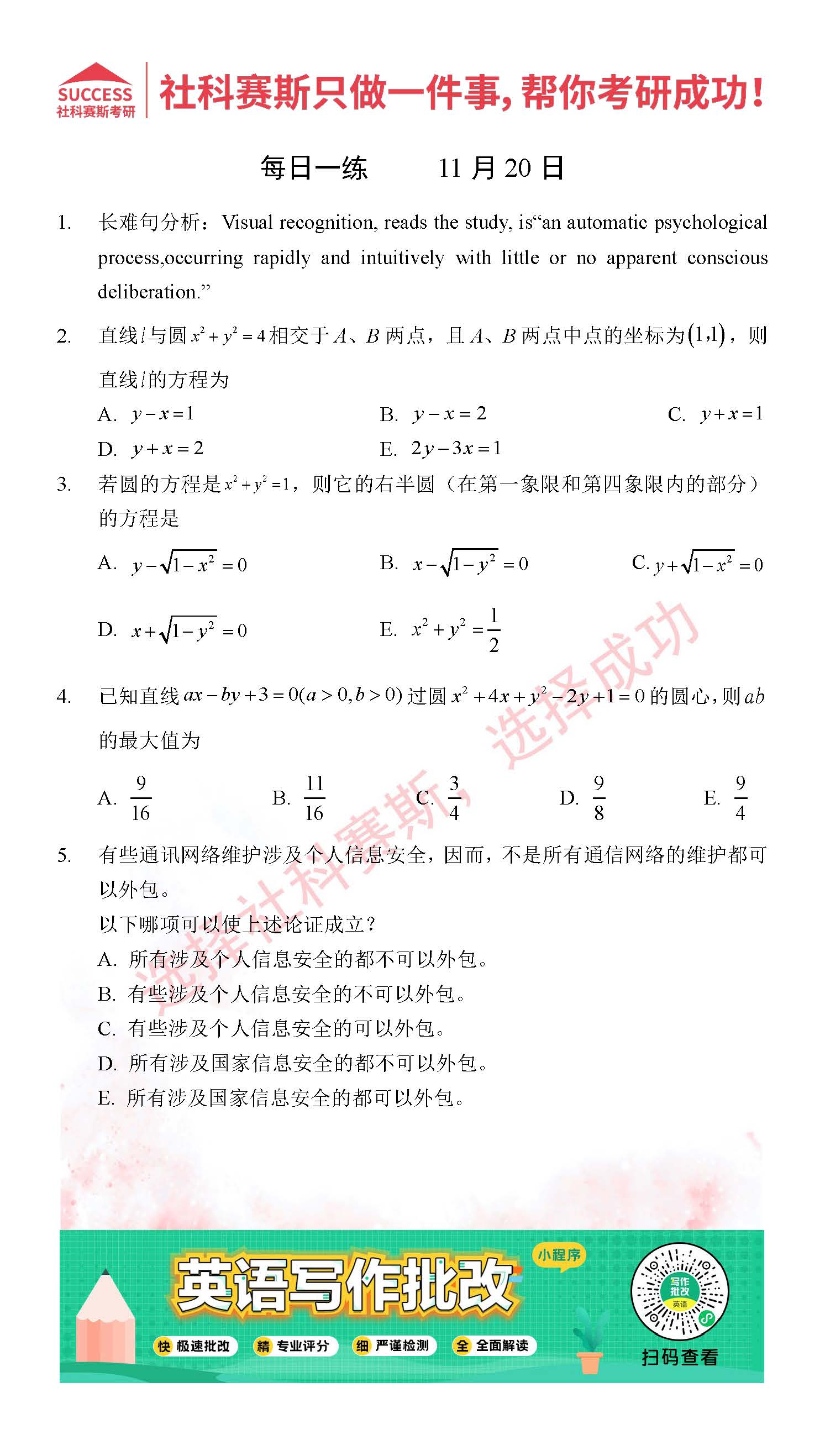 考研是一場持久戰,保持良好的學習習慣,是能確保復習高效的關鍵。今天社科賽斯MBA備考網小編整理了“2021管理類聯11月20日每日一練及答案”的內容,希望能對廣大考生有所幫助。