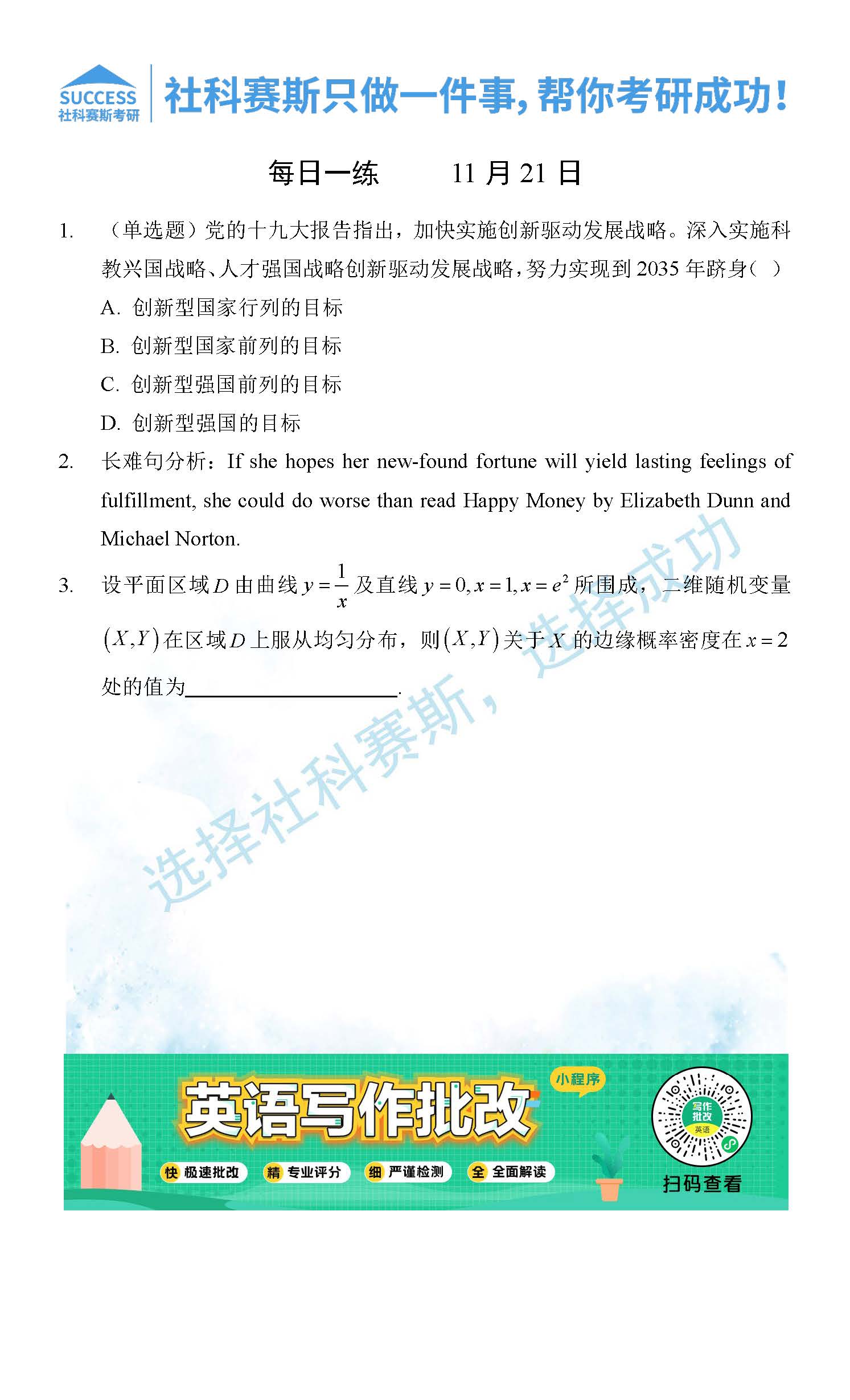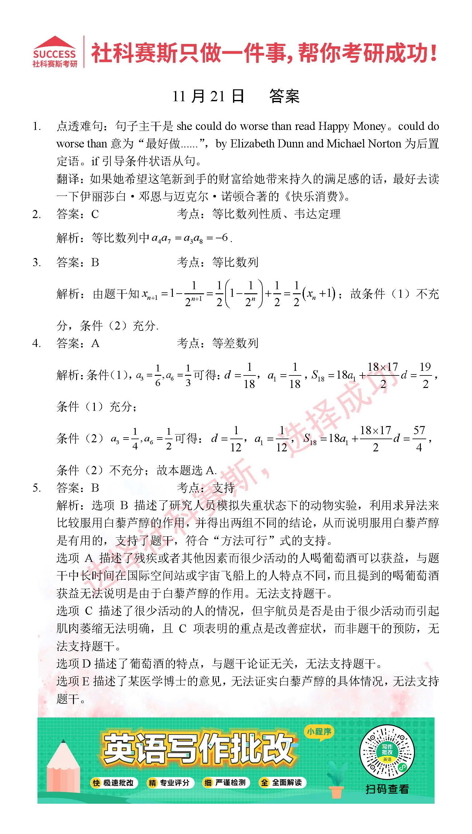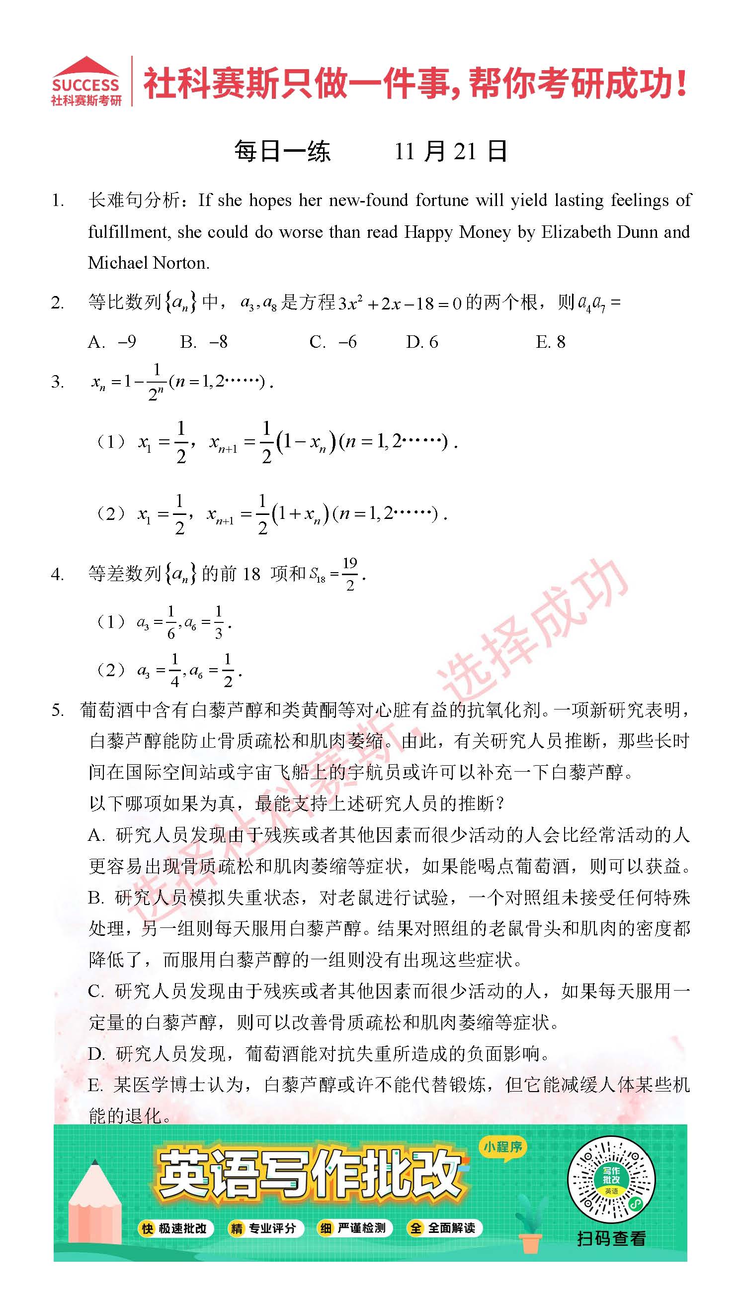 考研是一場持久戰(zhàn),保持良好的學習習慣,是能確保復習高效的關鍵。今天社科賽斯MBA備考網小編整理了“2021管理類聯(lián)11月21日每日一練及答案”的內容,希望能對廣大考生有所幫助。