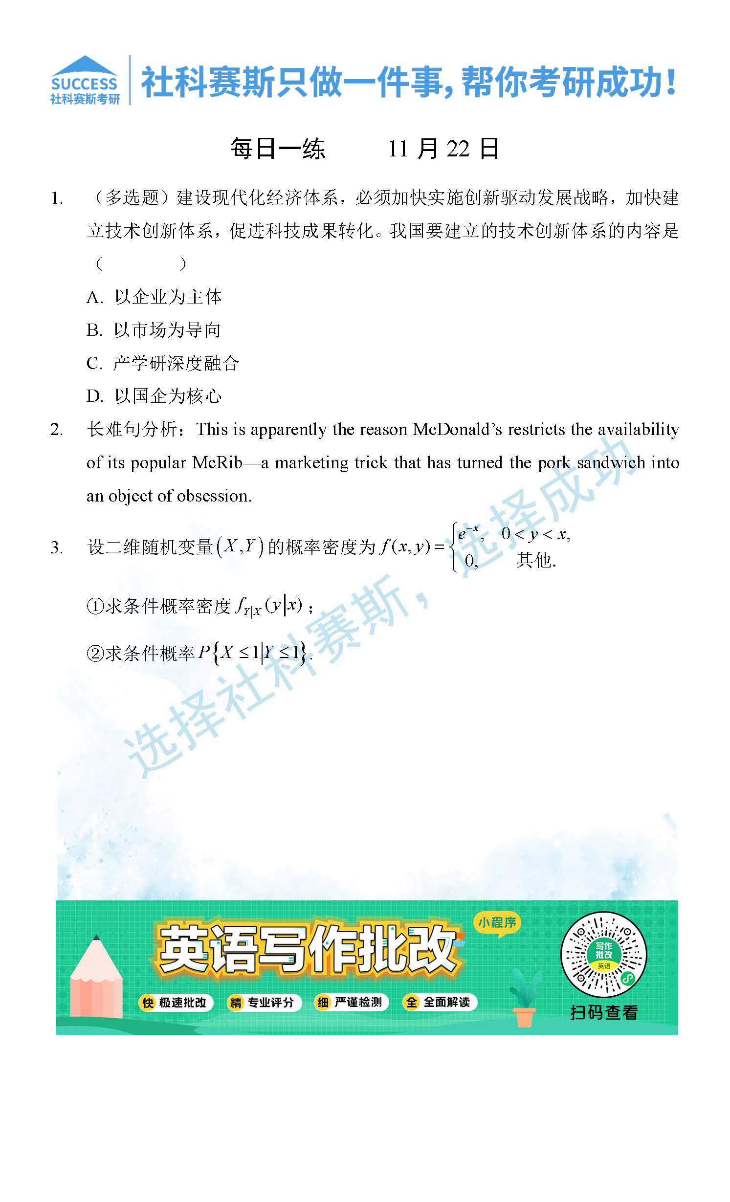 導(dǎo)讀:考研是一場(chǎng)持久戰(zhàn),保持良好的學(xué)習(xí)習(xí)慣,是能確保復(fù)習(xí)高效的關(guān)鍵。今天社科賽斯MBA備考網(wǎng)小編整理了“2021管理類聯(lián)11月22日每日一練及答案”的內(nèi)容,希望能對(duì)廣大考生有所幫助。