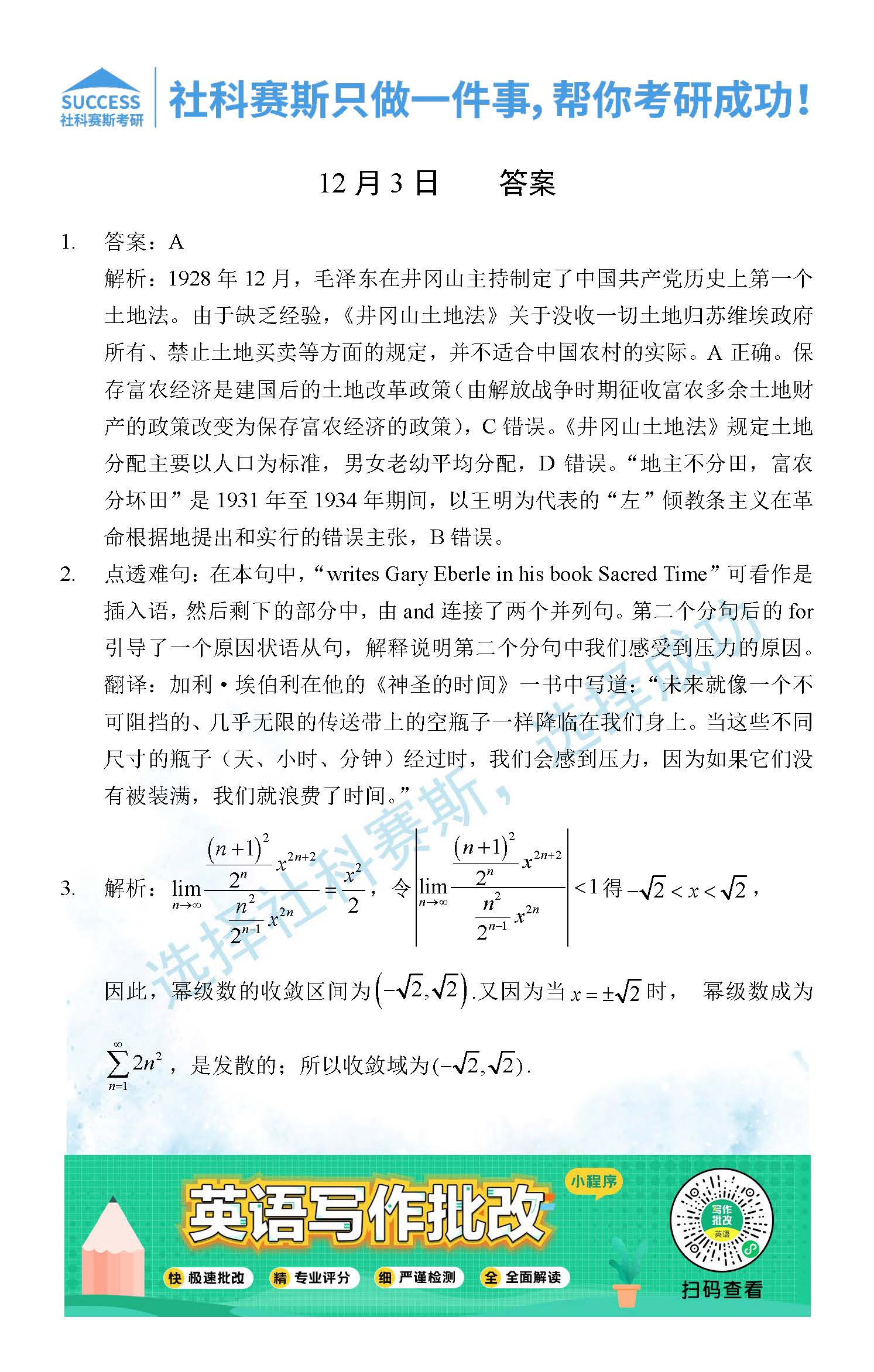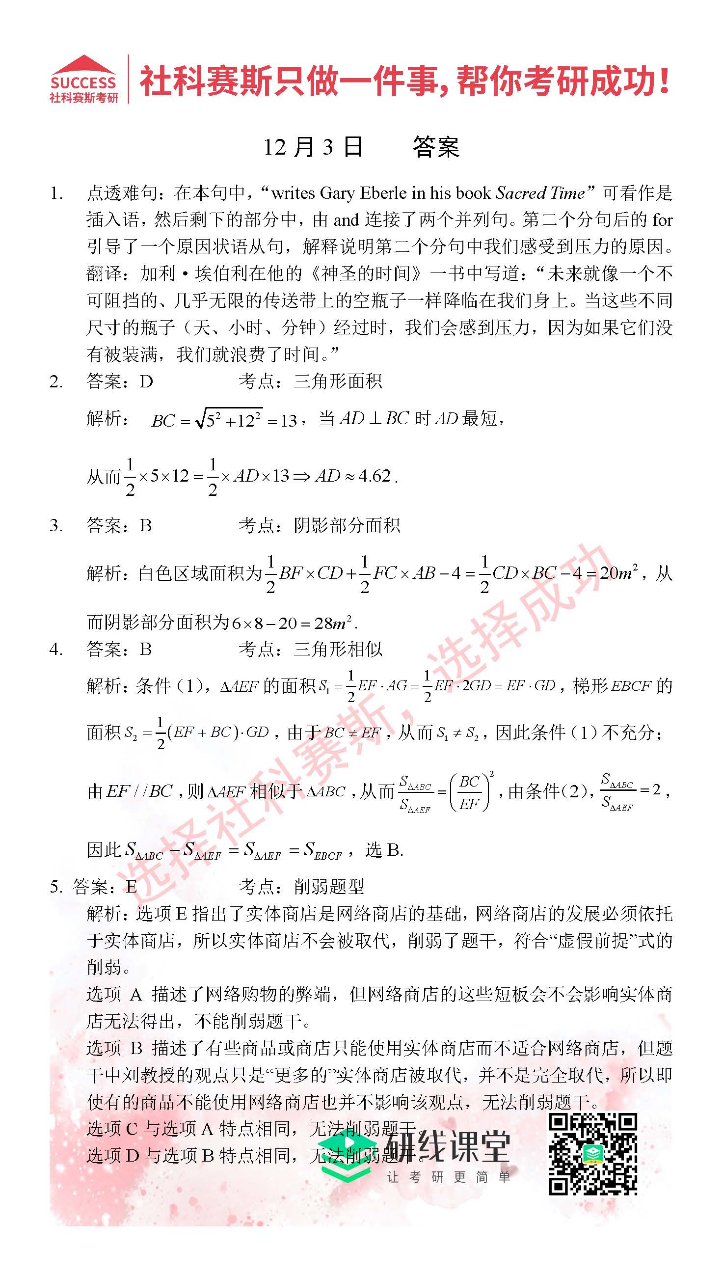 考研是一場持久戰(zhàn),保持良好的學(xué)習(xí)習(xí)慣,是能確保復(fù)習(xí)高效的關(guān)鍵。今天社科賽斯MBA備考網(wǎng)小編整理了“2021管理類聯(lián)12月3日每日一練及答案”的內(nèi)容,希望能對廣大考生有所幫助。