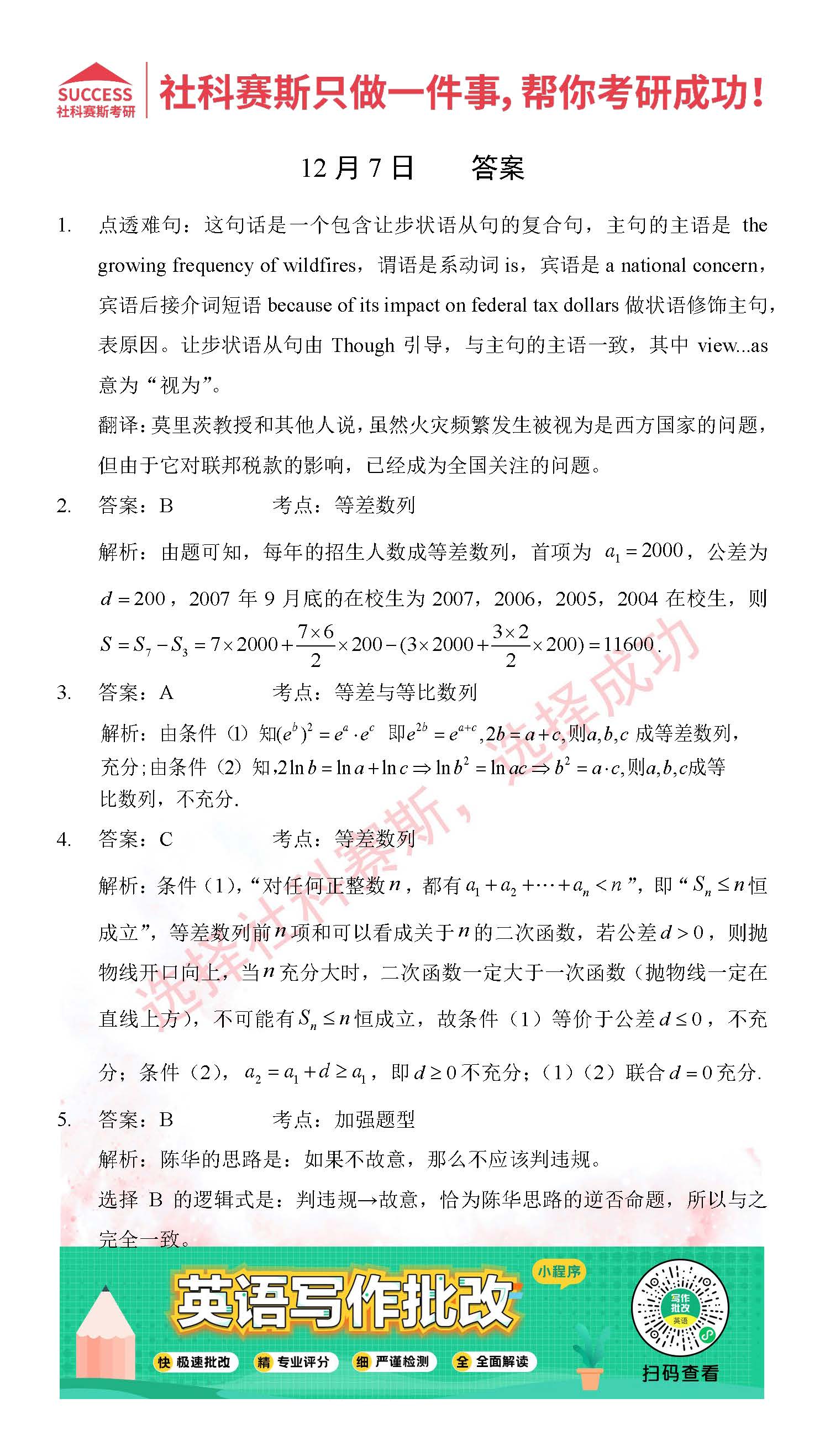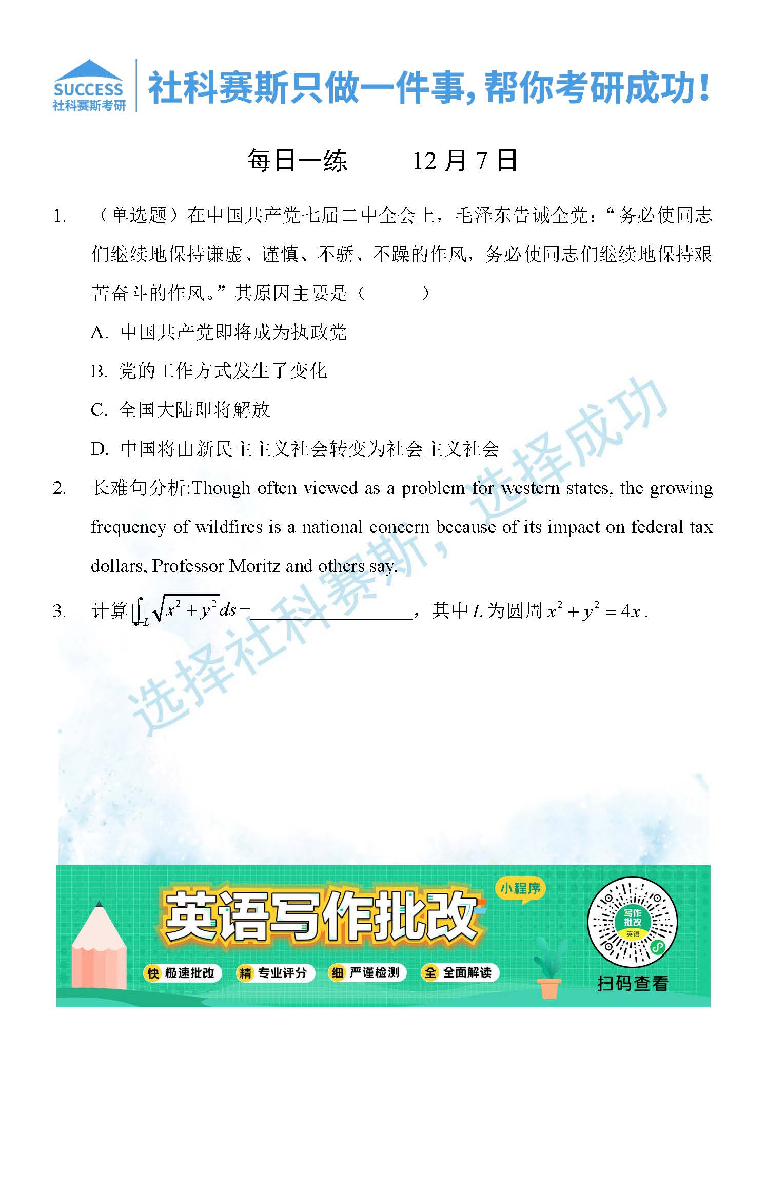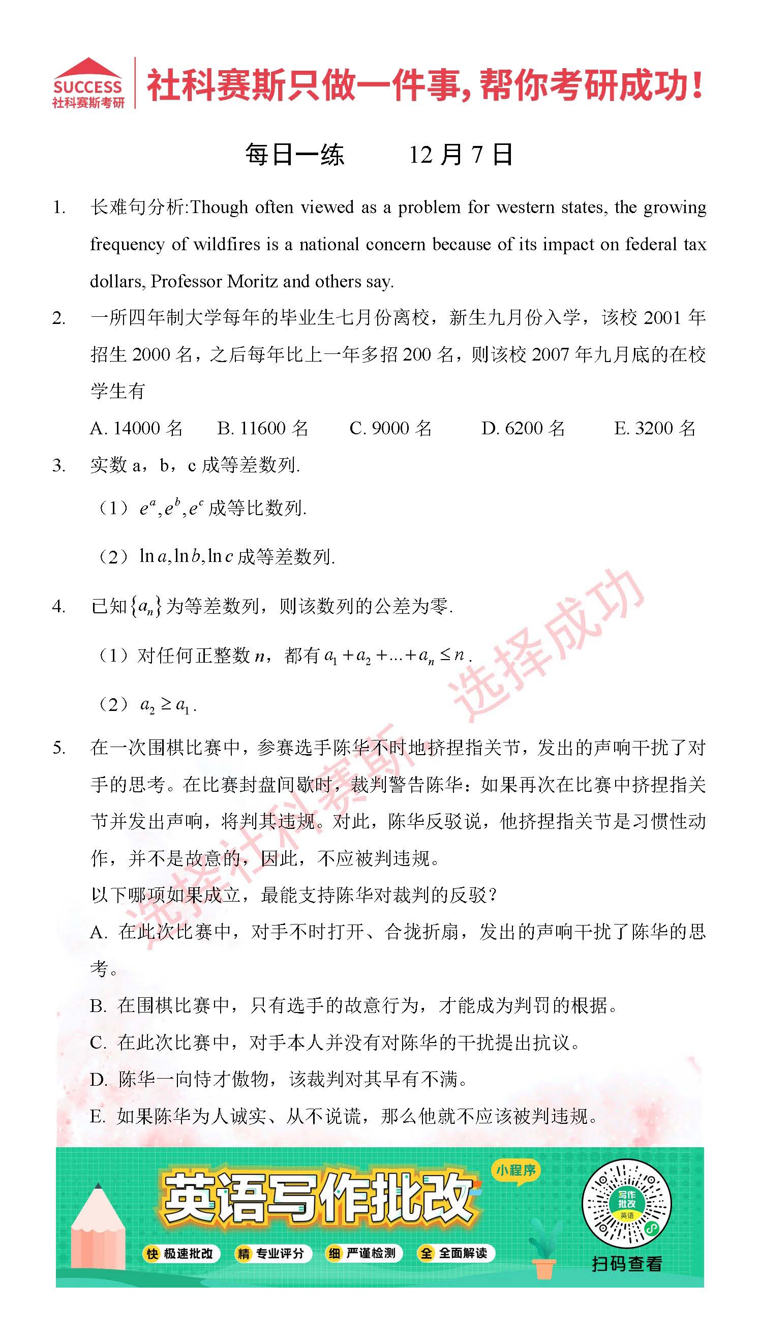 導讀:考研是一場持久戰,保持良好的學習習慣,是能確保復習高效的關鍵。今天社科賽斯MBA備考網小編整理了“2021管理類聯12月7日每日一練及答案”的內容,希望能對廣大考生有所幫助。