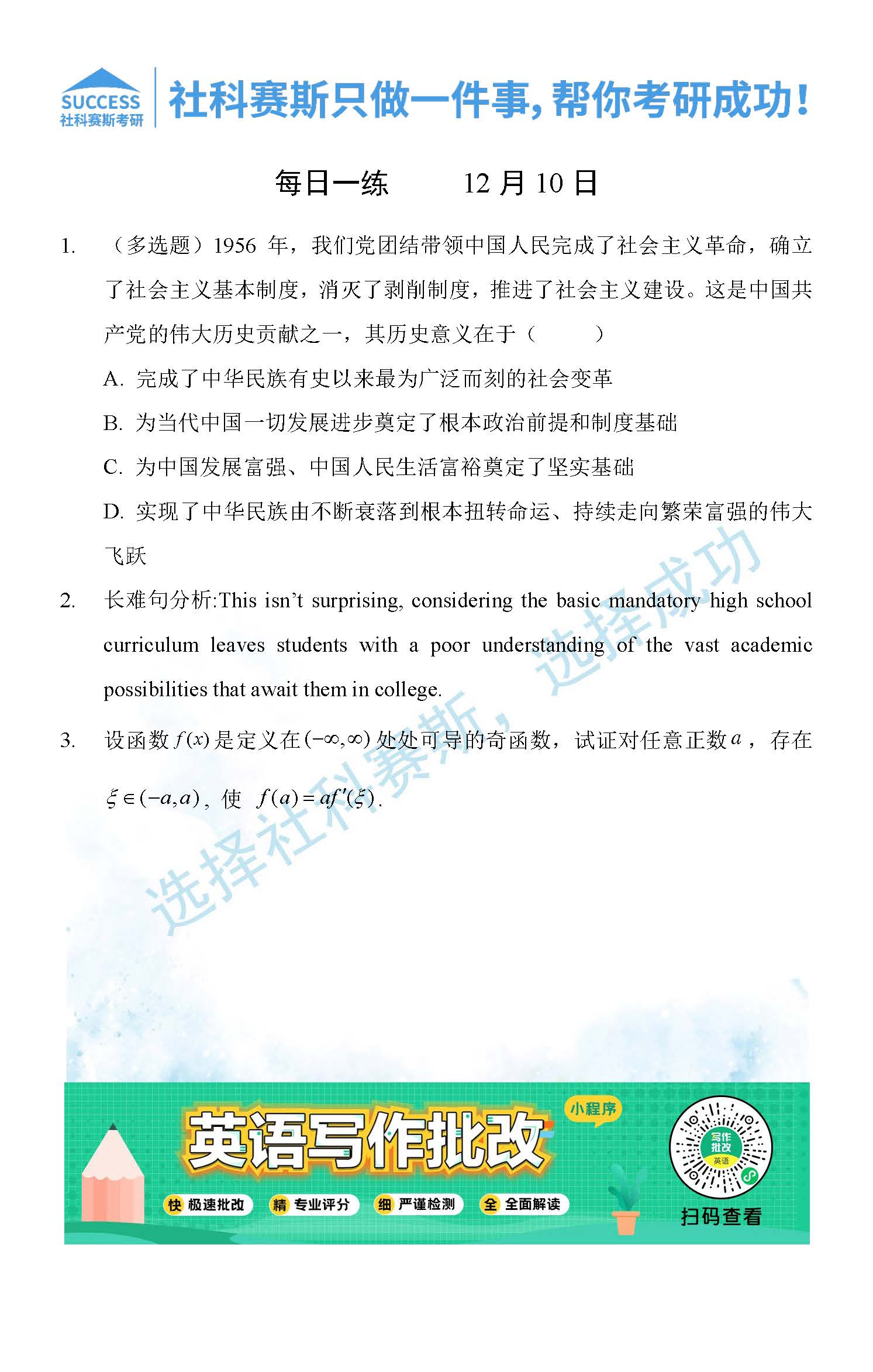 導讀:考研是一場持久戰,保持良好的學習習慣,是能確保復習高效的關鍵。今天社科賽斯MBA備考網小編整理了“2021管理類聯12月10日每日一練及答案”的內容,希望能對廣大考生有所幫助。