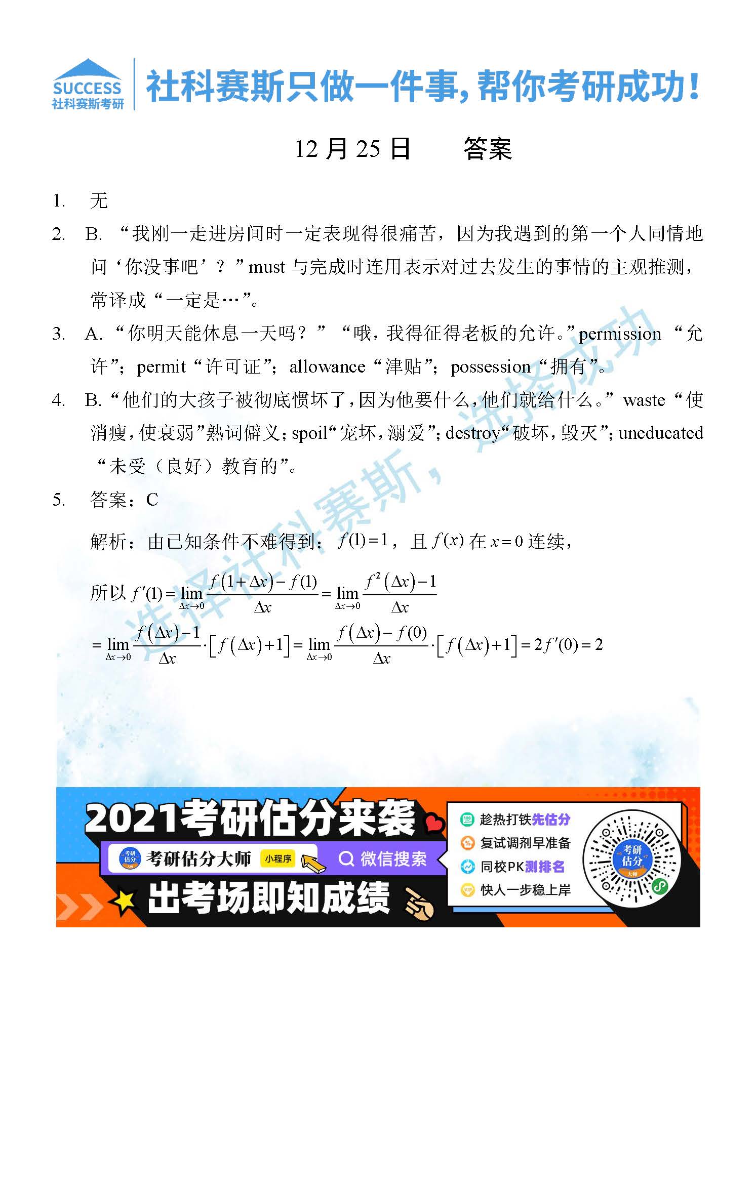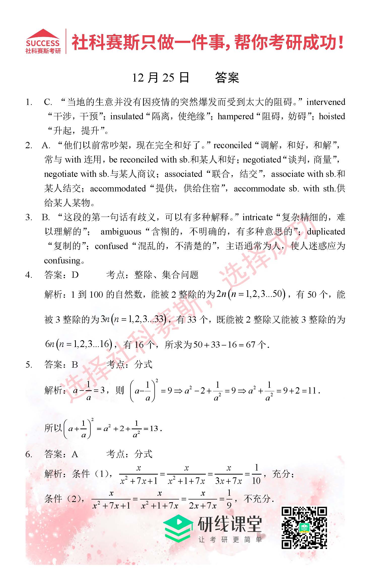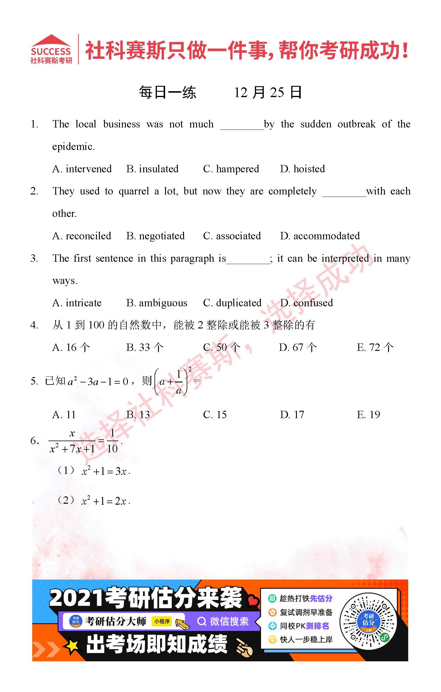 首頁> 管理類聯(lián)考每日一練 > 2021管理類聯(lián)考12月25日每日一練及答案