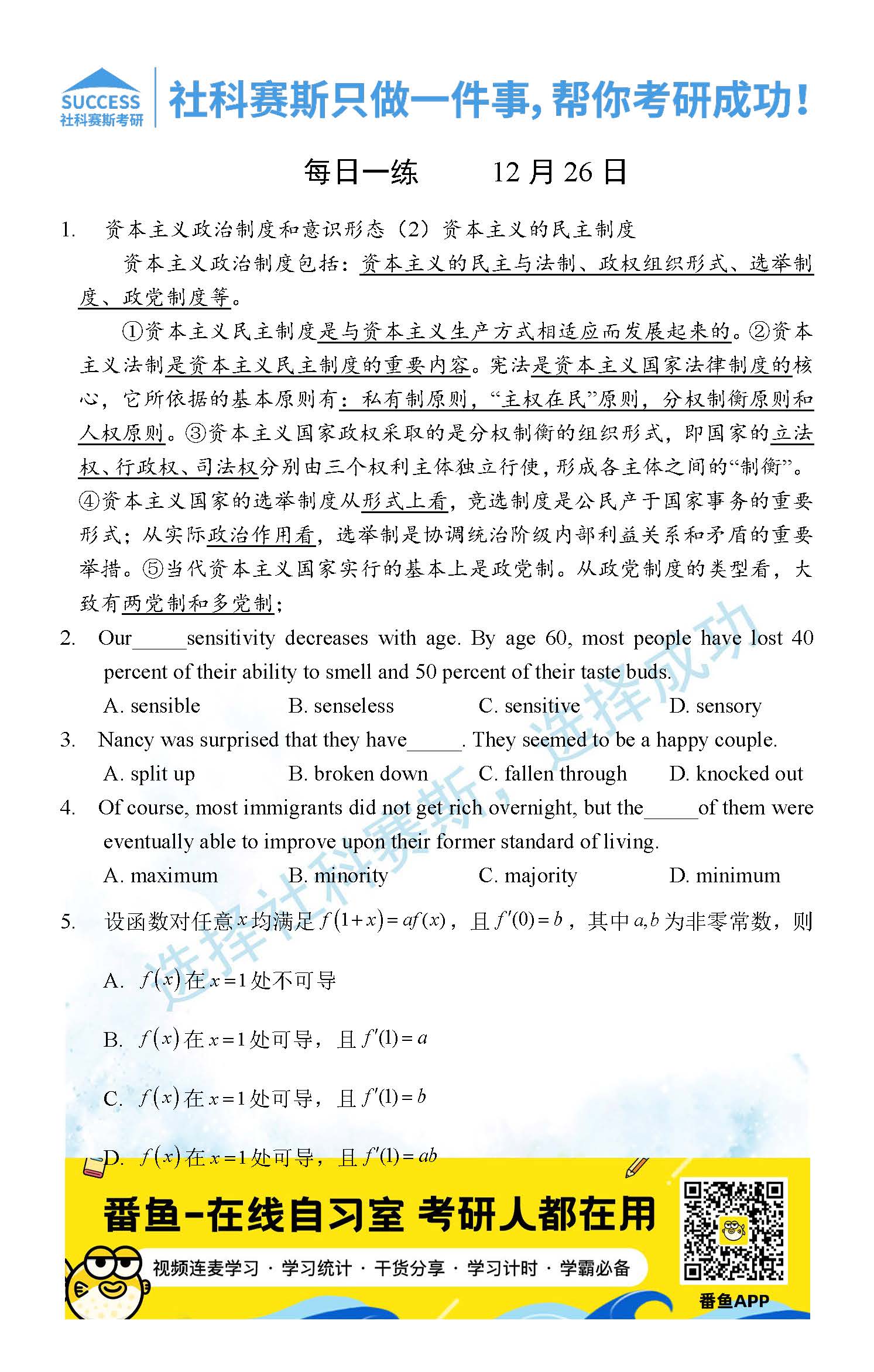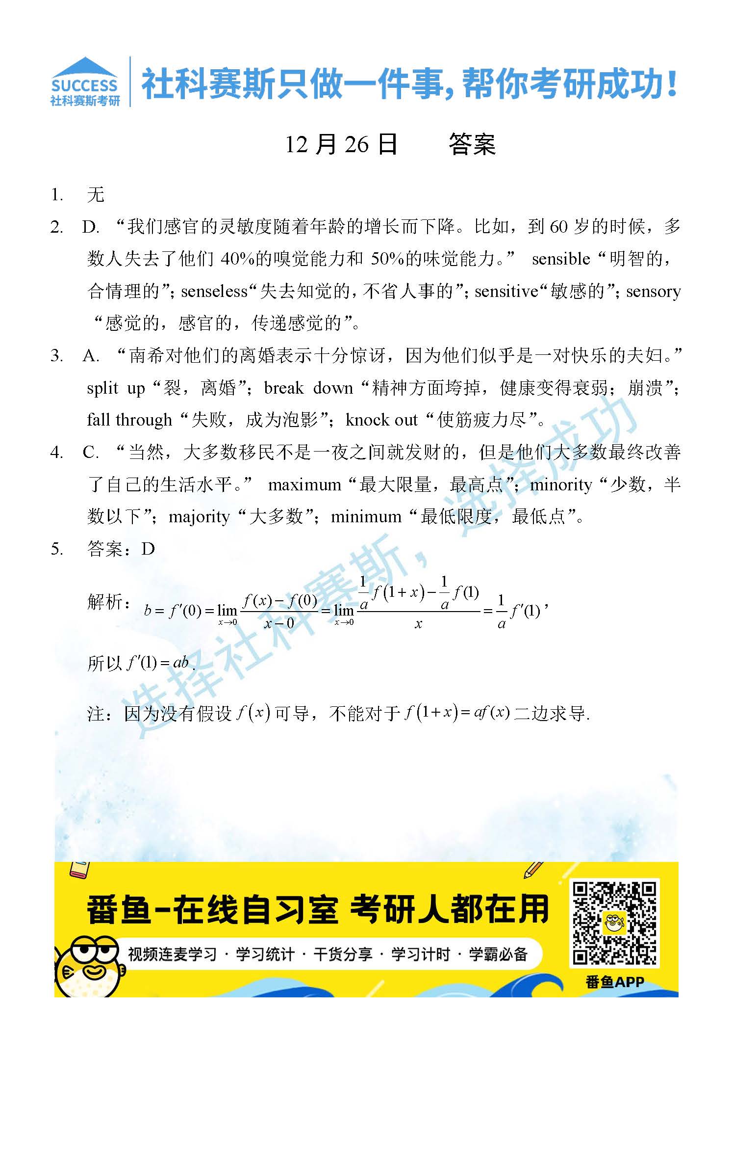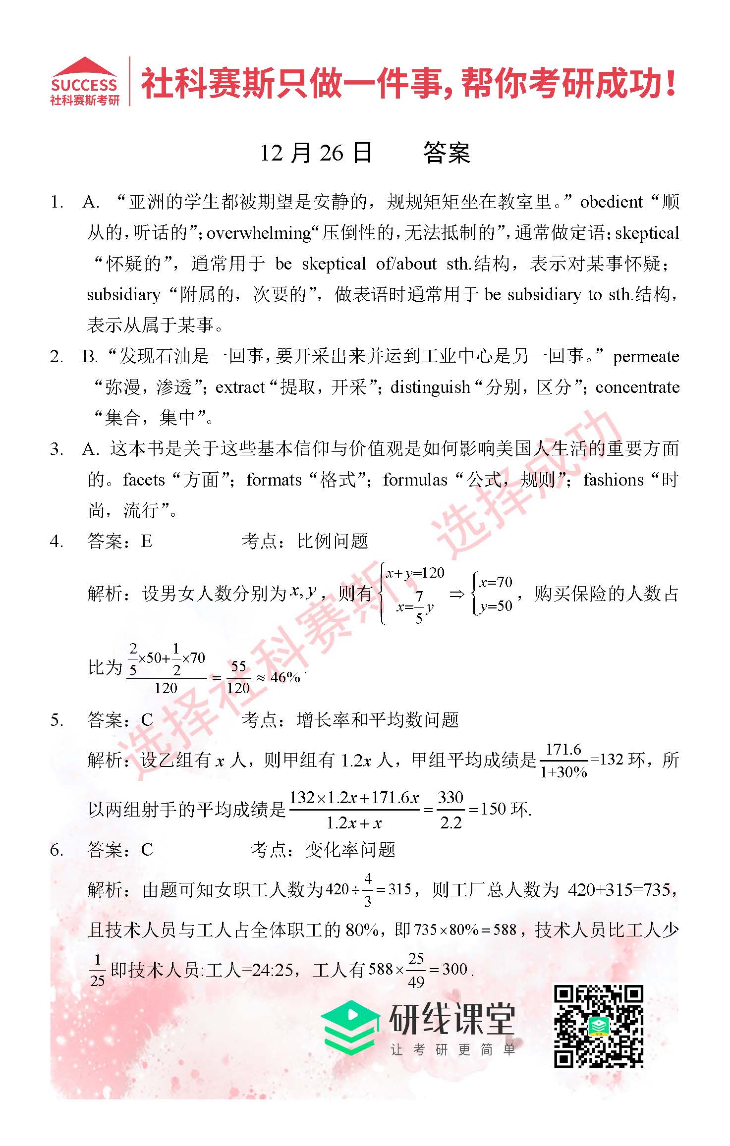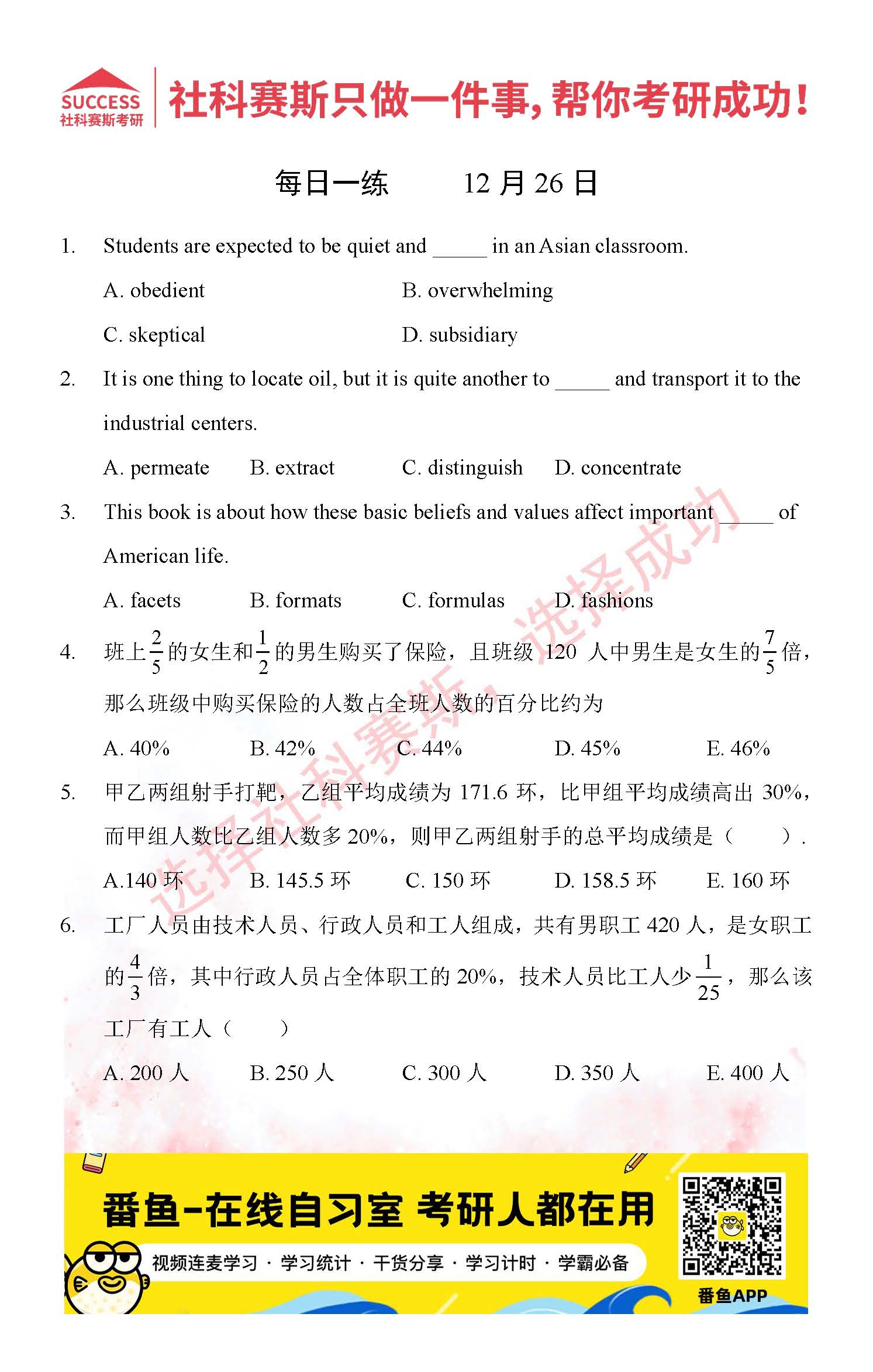 導讀:考研是一場持久戰,保持良好的學習習慣,是能確保復習高效的關鍵。今天社科賽斯MBA備考網小編整理了“2021管理類聯12月26日每日一練及答案”的內容,希望能對廣大考生有所幫助。
