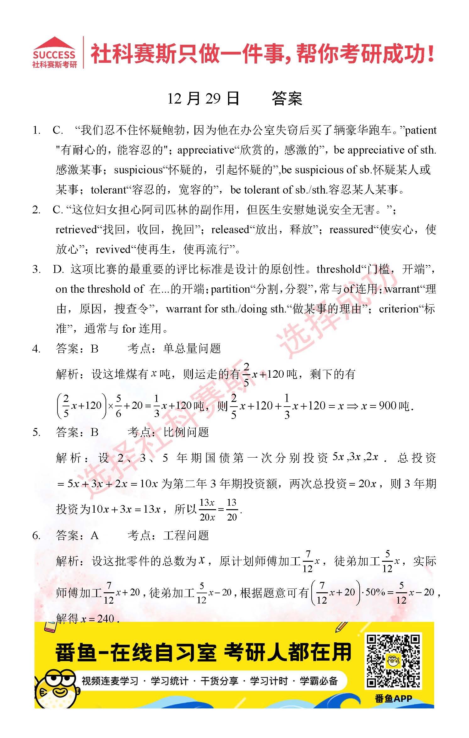 導讀:考研是一場持久戰,保持良好的學習習慣,是能確保復習高效的關鍵。今天社科賽斯MBA備考網小編整理了“2021管理類聯12月29日每日一練及答案”的內容,希望能對廣大考生有所幫助。