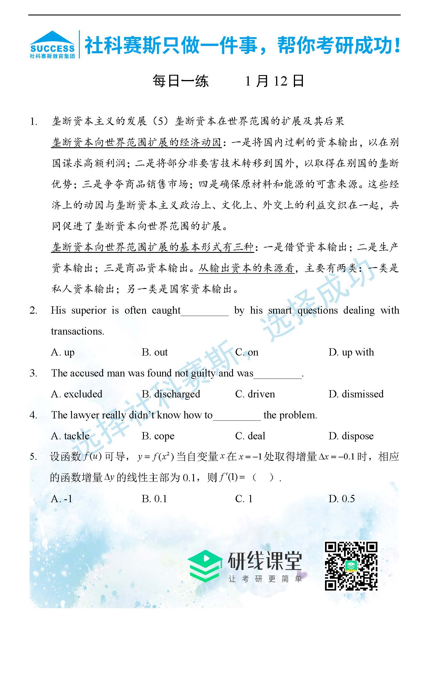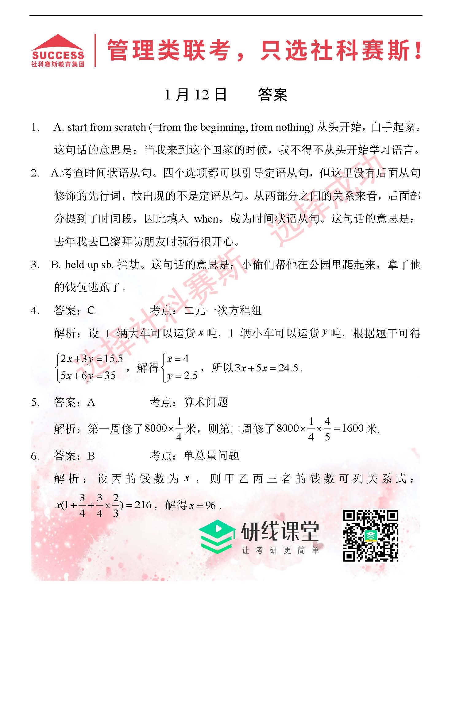 導讀:考研是一場持久戰,保持良好的學習習慣,是能確保復習高效的關鍵。今天社科賽斯MBA備考網小編整理了“2022管理類聯1月12日每日一練及答案”的內容,希望能對廣大考生有所幫助。