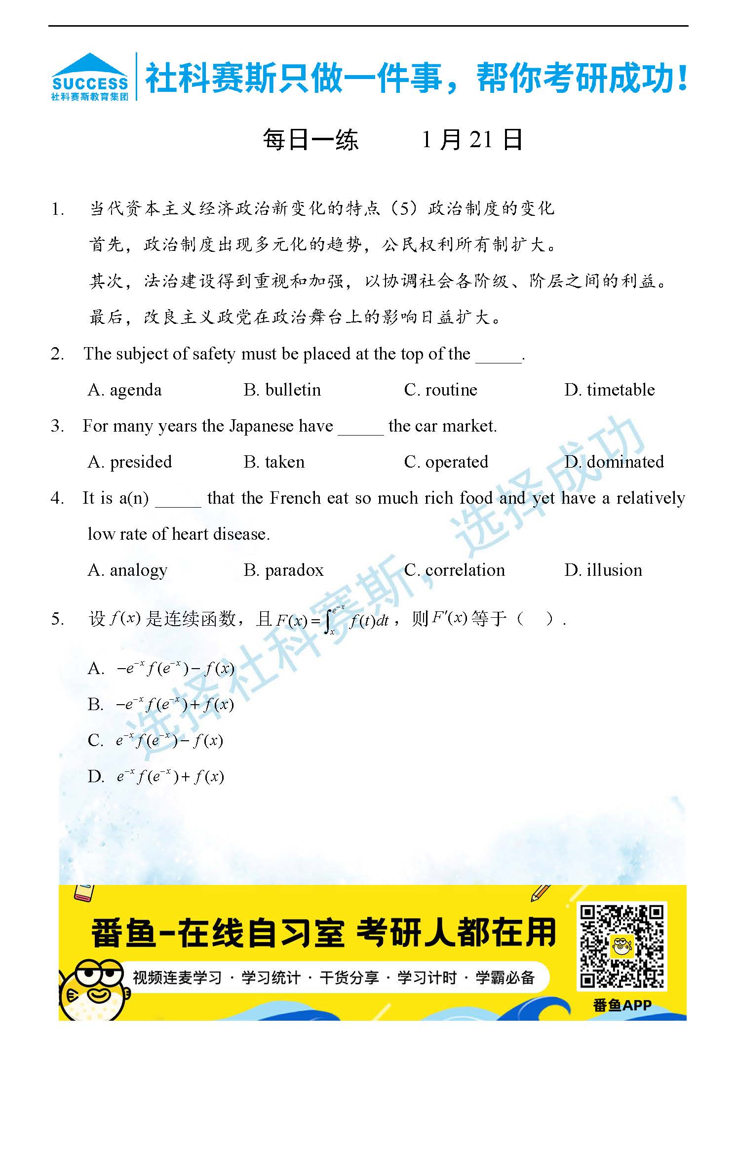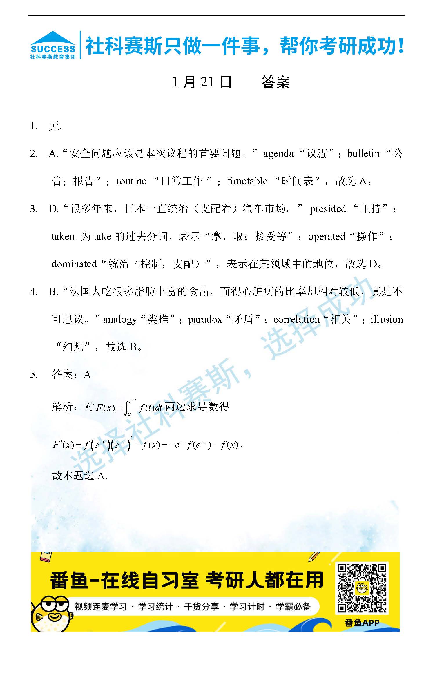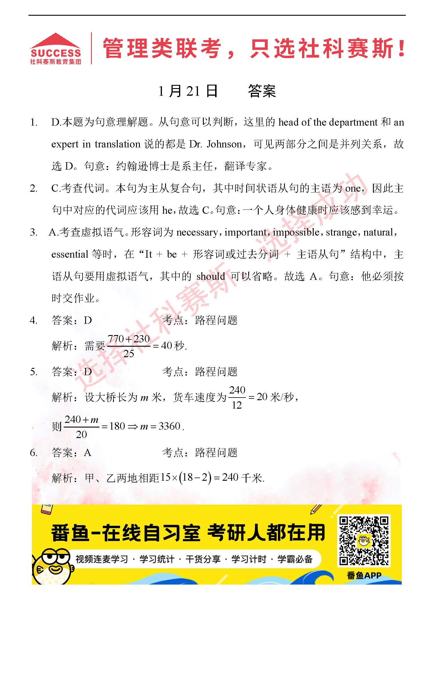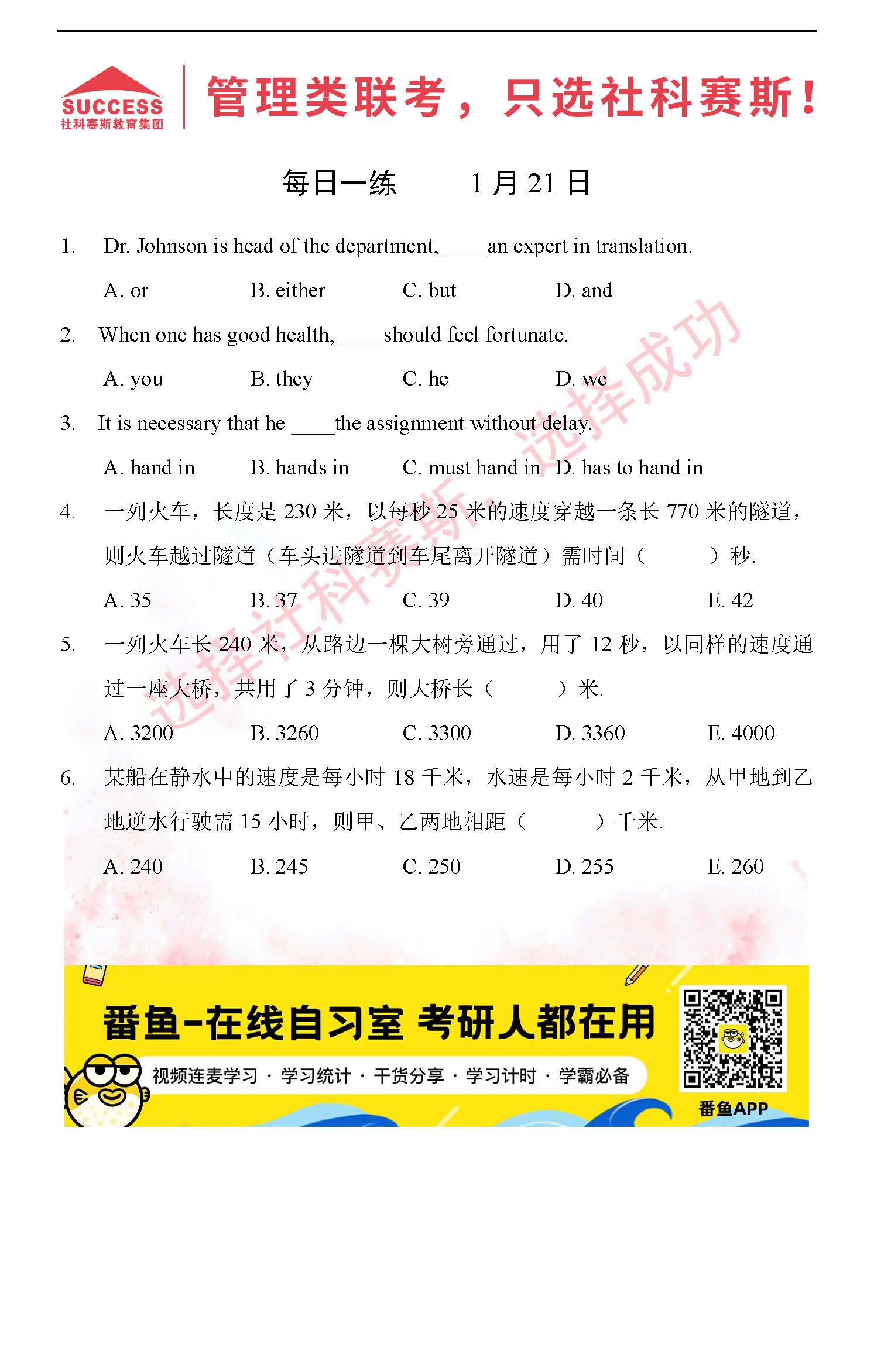 導讀:考研是一場持久戰,保持良好的學習習慣,是能確保復習高效的關鍵。今天社科賽斯MBA備考網小編整理了“2022管理類聯1月21日每日一練及答案”的內容,希望能對廣大考生有所幫助。