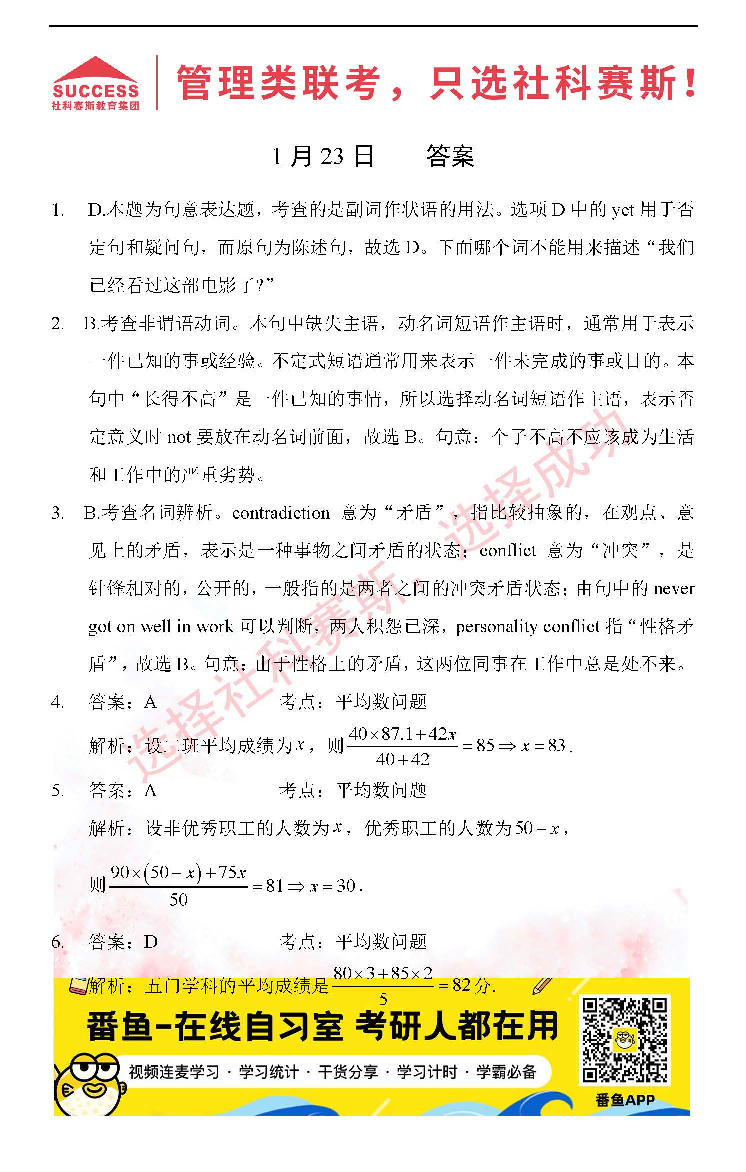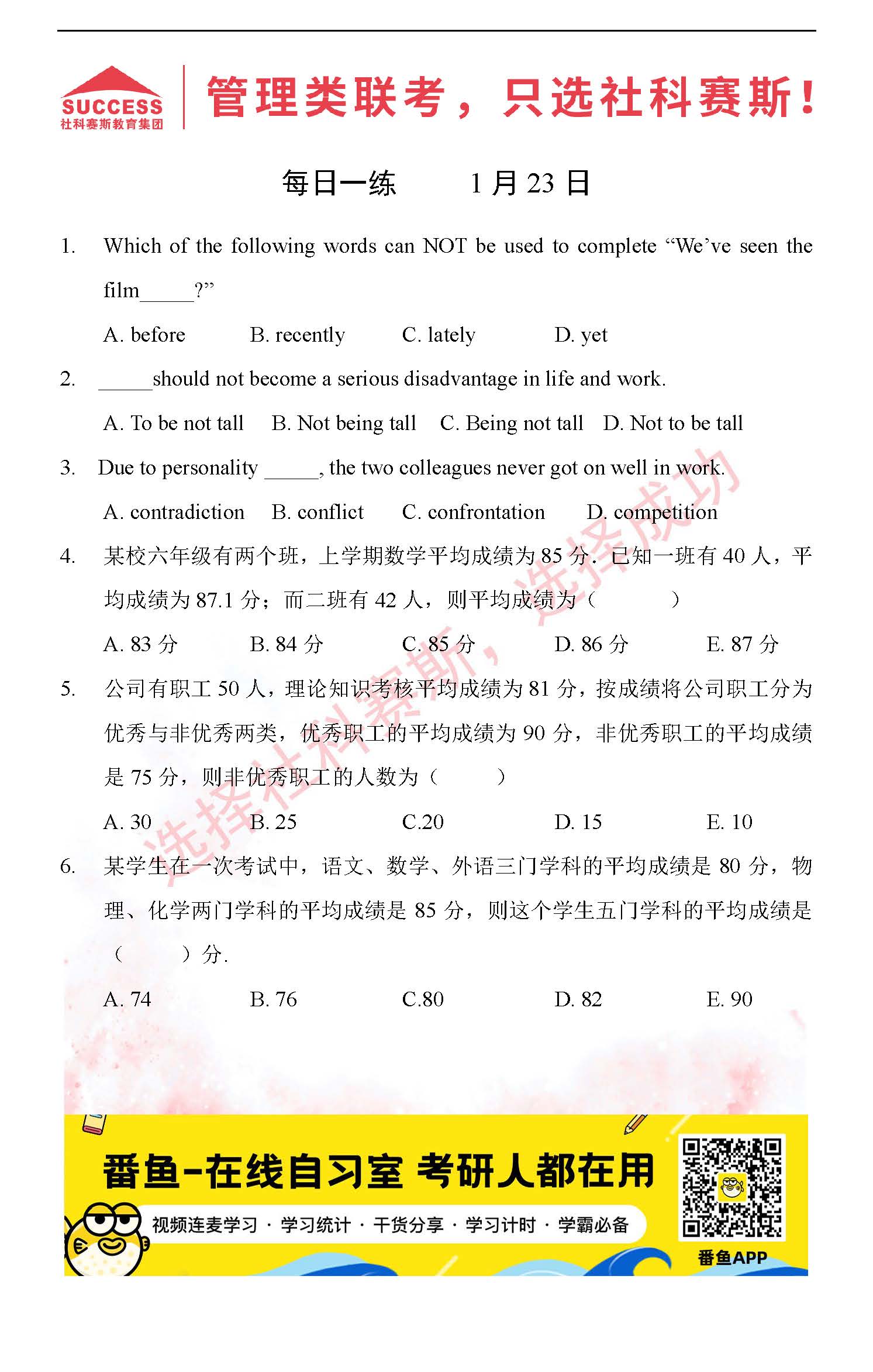 導讀:考研是一場持久戰,保持良好的學習習慣,是能確保復習高效的關鍵。今天社科賽斯MBA備考網小編整理了“2022管理類聯1月23日每日一練及答案”的內容,希望能對廣大考生有所幫助。