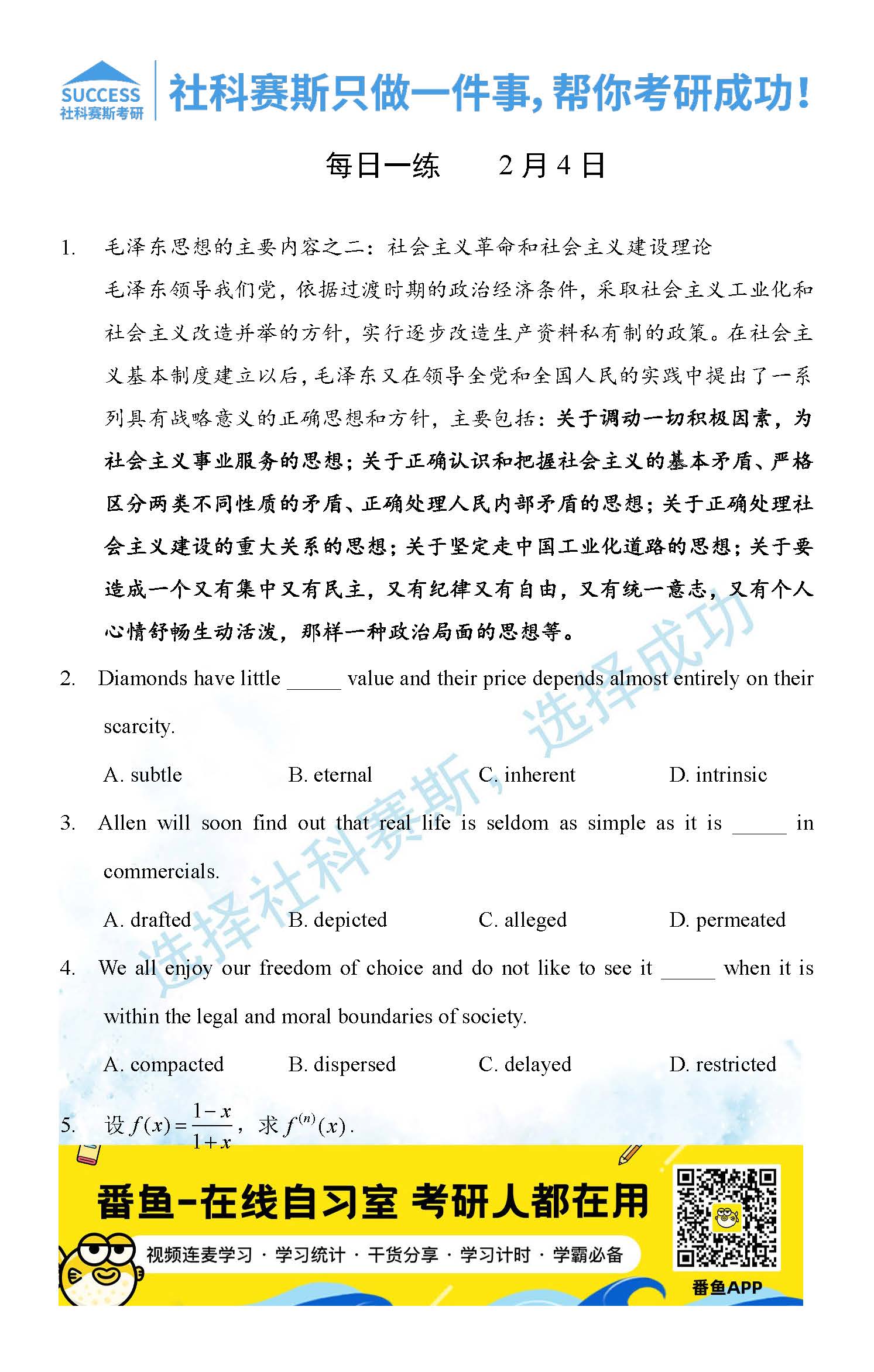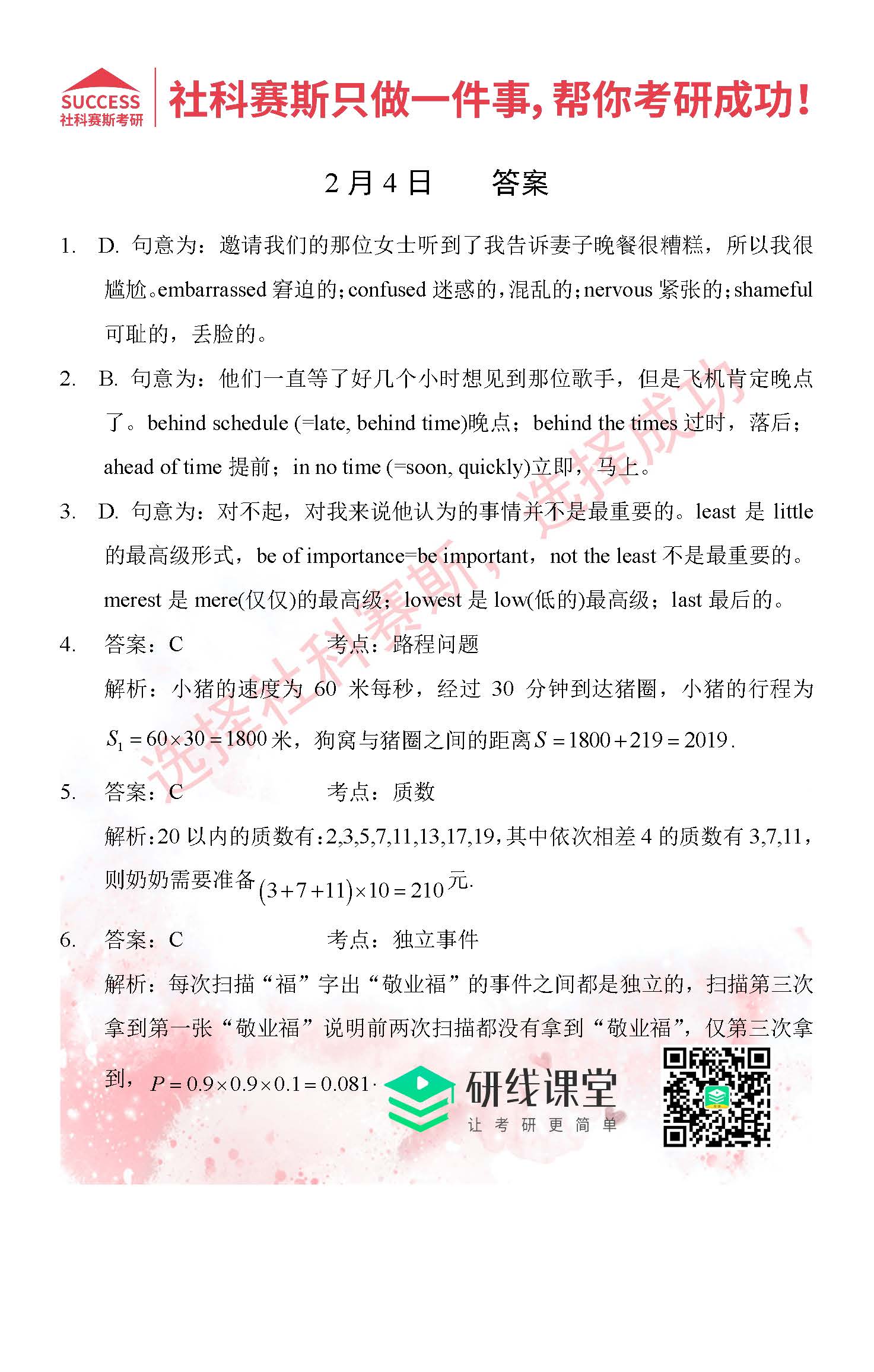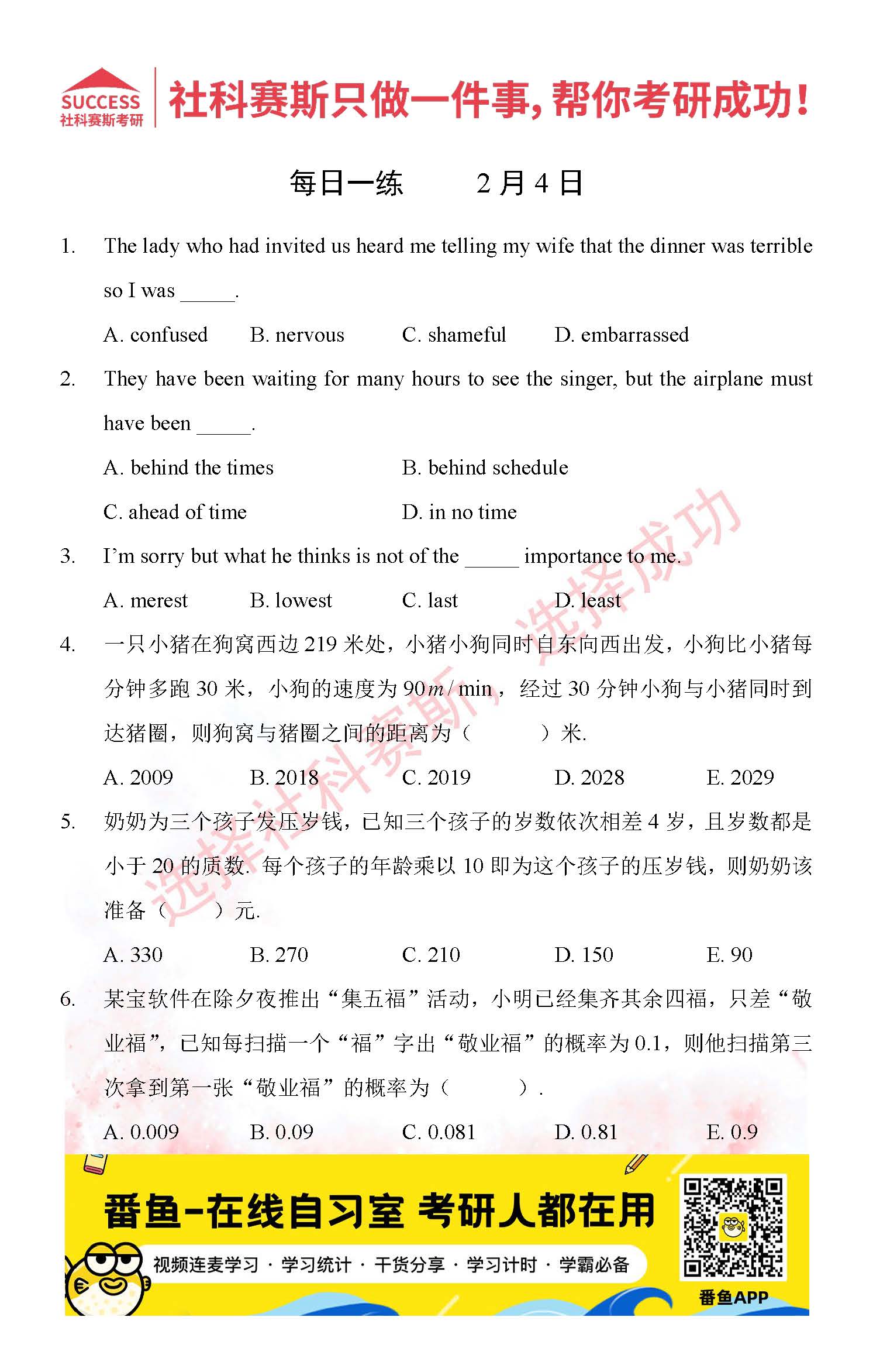 導讀:考研是一場持久戰,保持良好的學習習慣,是能確保復習高效的關鍵。今天社科賽斯MBA備考網小編整理了“2022管理類聯2月4日每日一練及答案”的內容,希望能對廣大考生有所幫助。