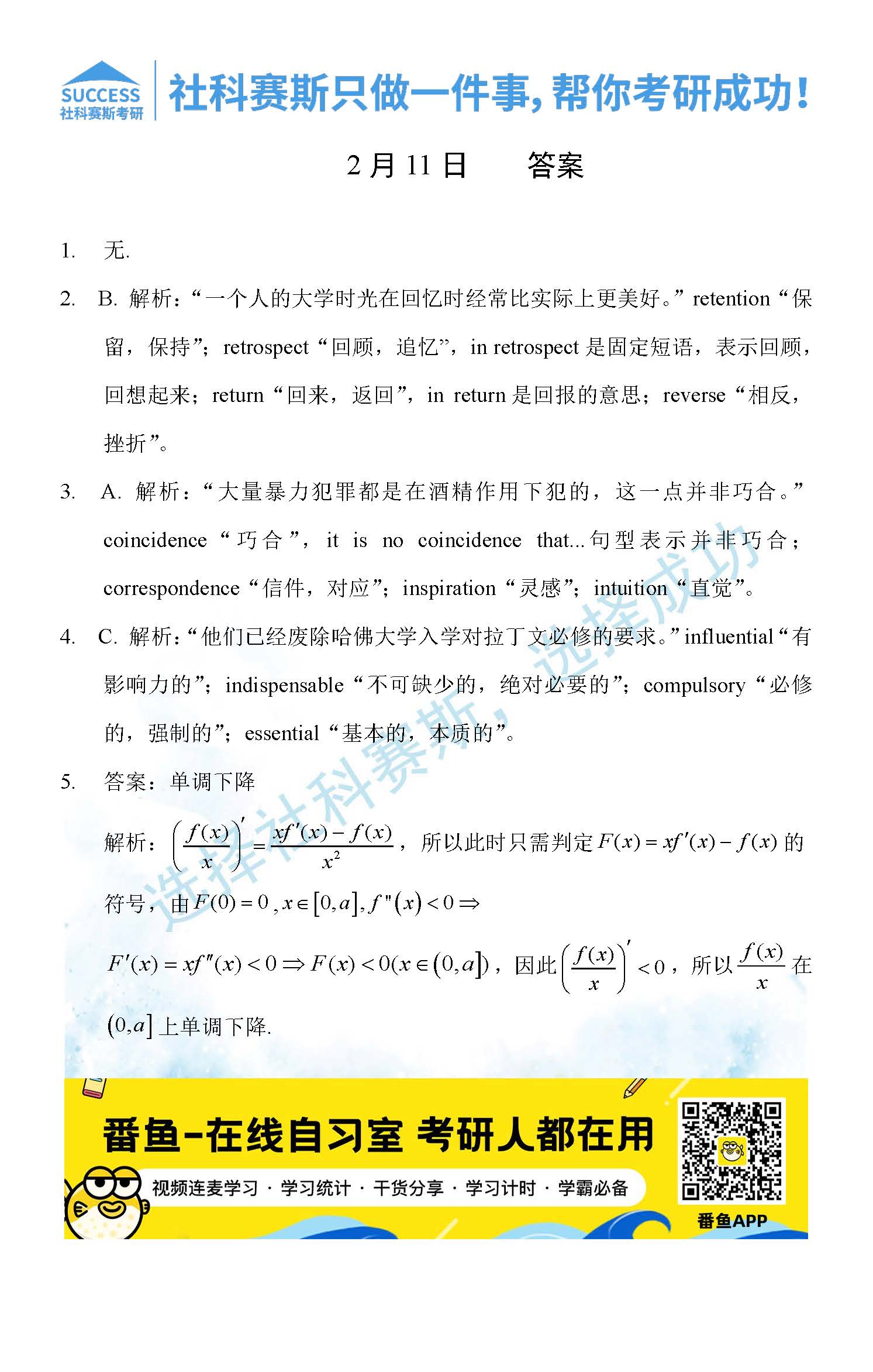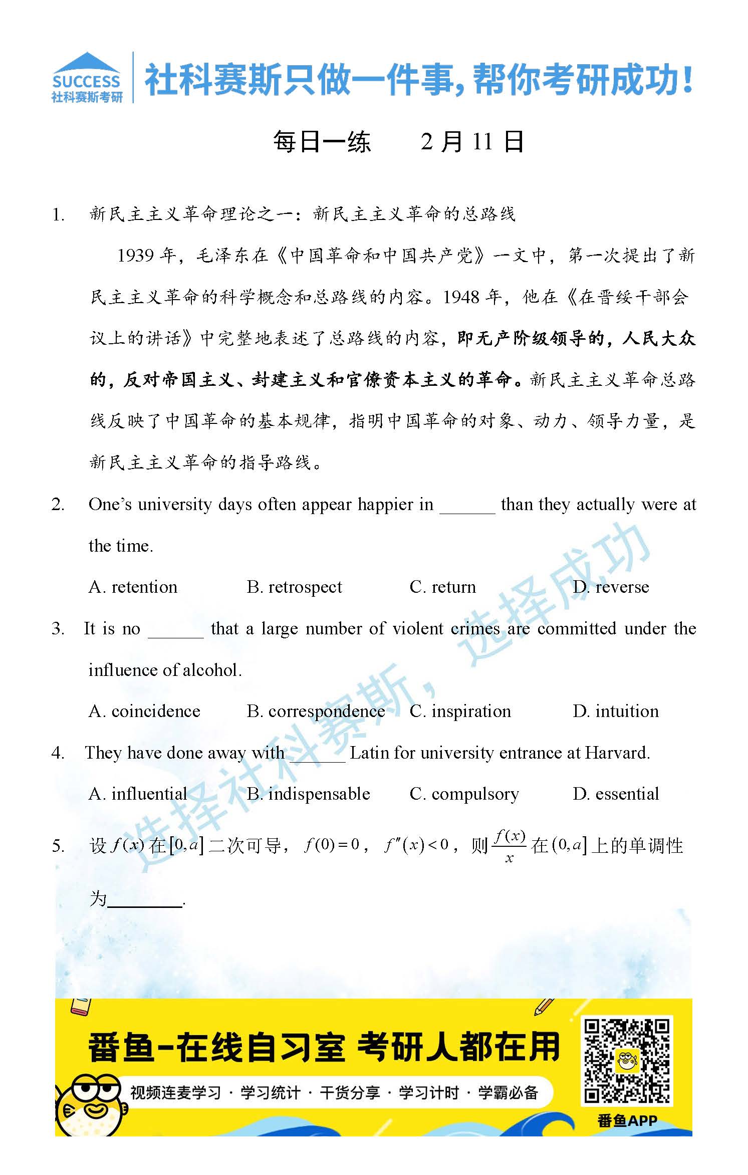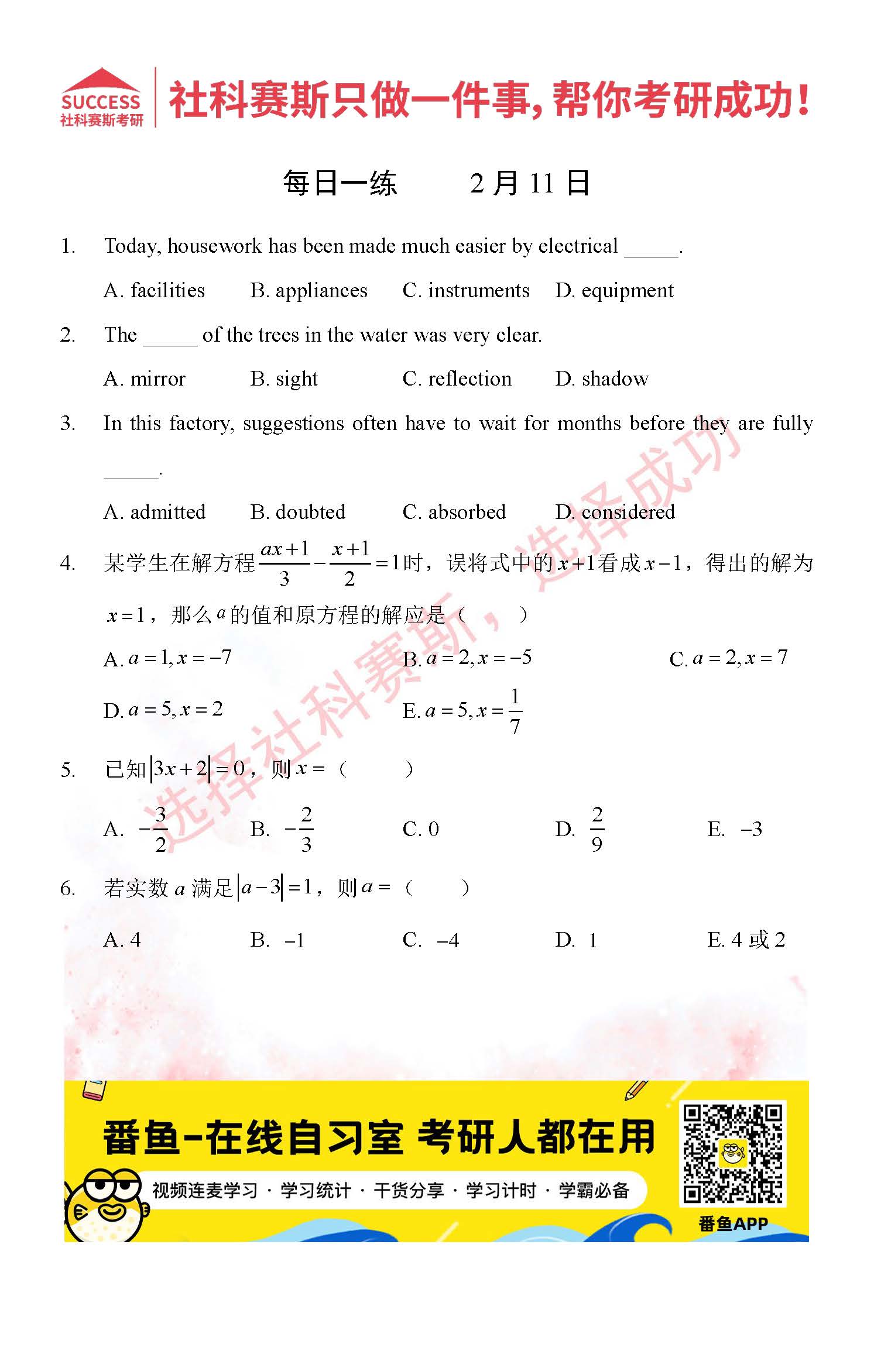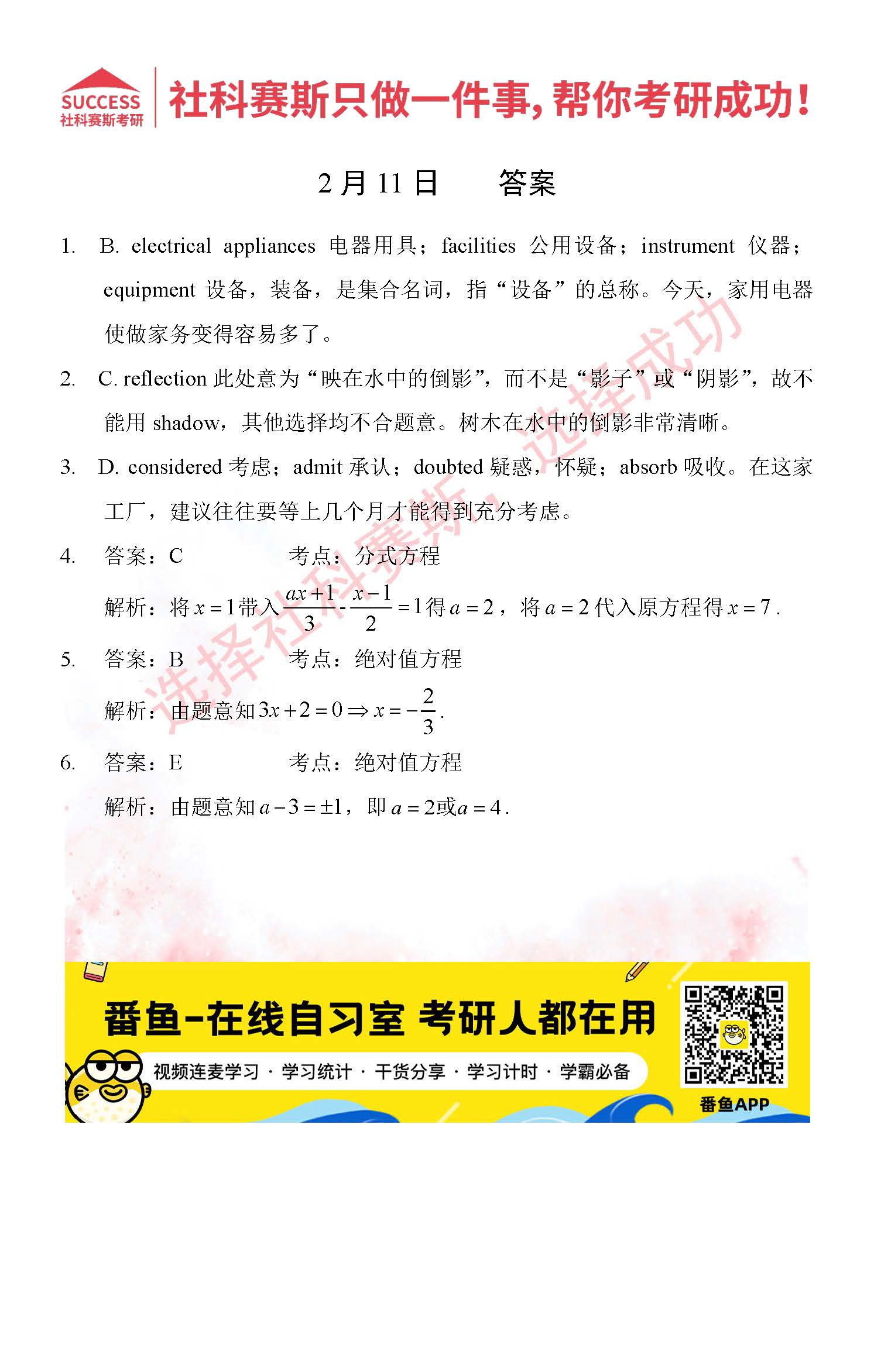 導(dǎo)讀:考研是一場持久戰(zhàn),保持良好的學(xué)習(xí)習(xí)慣,是能確保復(fù)習(xí)高效的關(guān)鍵。今天社科賽斯MBA備考網(wǎng)小編整理了“2022管理類聯(lián)2月11日每日一練及答案”的內(nèi)容,希望能對廣大考生有所幫助。