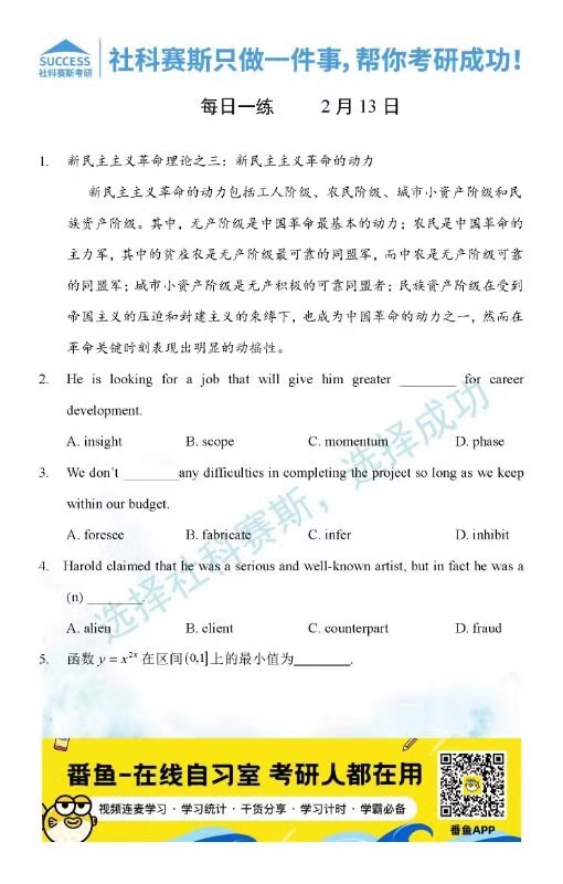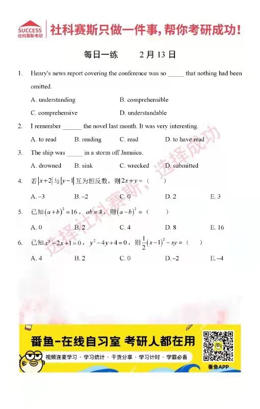導讀:考研是一場持久戰,保持良好的學習習慣,是能確保復習高效的關鍵。今天社科賽斯MBA備考網小編整理了“2022管理類聯2月13日每日一練及答案”的內容,希望能對廣大考生有所幫助。