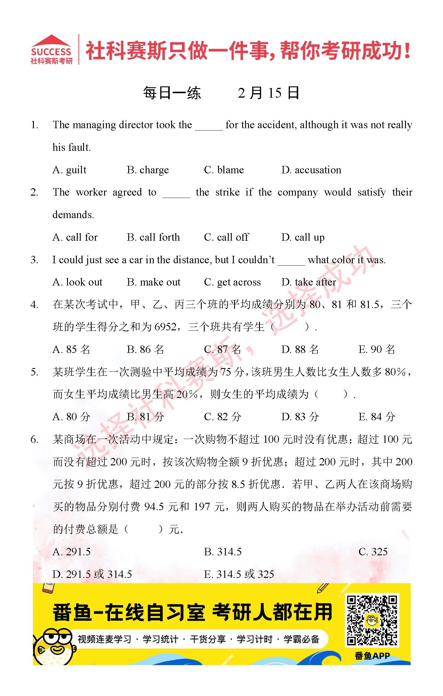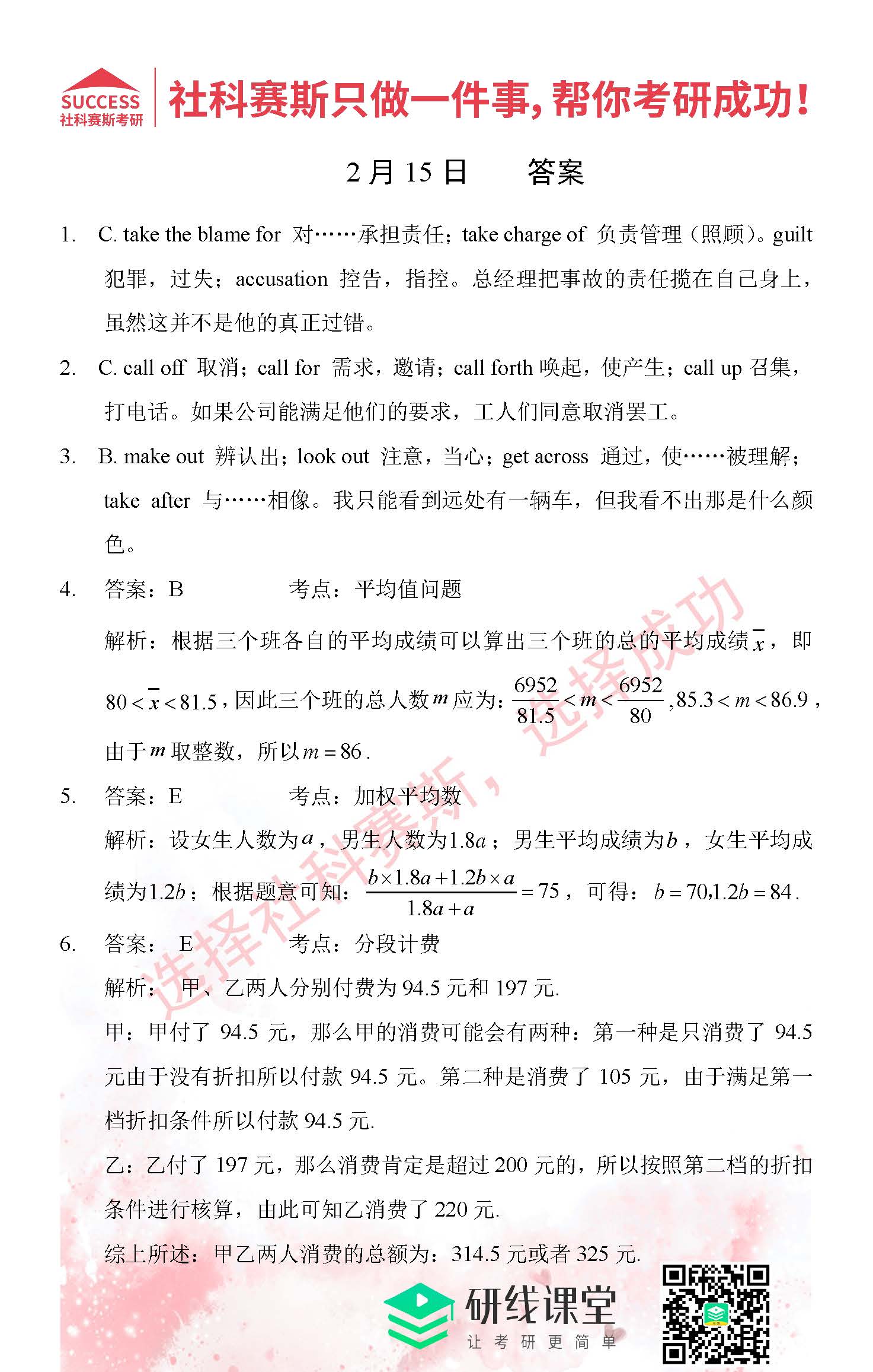 2022管理類聯(lián)考2月15日每日一練及答案”